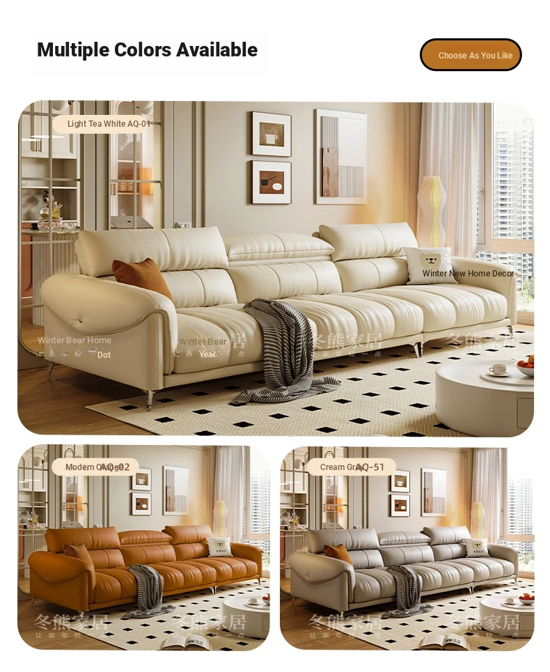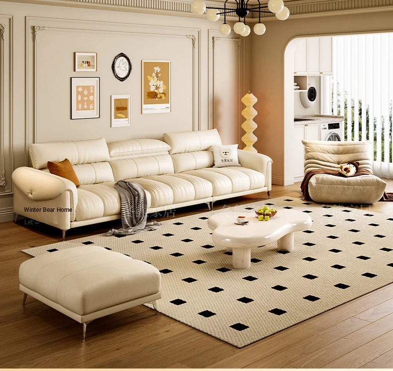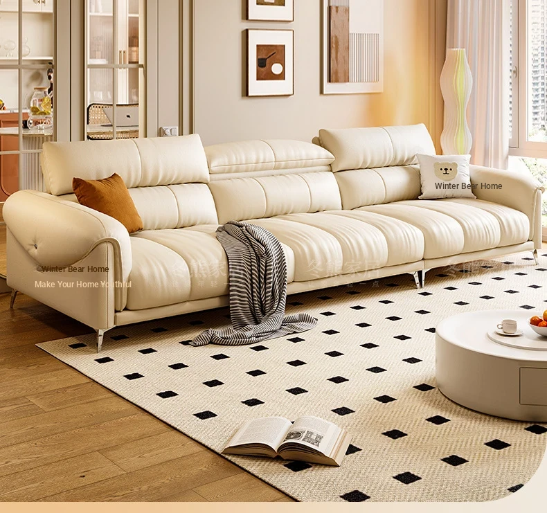 Minimalist Luxury Leather Sofa with Piano Key Design for Small Living Rooms - Modern, Stylish, and Made with Premium Top-Grain Leather