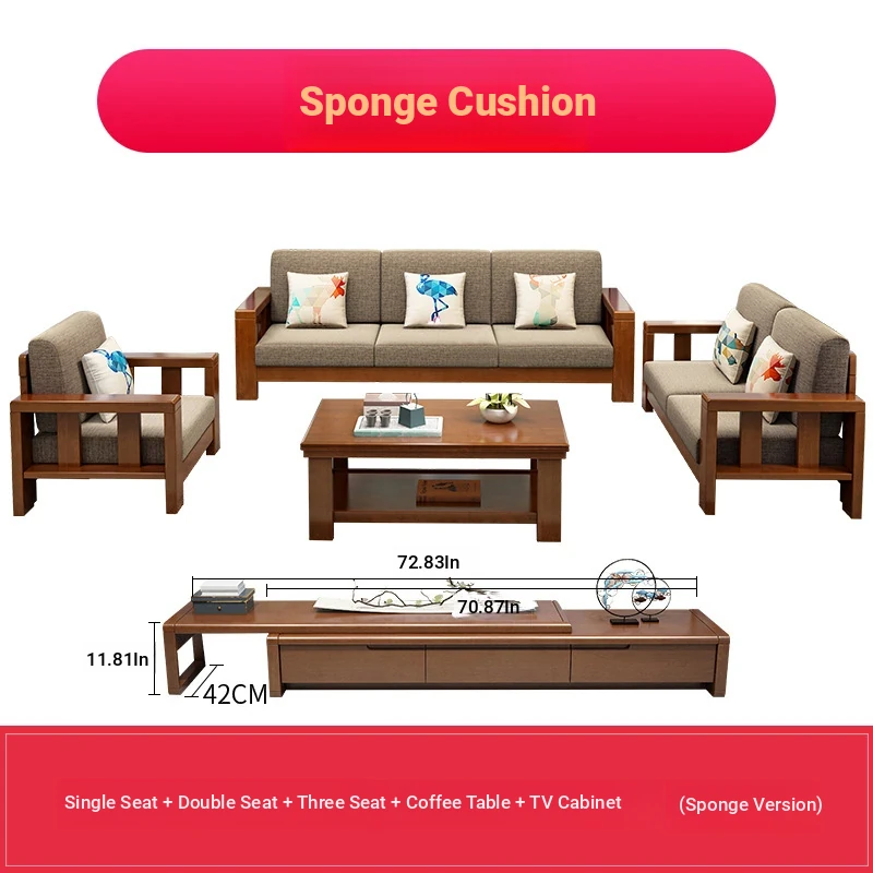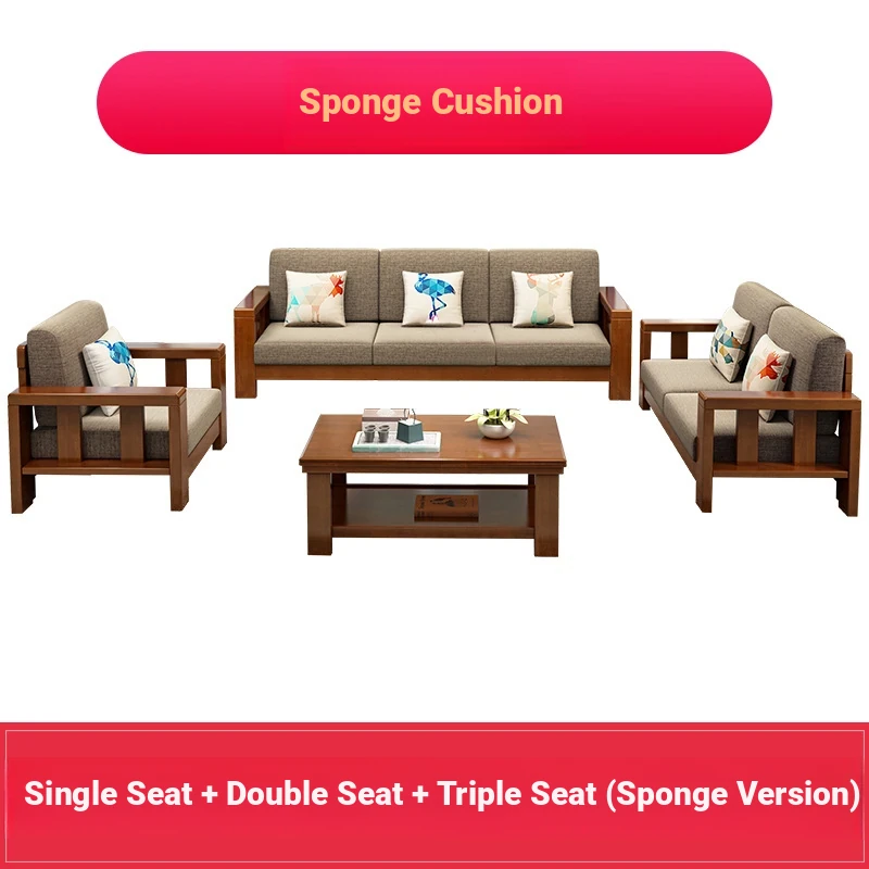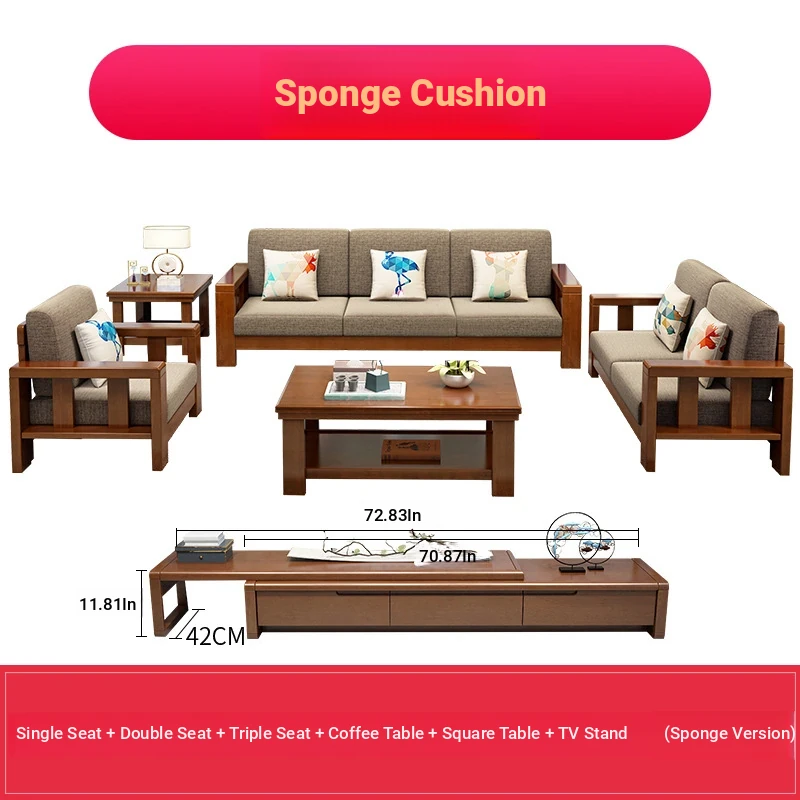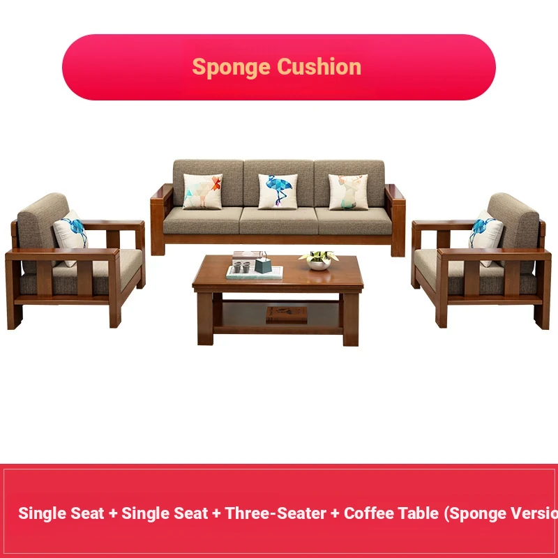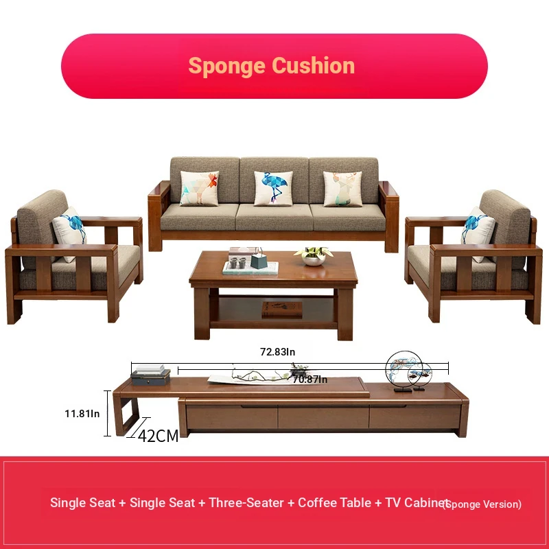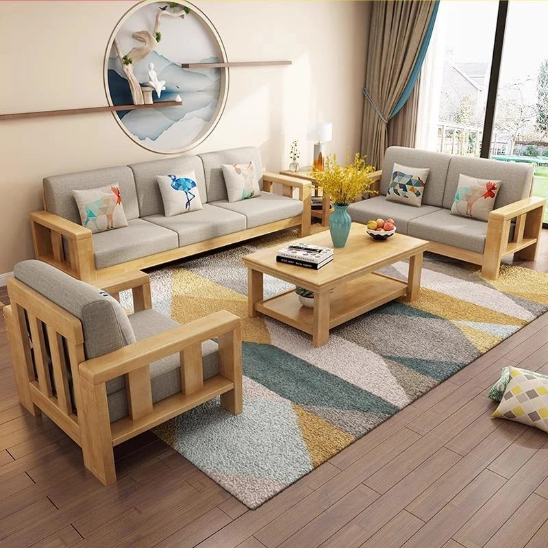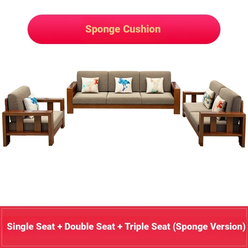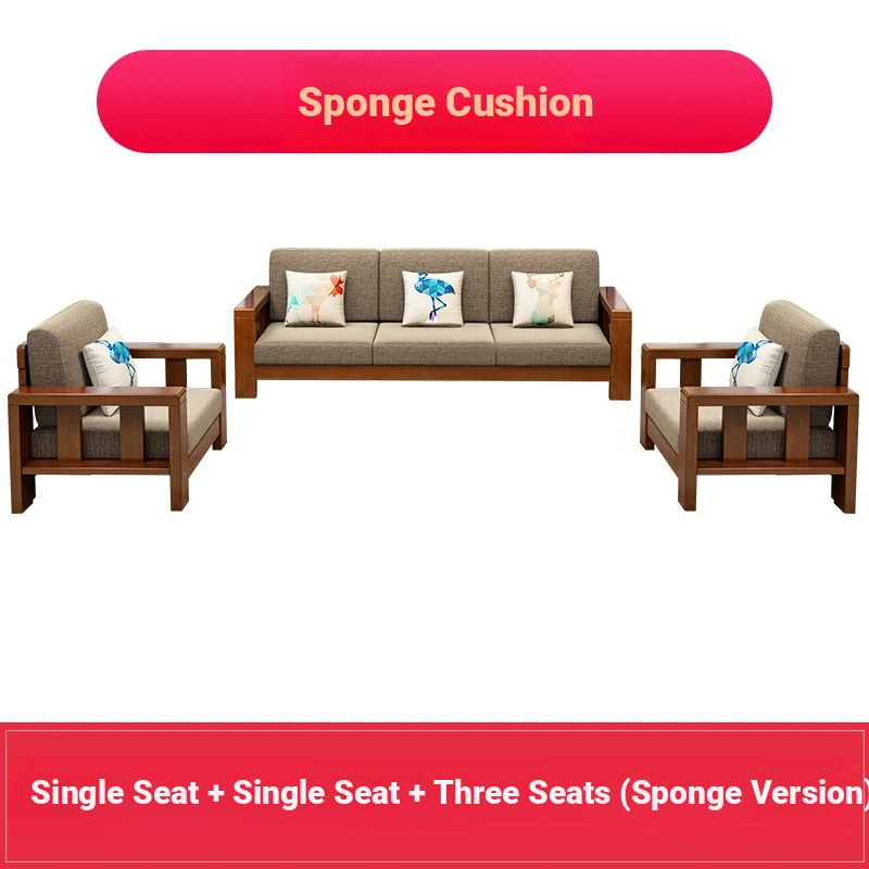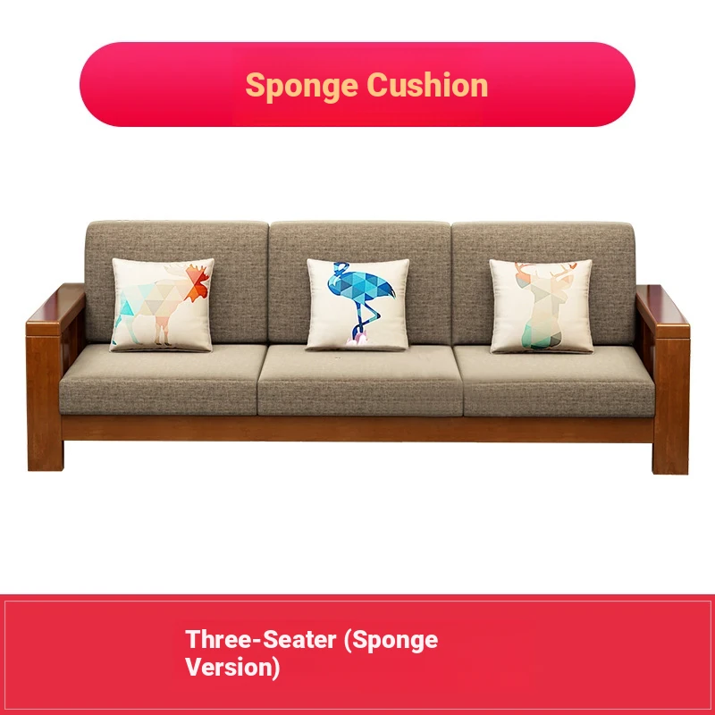 Modern Chinese Solid Wood Sofa Set - 123 Combination, Straight 3-Seater, Minimalist Design for Small to Medium Living Rooms, Elegant Chaise Lounge Sofa