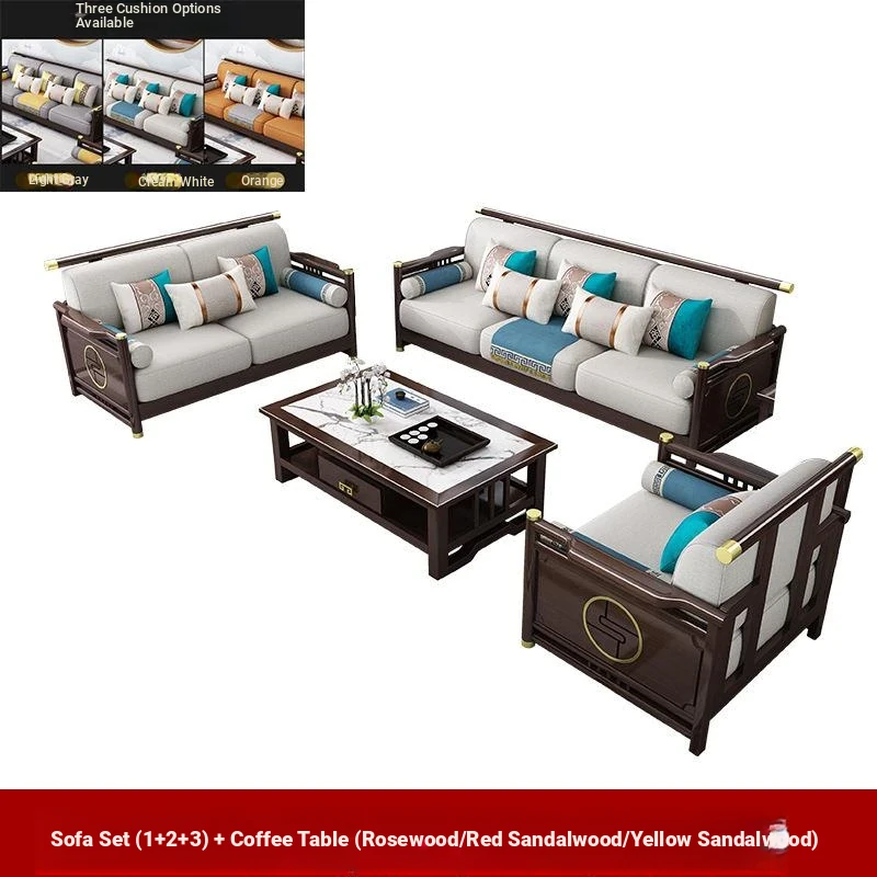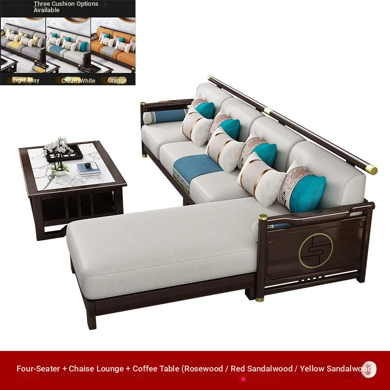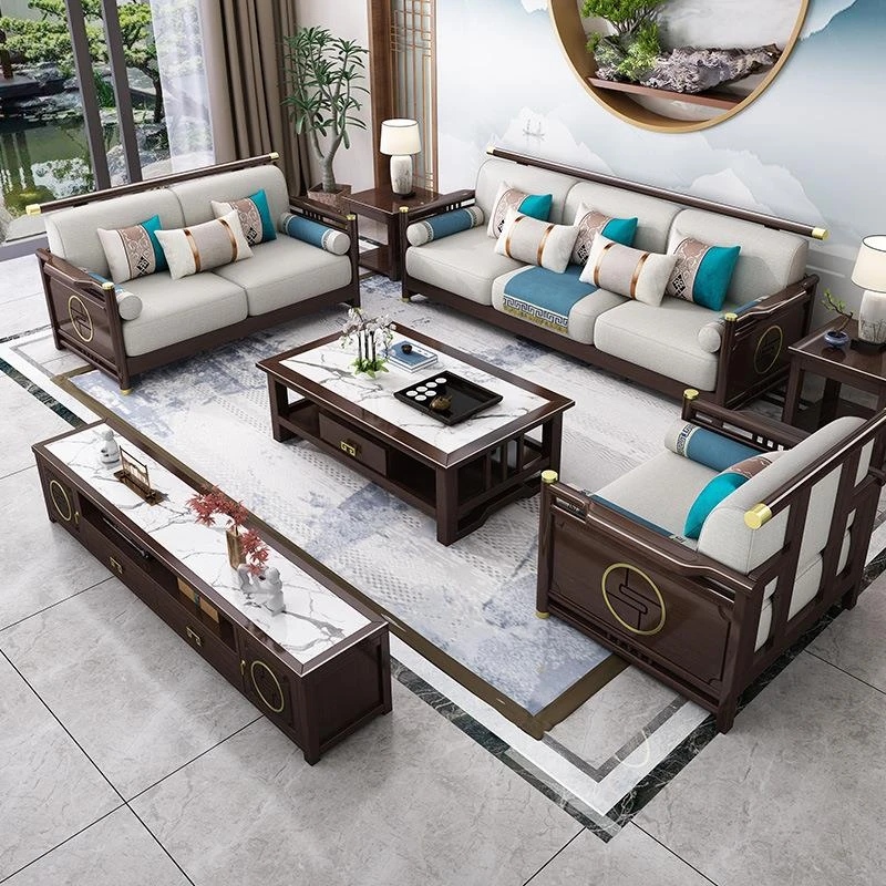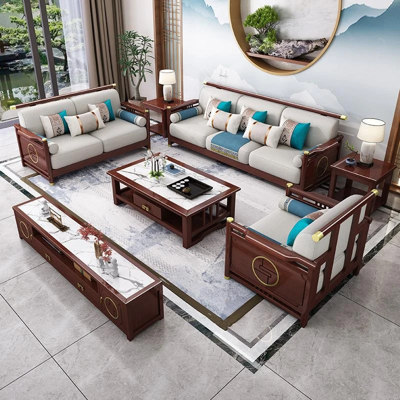 Modern Chinese Style Solid Wood Sofa – Luxury Copper Accents for Villas and Apartments, Direct Supply from Factory, Perfect for Stylish Living Rooms