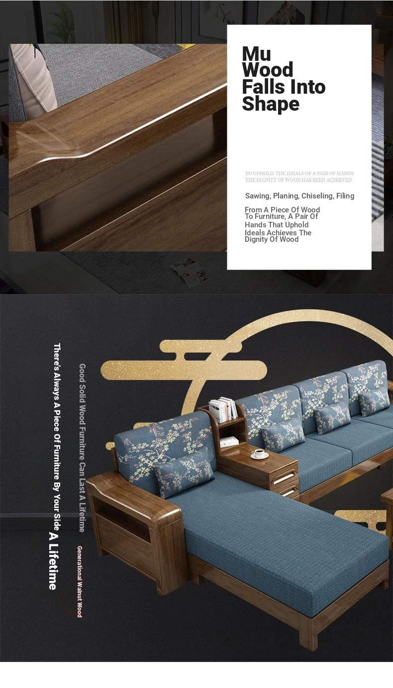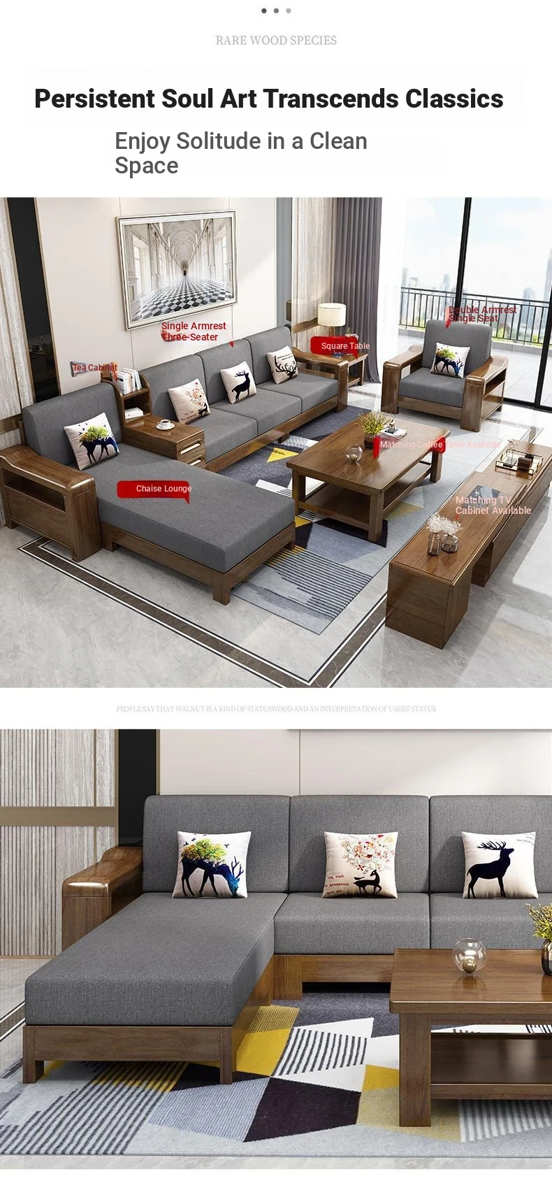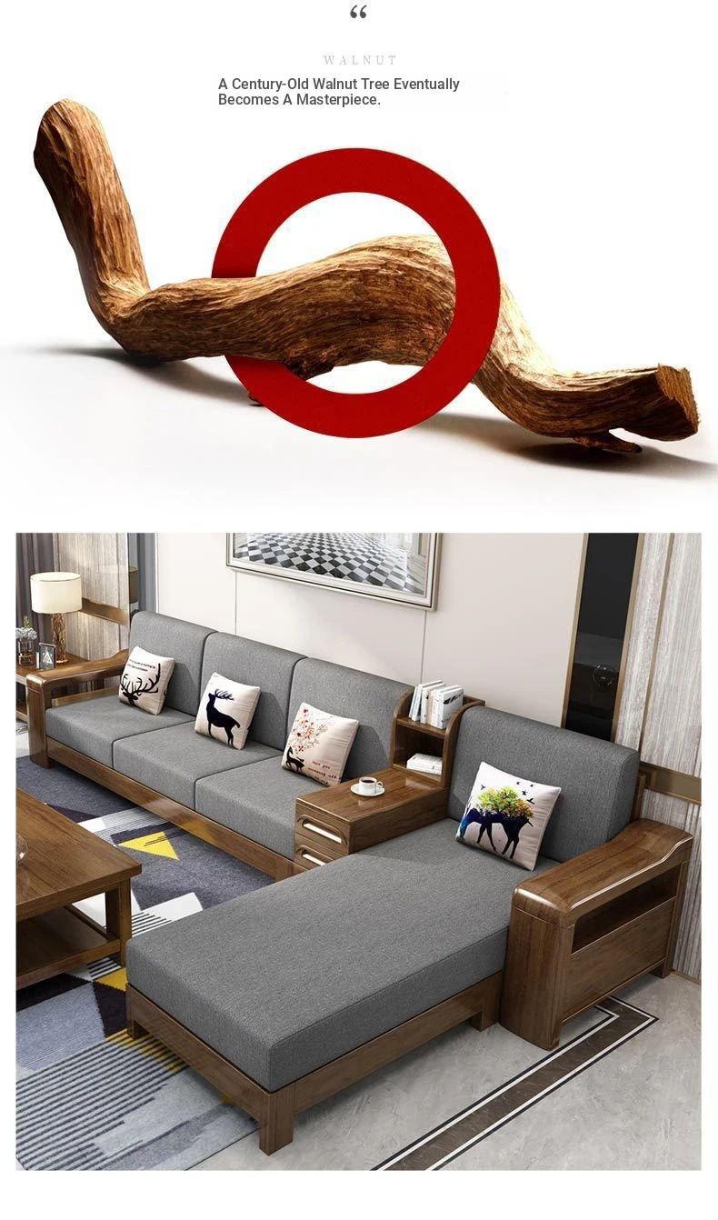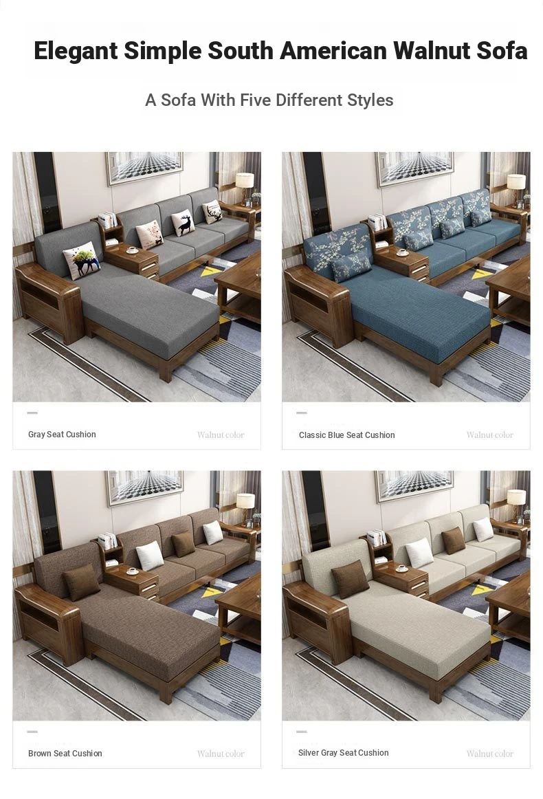 Modern Chinese Walnut Wood Sofa Set - Elegant L-Shaped Chaise Lounge for Living Room - Premium Quality Furniture from Trusted Manufacturer