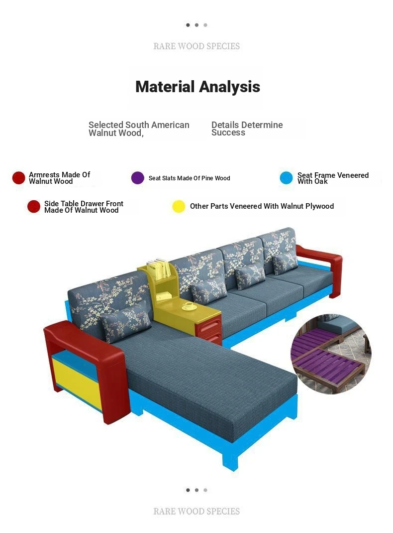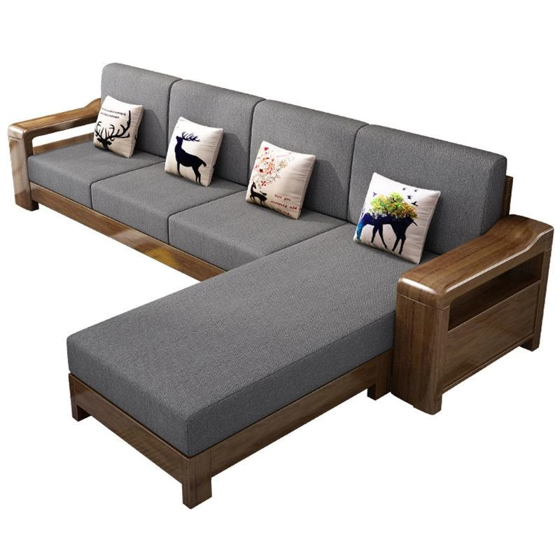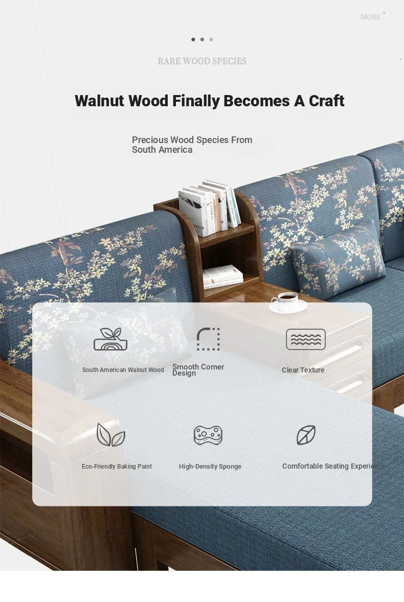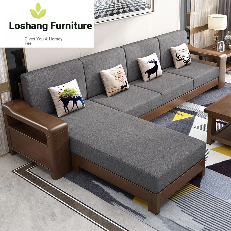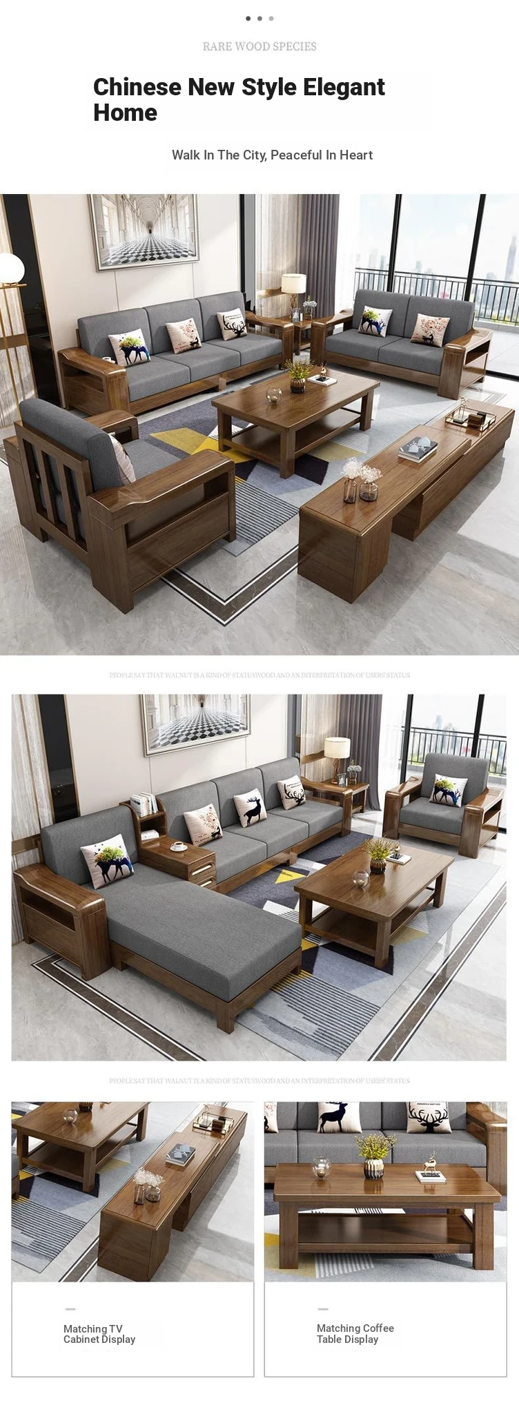 Modern Chinese Walnut Wood Sofa Set - Elegant L-Shaped Chaise Lounge for Living Room - Premium Quality Furniture from Trusted Manufacturer