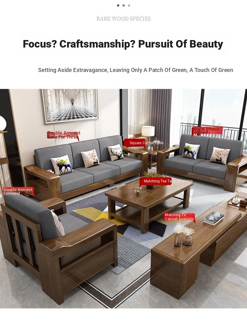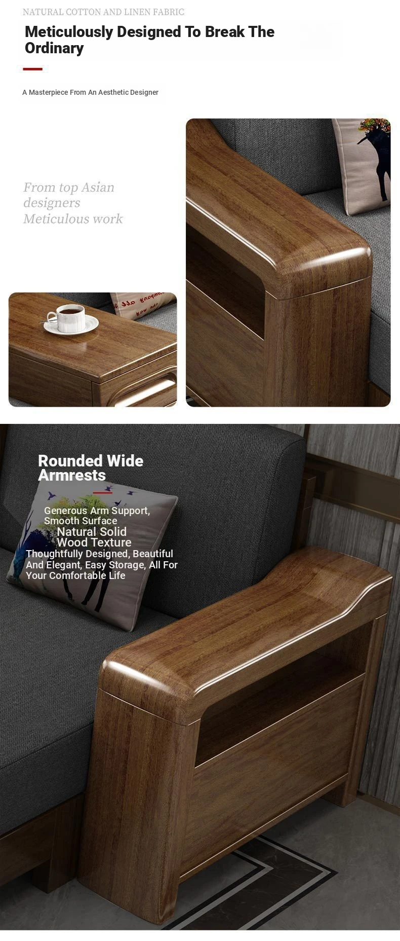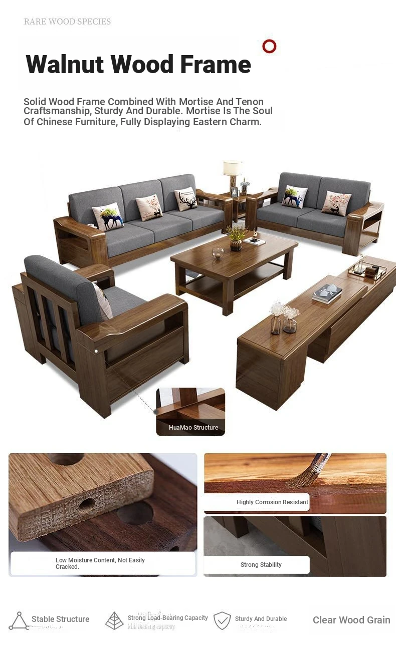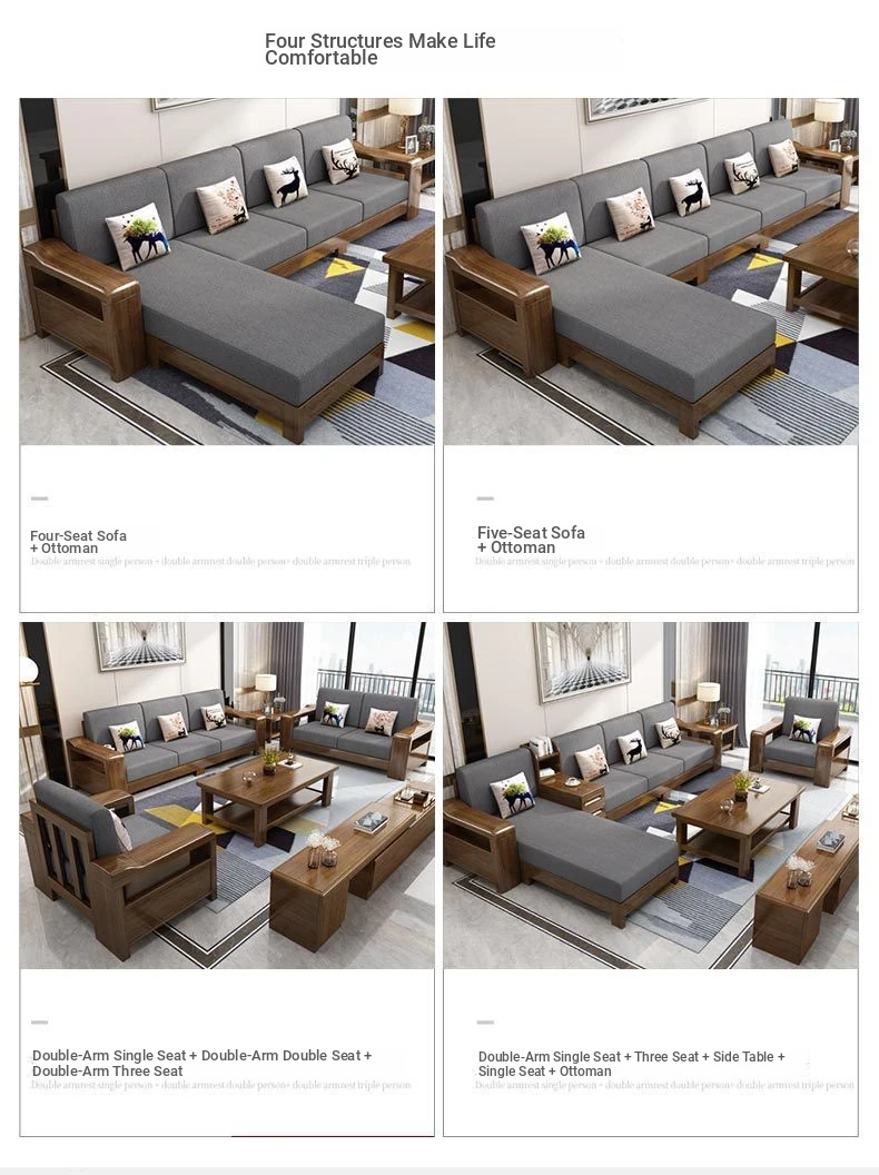 Modern Chinese Walnut Wood Sofa Set - Elegant L-Shaped Chaise Lounge for Living Room - Premium Quality Furniture from Trusted Manufacturer
