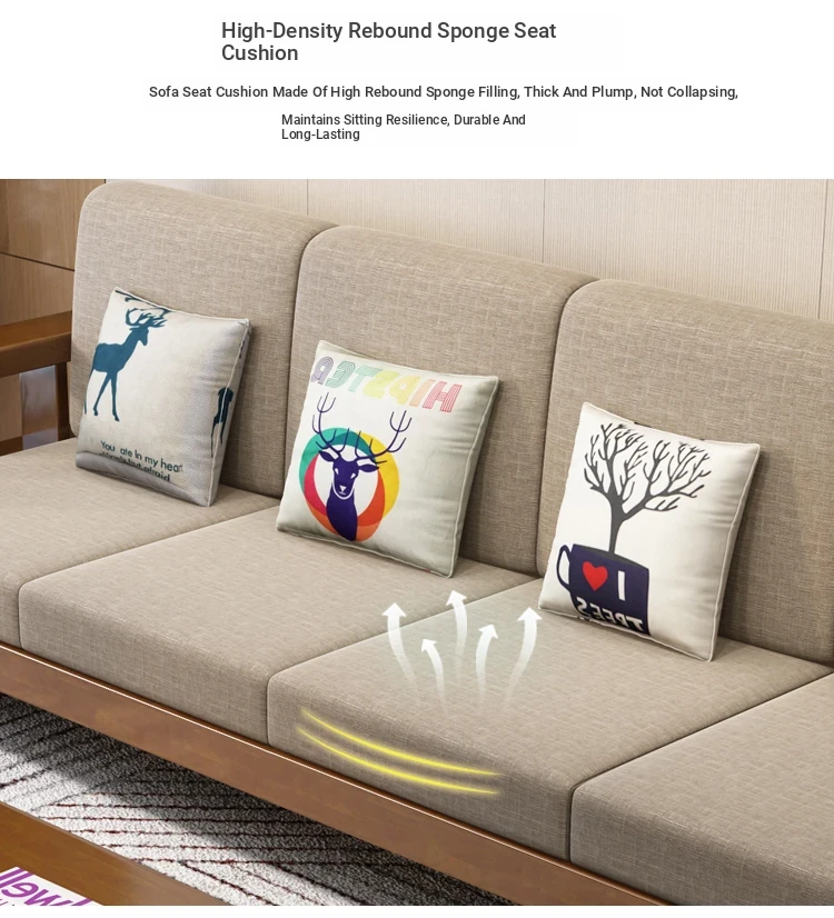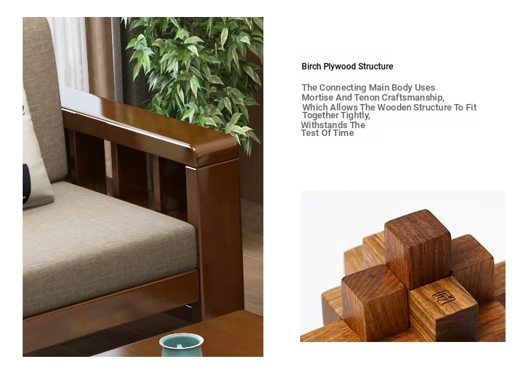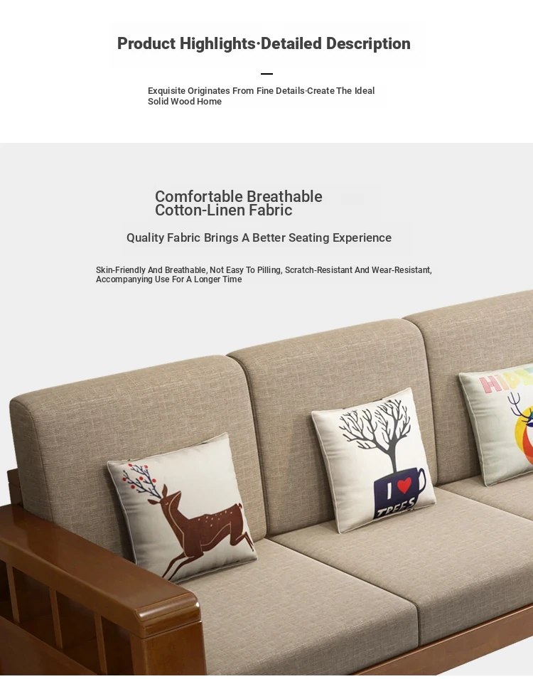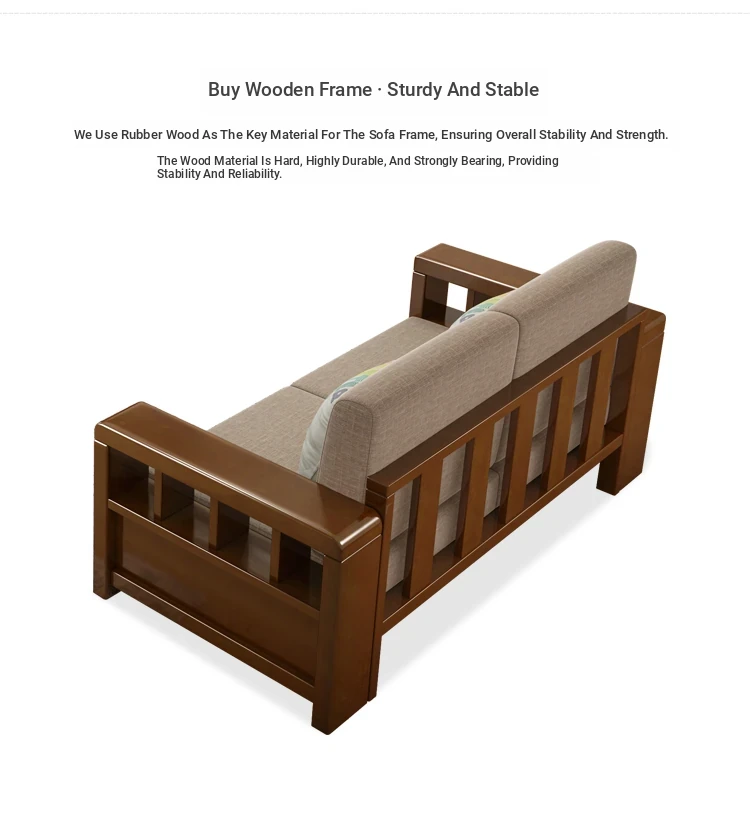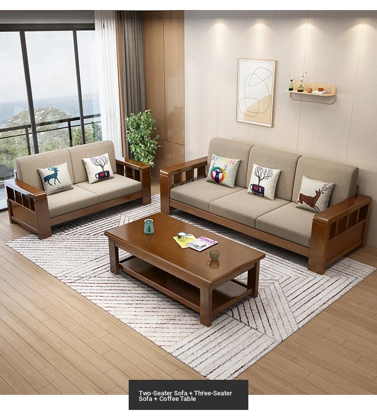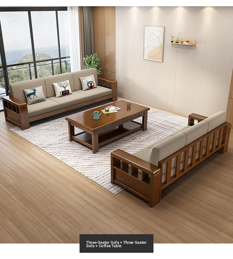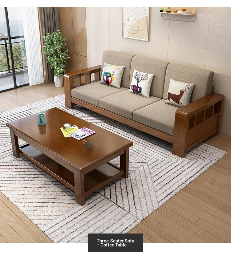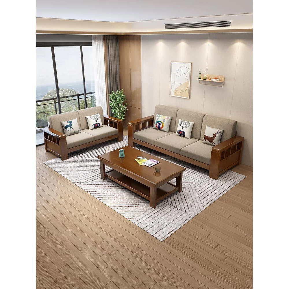 Modern Chinese-Style Solid Wood Sofa for Small Living Spaces - 3-Seater Artisanal Design, Perfect for Cozy Homes
