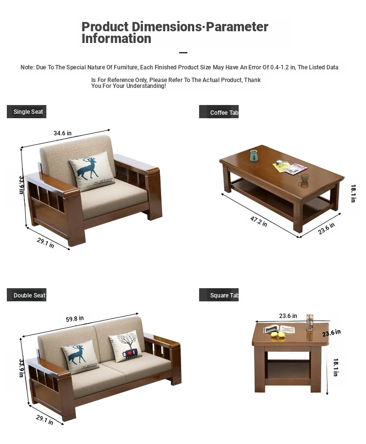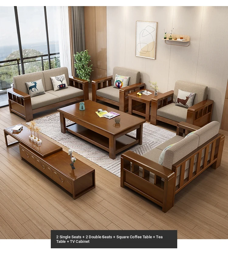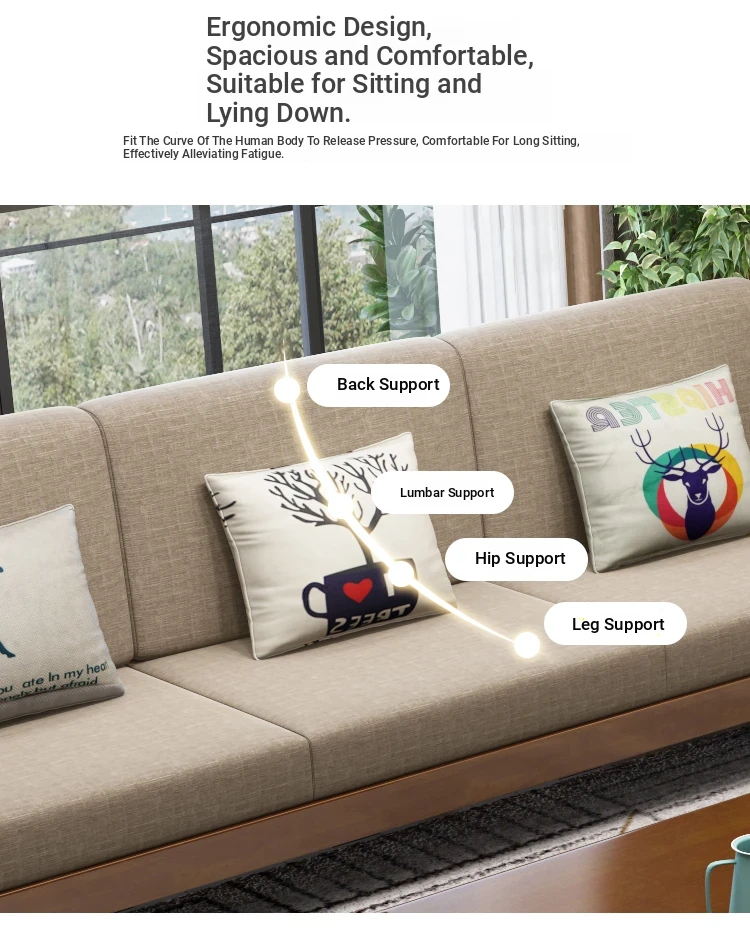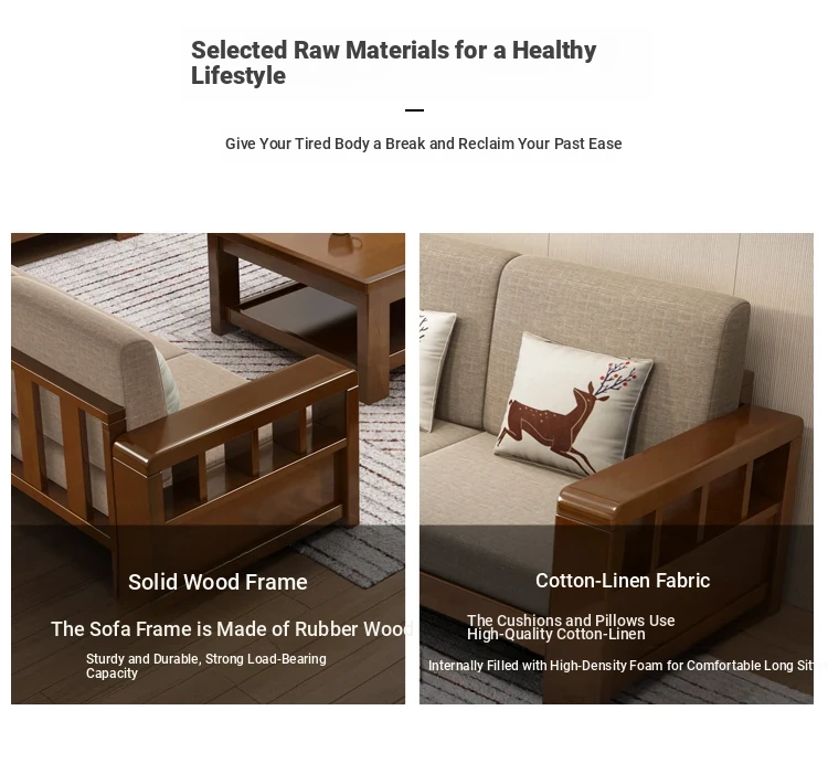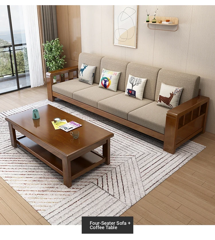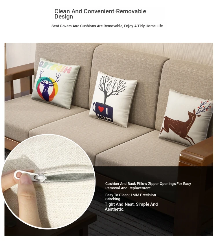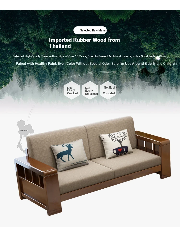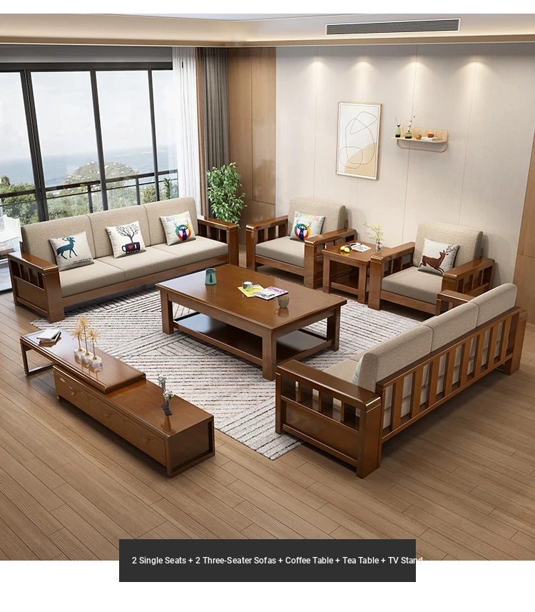 Modern Chinese-Style Solid Wood Sofa for Small Living Spaces - 3-Seater Artisanal Design, Perfect for Cozy Homes