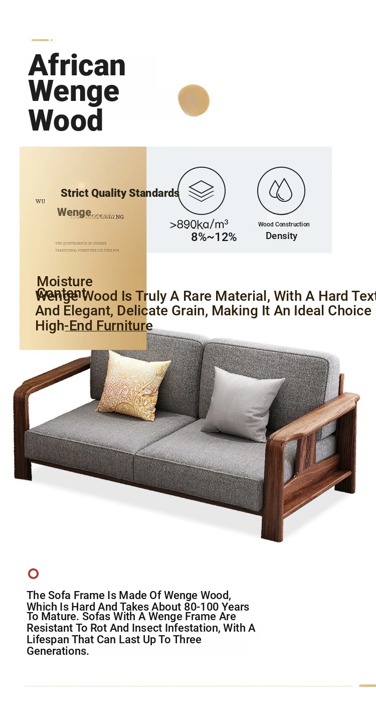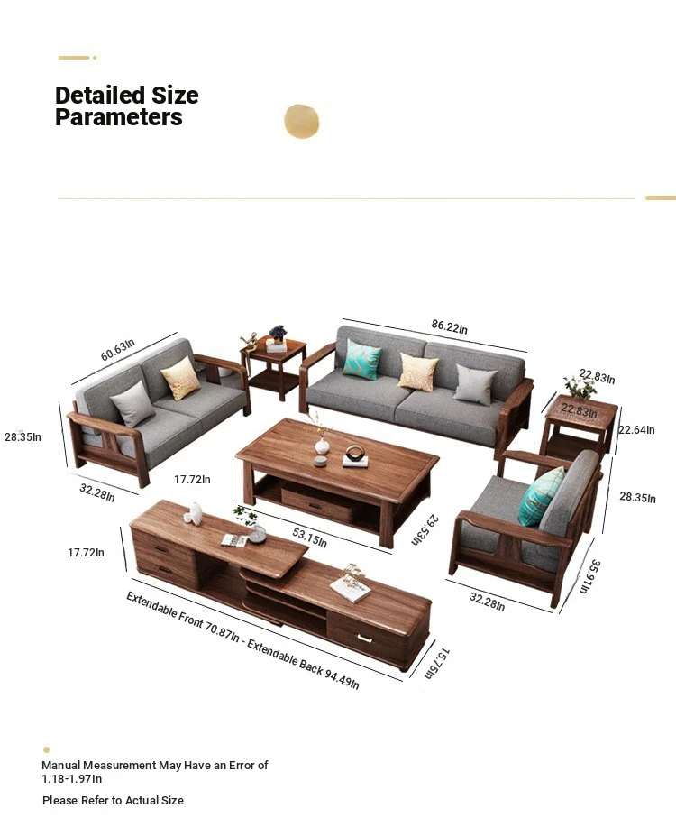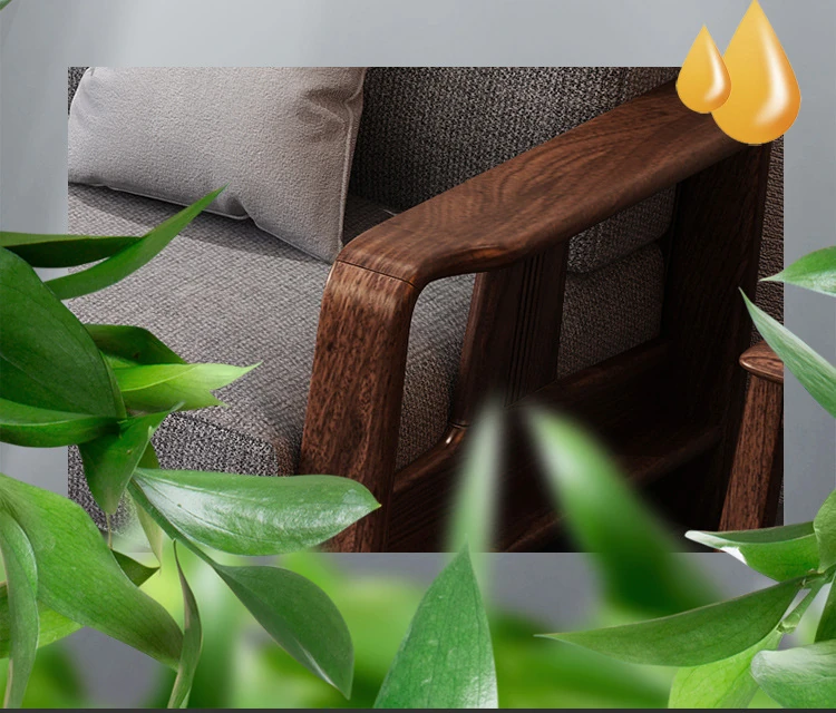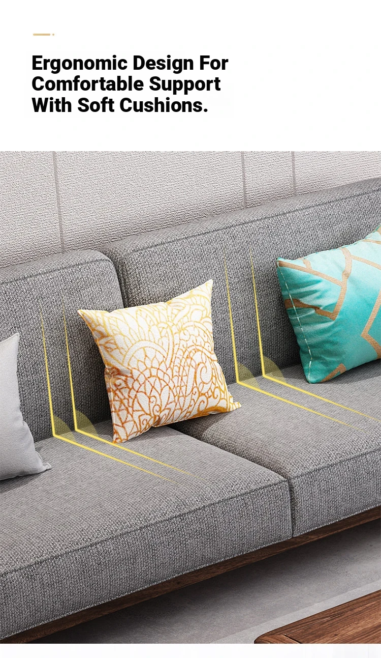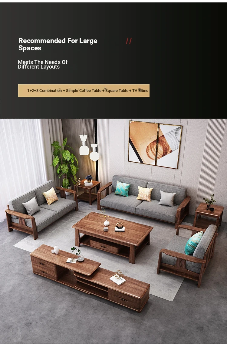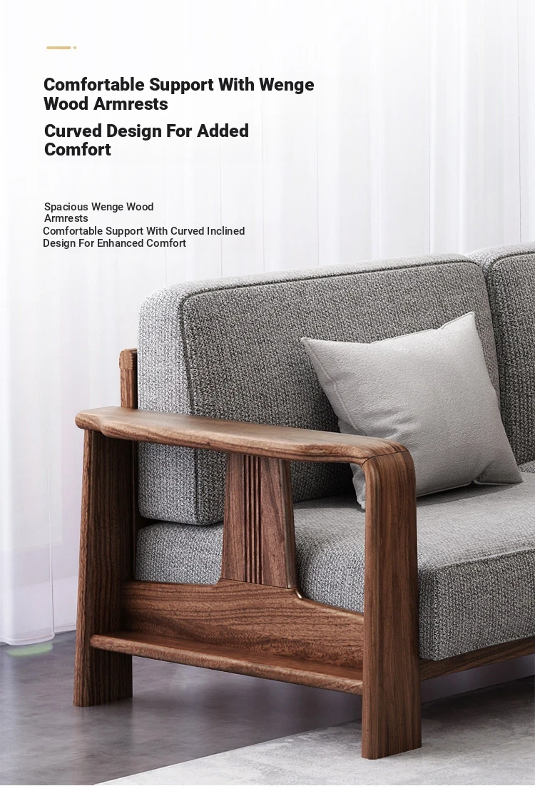 Modern Chinese-Style Solid Wood Sofa Set - 1+2+3 Combination with Luxurious Black Gold Wood, Elegant Fabric Upholstery, Perfect for Your Living Room Furniture.