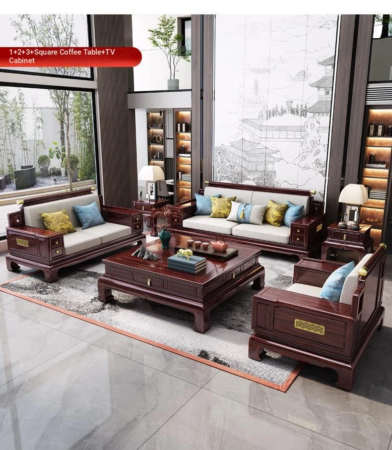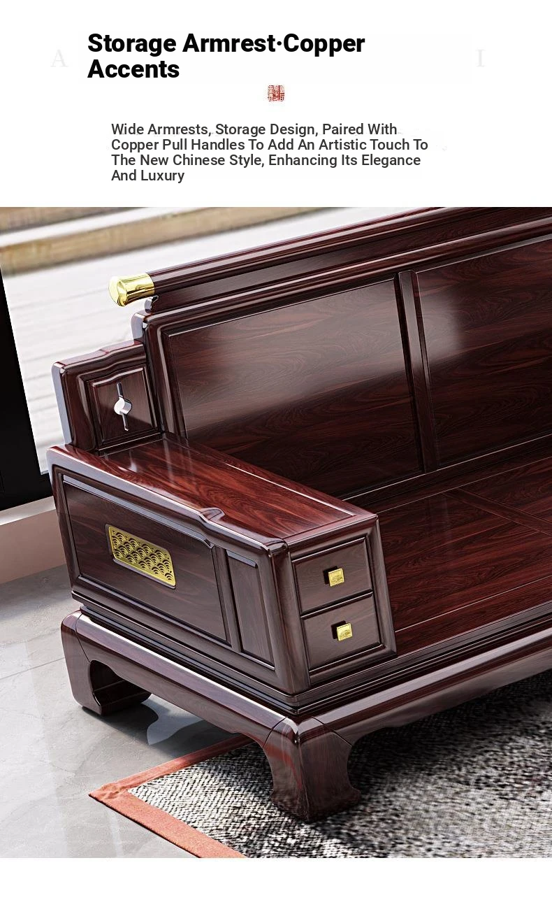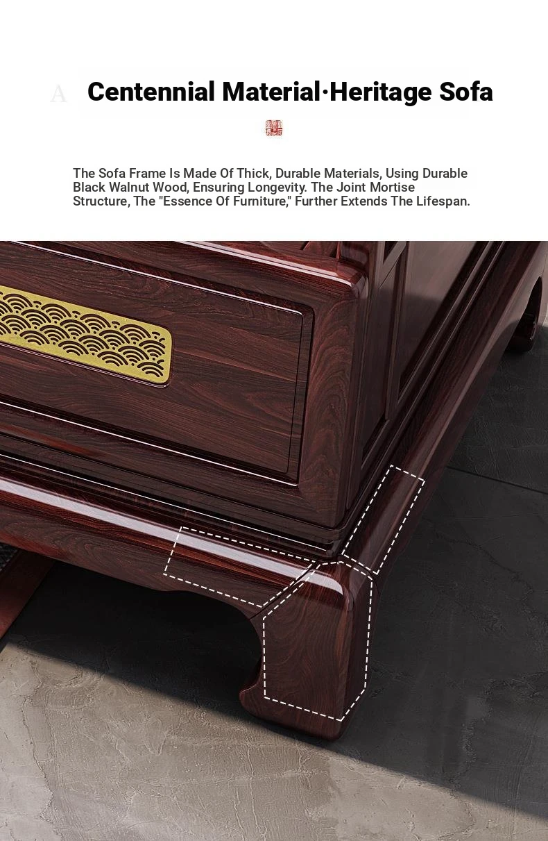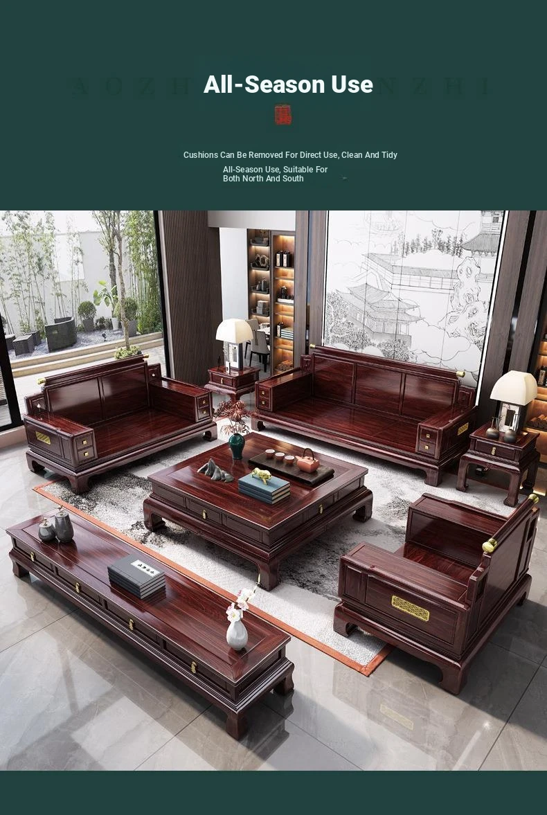 Modern Chinese-Style Wujin Wood Sofa - Versatile Solid Wood Sofa for Large Villas and Living Rooms, Perfect for Winter and Summer Use, Blending Contemporary and Classical Aesthetics