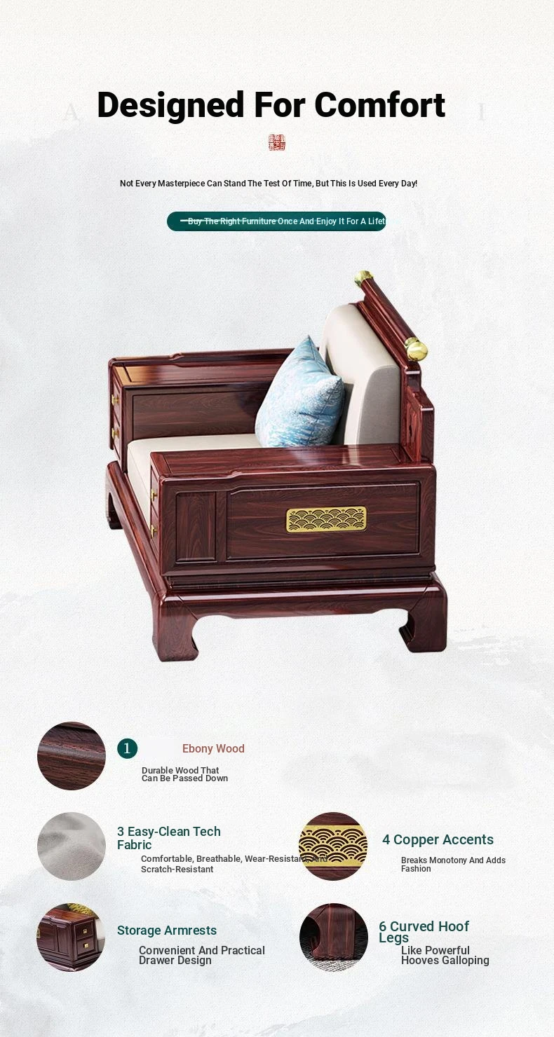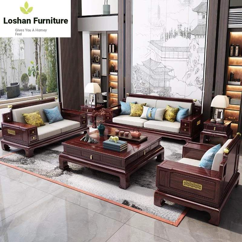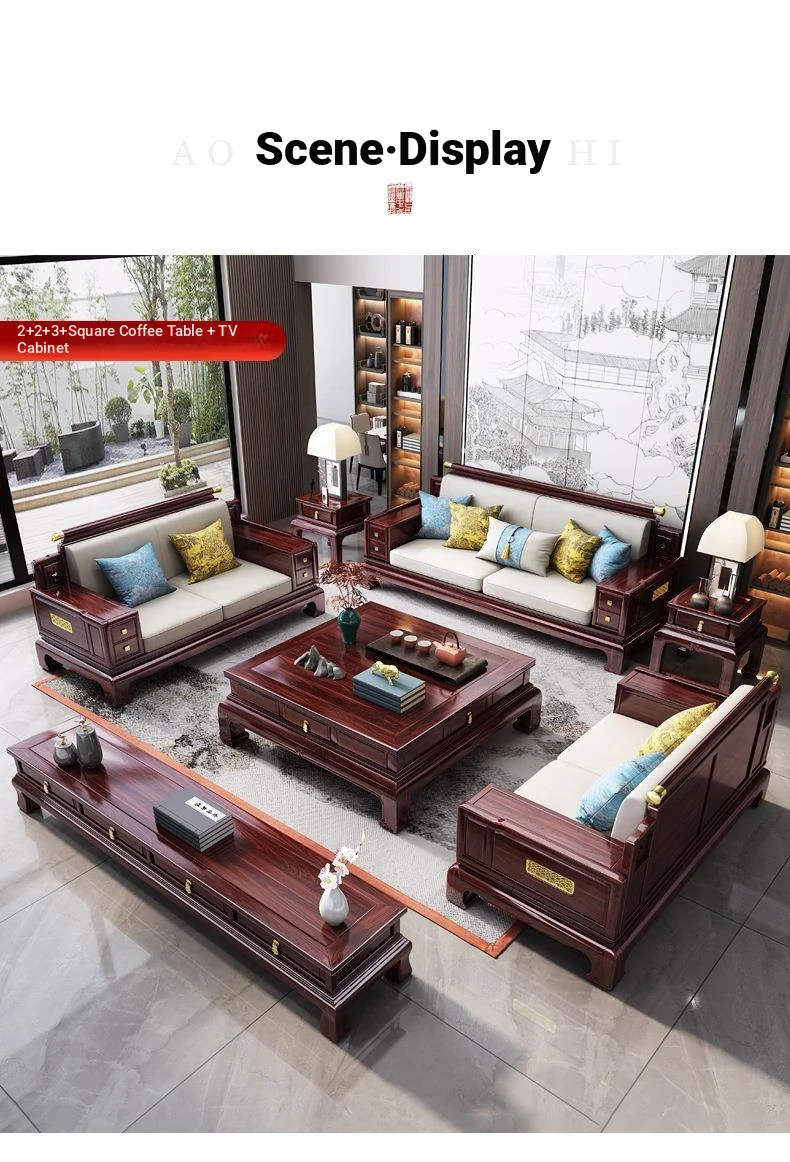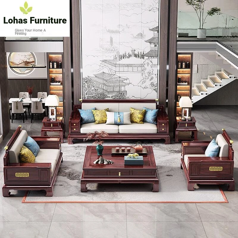 Modern Chinese-Style Wujin Wood Sofa - Versatile Solid Wood Sofa for Large Villas and Living Rooms, Perfect for Winter and Summer Use, Blending Contemporary and Classical Aesthetics