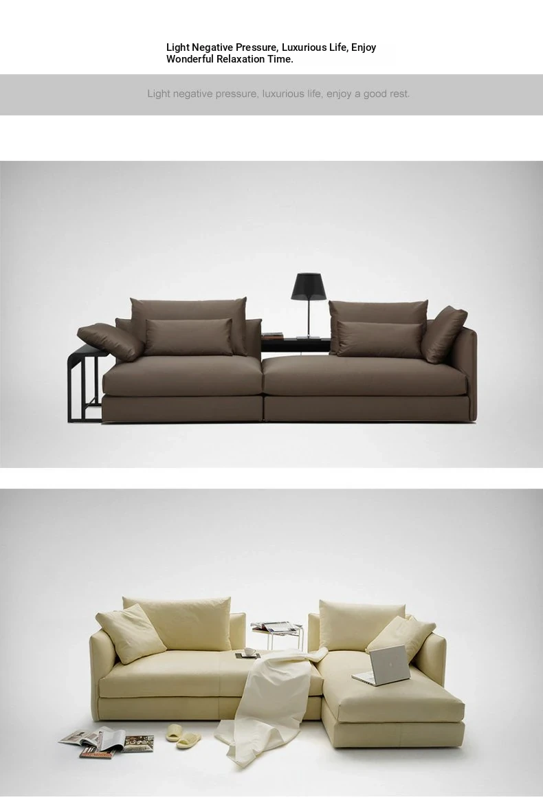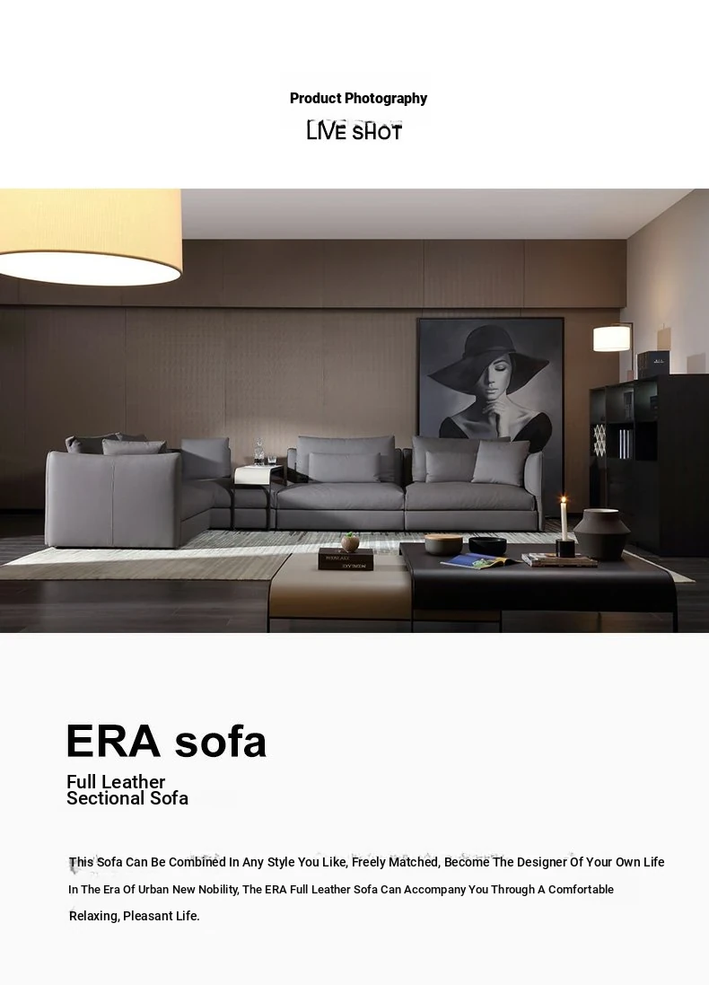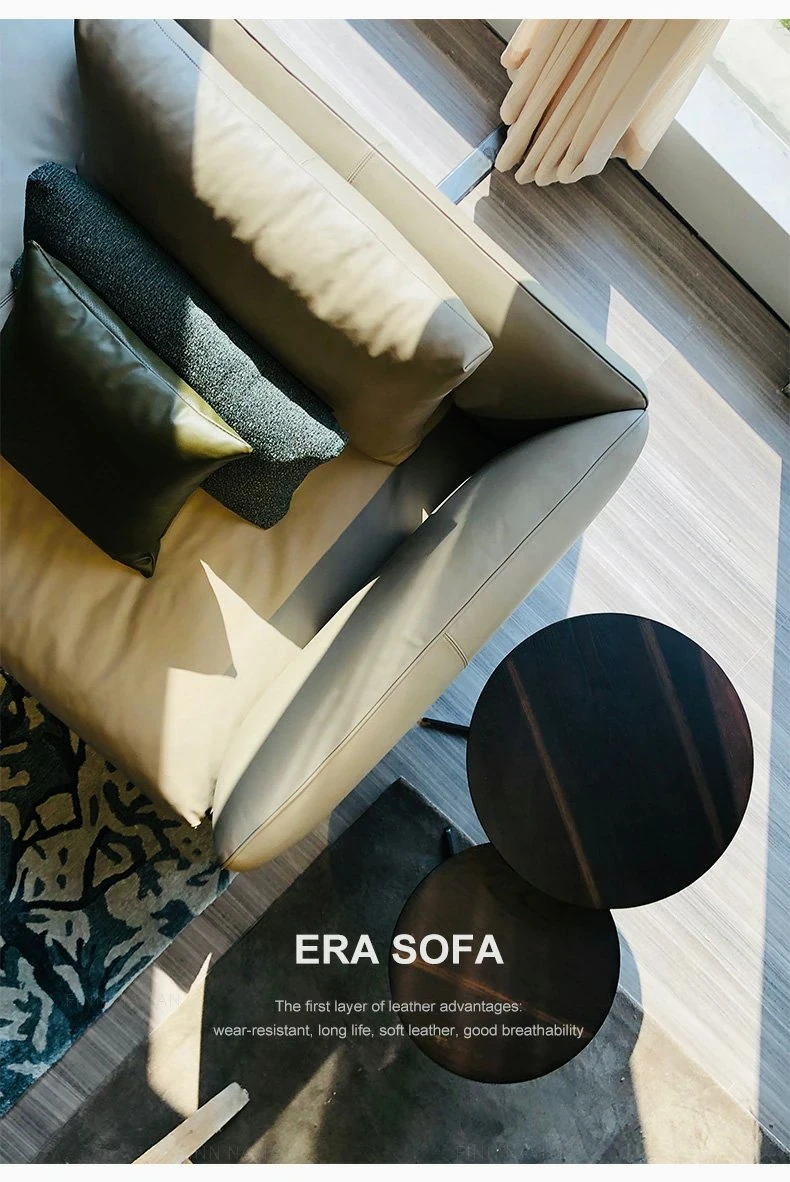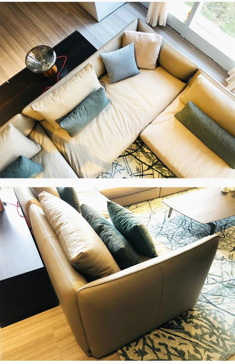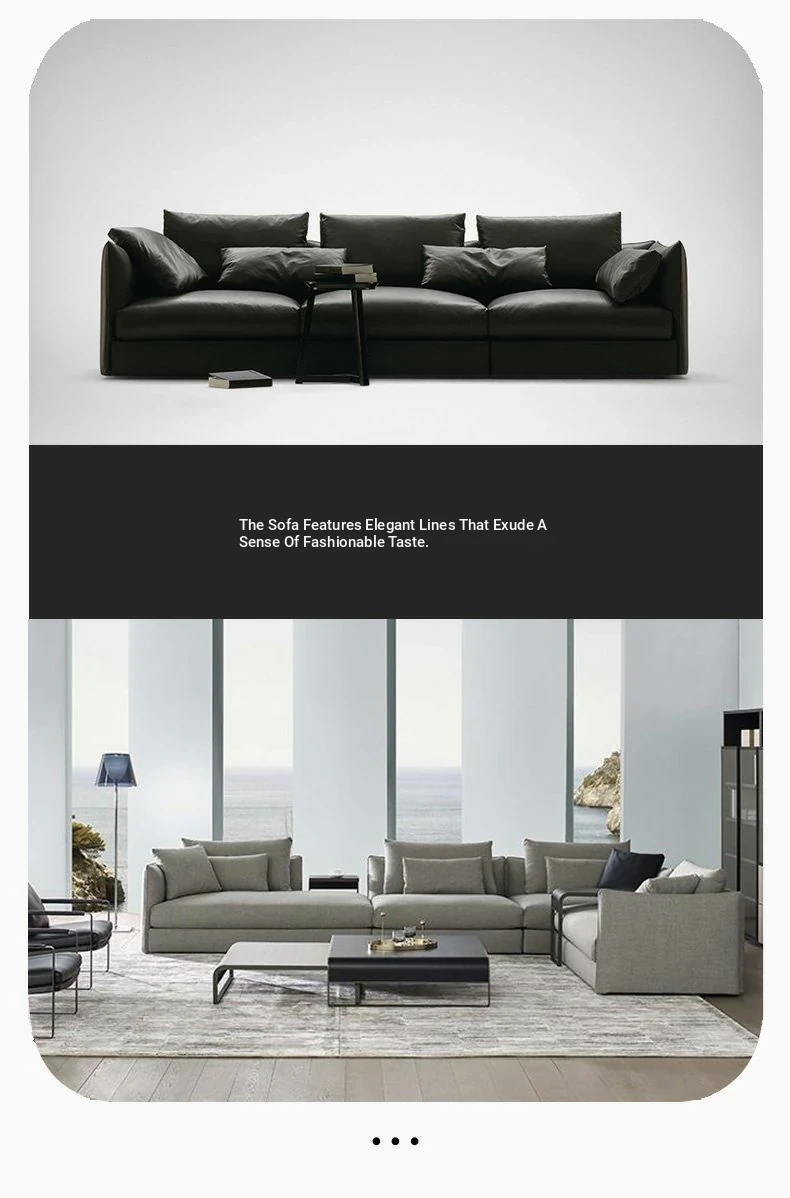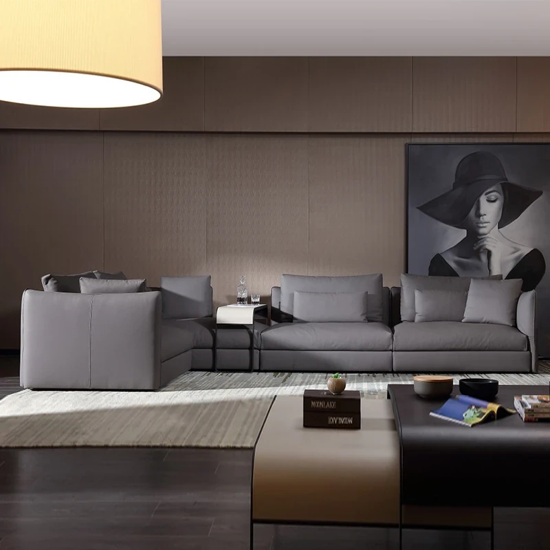Modern Italian Grey Genuine Leather Sofa Set for Small Living Rooms - Luxurious Top-Grain Leather, Minimalist Design, Perfect for Chic Spaces