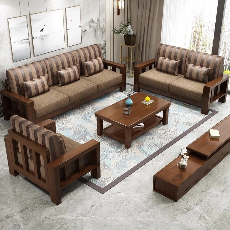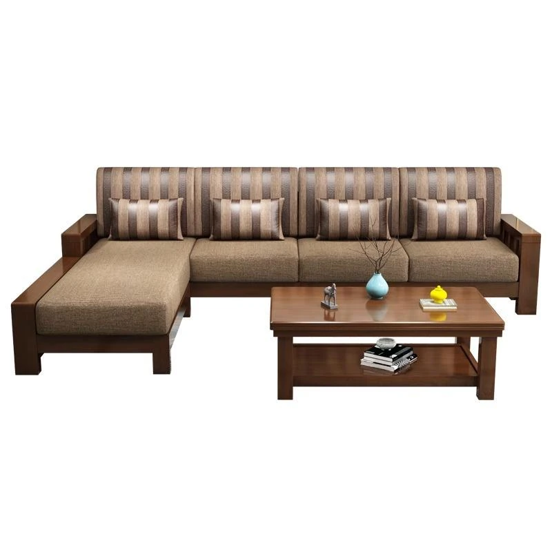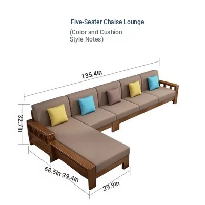 Modern Minimalist Chinese Style Solid Wood Chaise Lounge Corner Sofa for Small Spaces - Upholstered Wood Sofa with Storage Combination Furniture