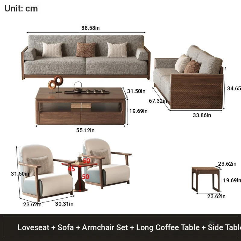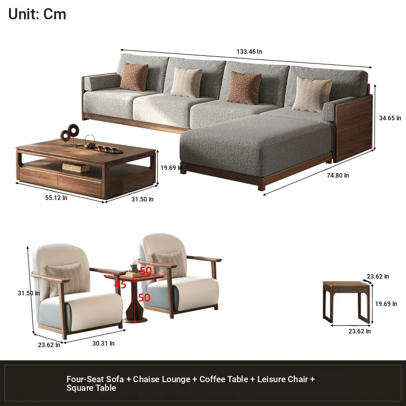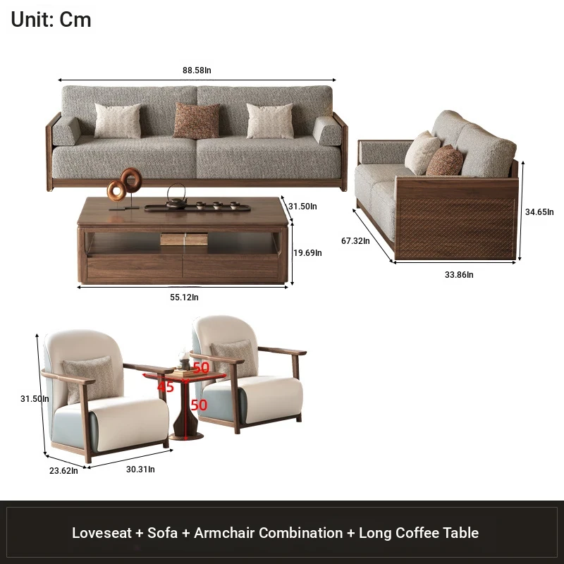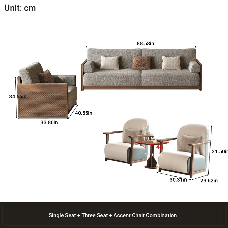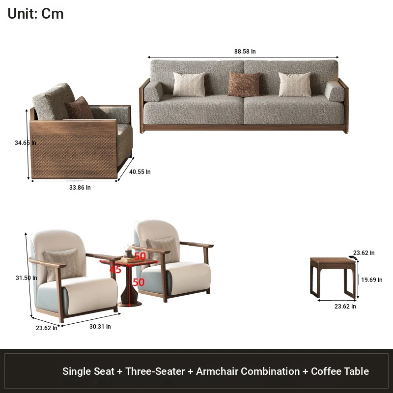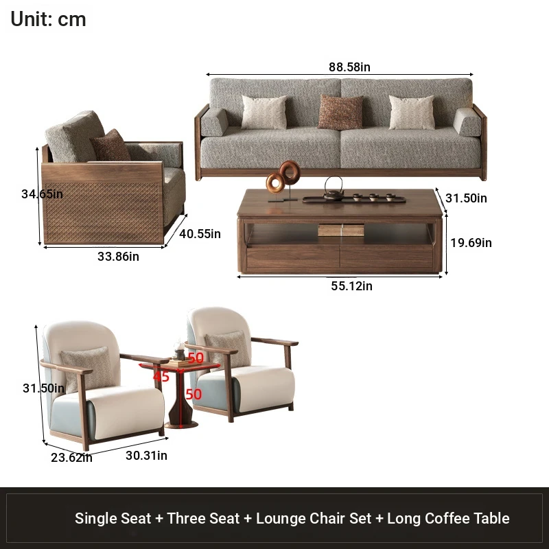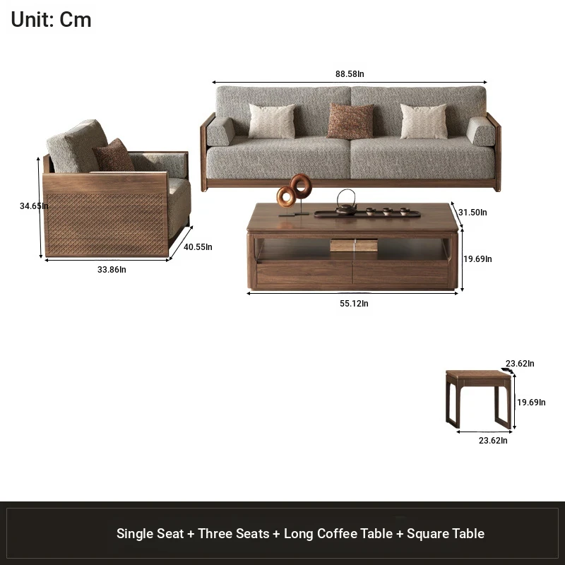 Single + Three + Leisure Chair Combination + Long Tea Table + Square Table