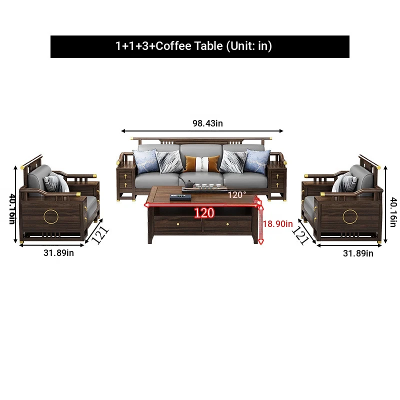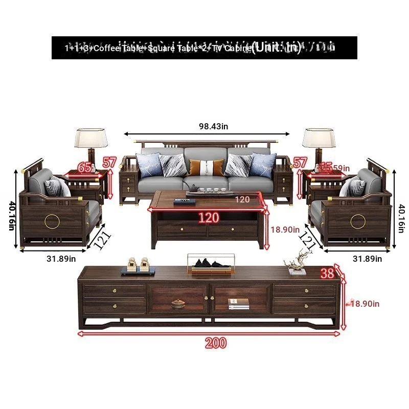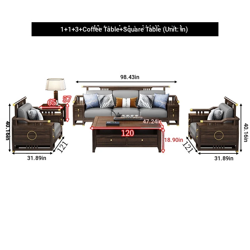 1+1+3 + coffee table + square * 2 + TV cabinet