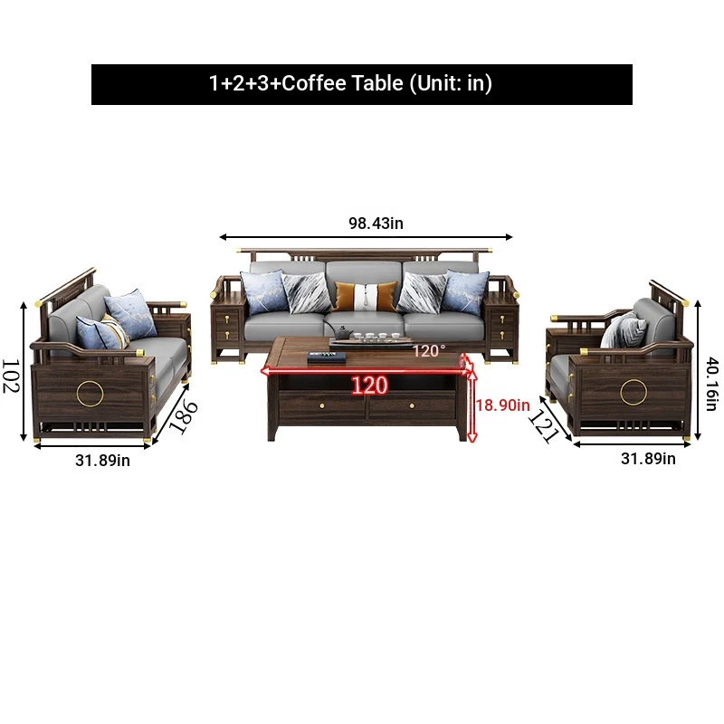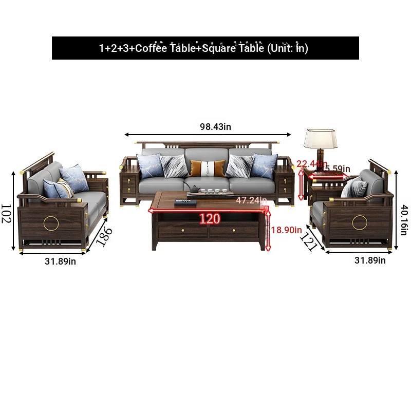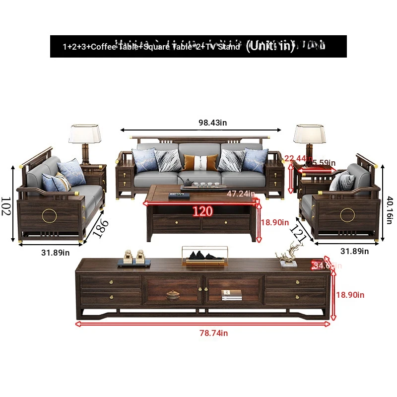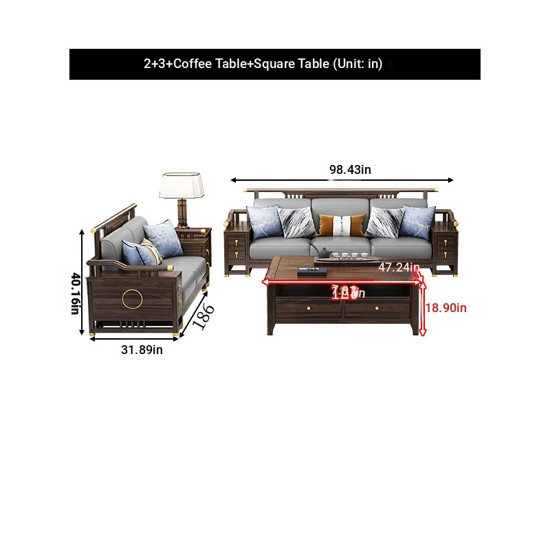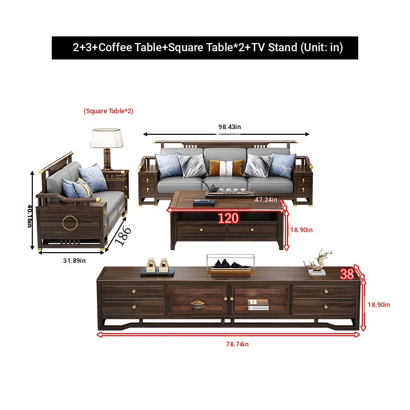2+3 + coffee table + square * 2 + TV cabinet