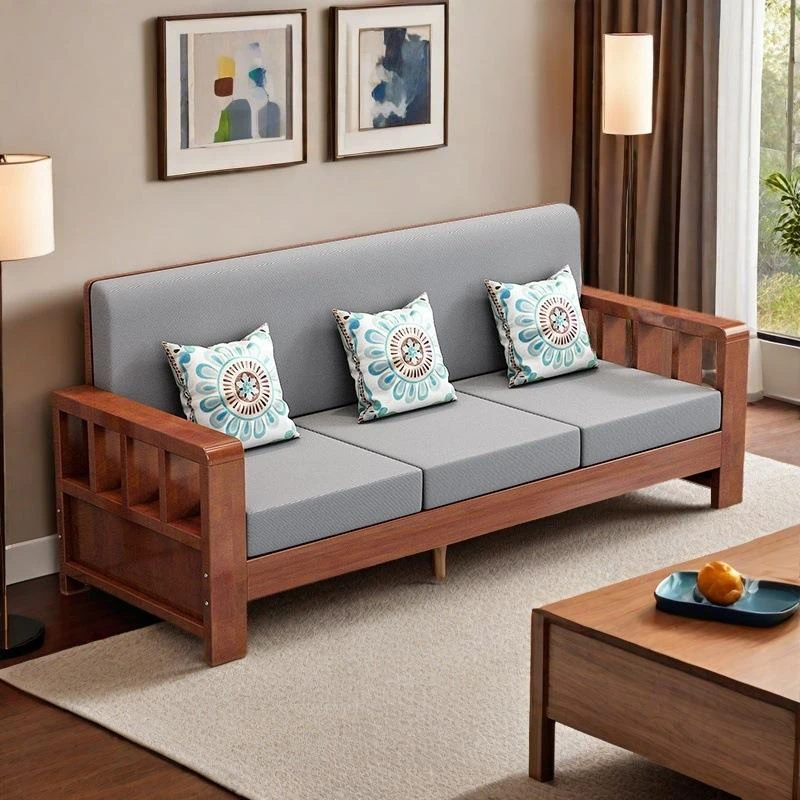 Modern Minimalist Solid Wood Sofa Set - New Chinese Style, Dual-Use for Winter and Summer, Perfect for Small Spaces, Economical Three-Seater Sofa