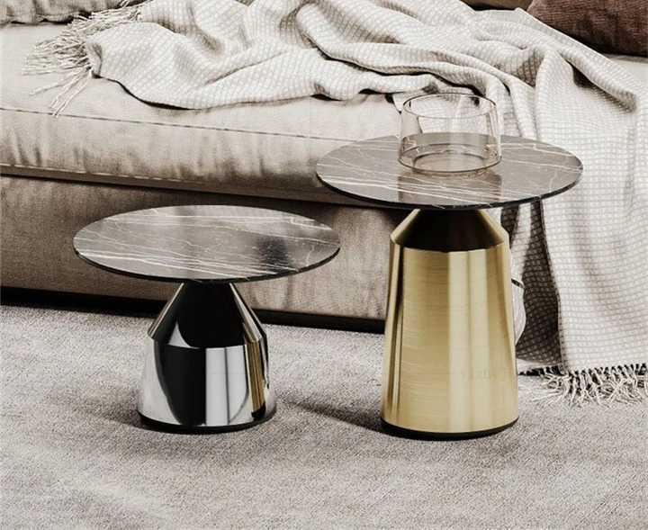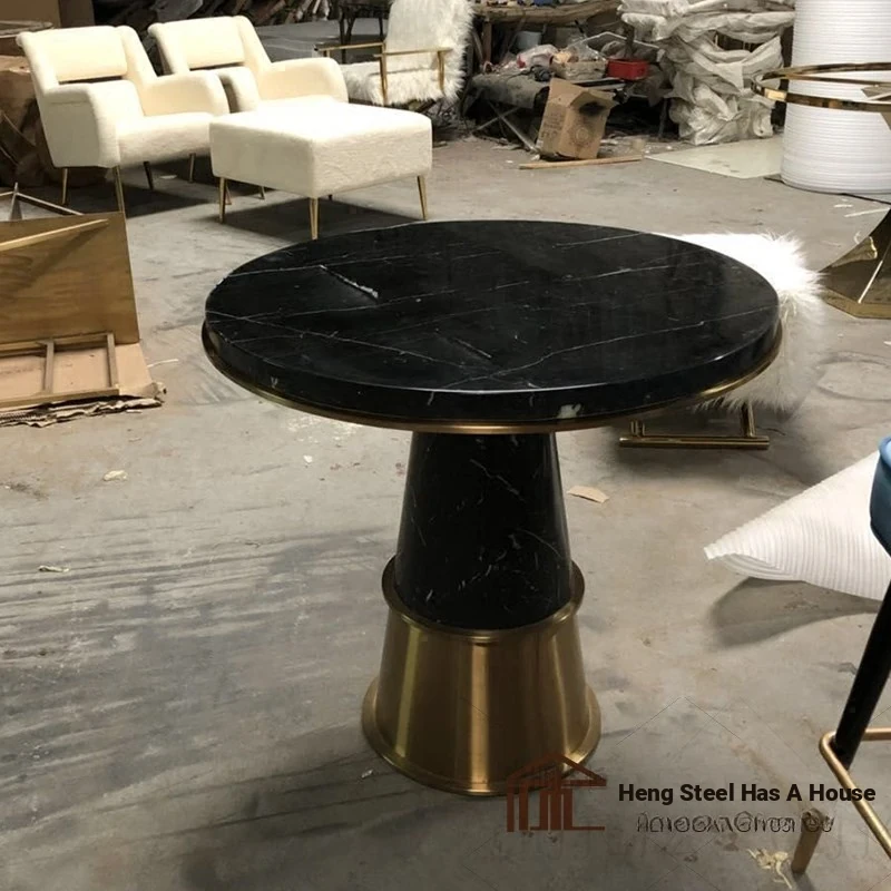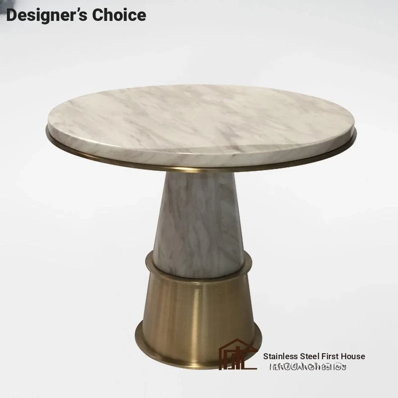 Modern Minimalist Stainless Steel Marble Round Dining Table - Ideal for Lobby Reception, Sales Office Meeting, and Client Discussions