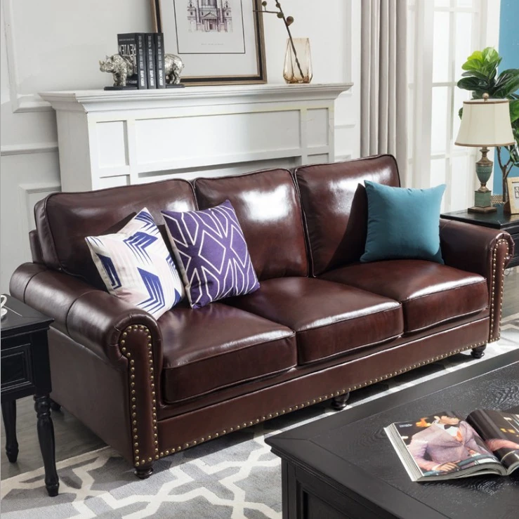 Modern Retro Minimalist Genuine Leather Sofa Set - Stylish 3-Seater for Small Living Rooms, Crafted from Top-Grade Cowhide for Comfort and Durability. Perfect for Chic Interiors!