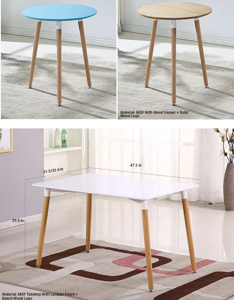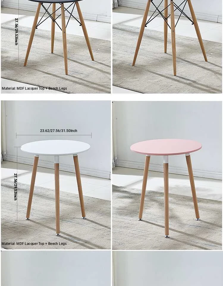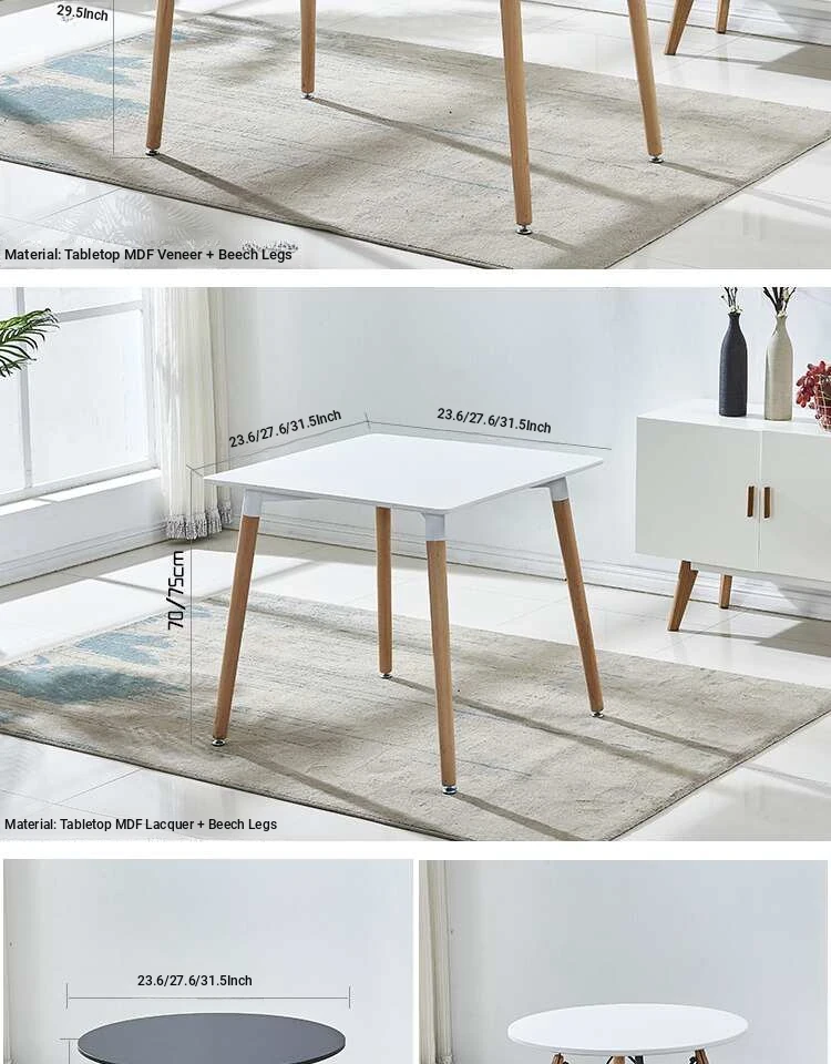 Modern Round Dining Table for Small Spaces - Minimalist L-Shaped Wooden Table for Balconies and Nordic Style Meetings