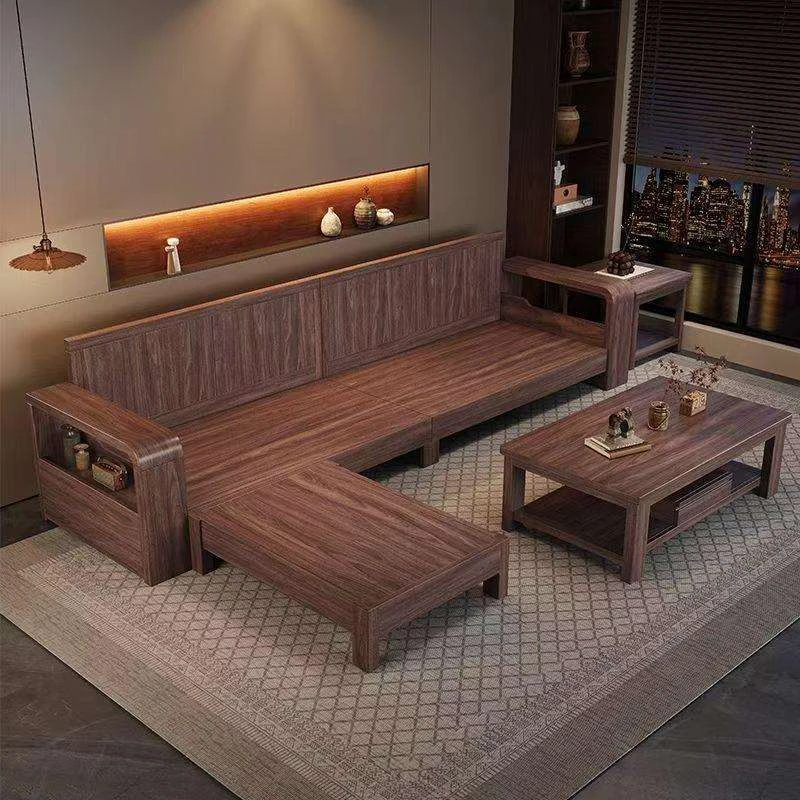 Modern Solid Wood Sofa with Storage - North American Black Walnut Living Room Sofa, All-Season Design, Stylish and Functional for Your Home
