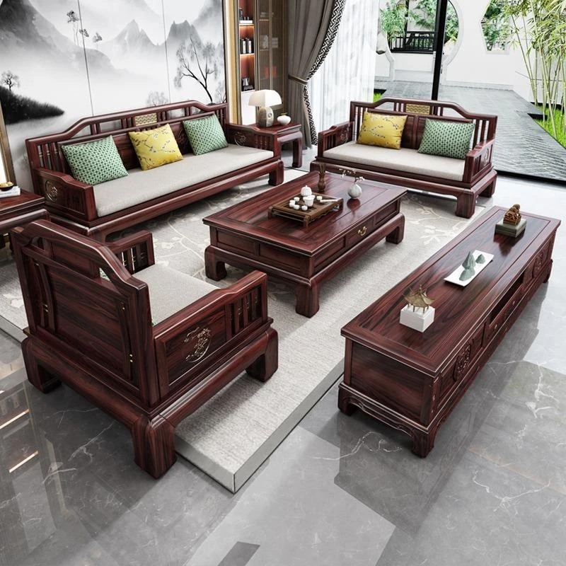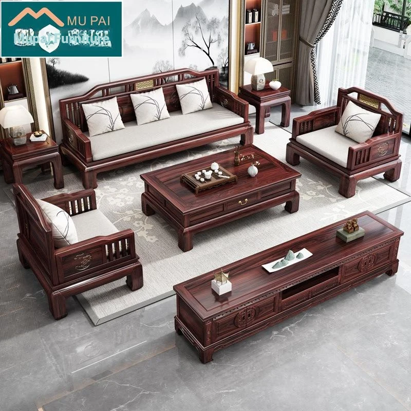 New Chinese Style Solid Wood Sofa Set - 123 Combination of Rosewood for a Tranquil Living Room Experience, Directly Supplied from Factory for Year-Round Comfort