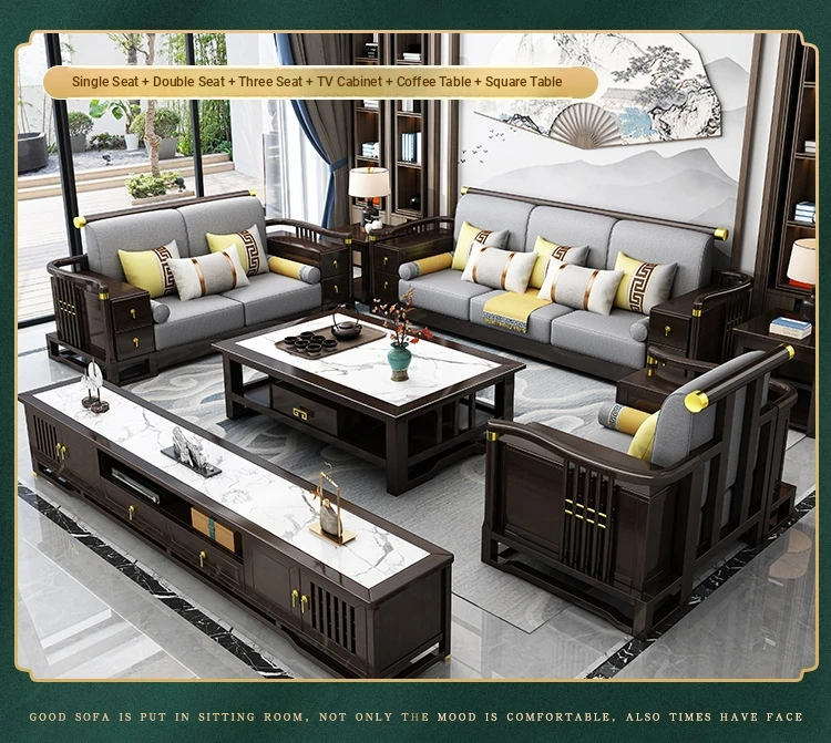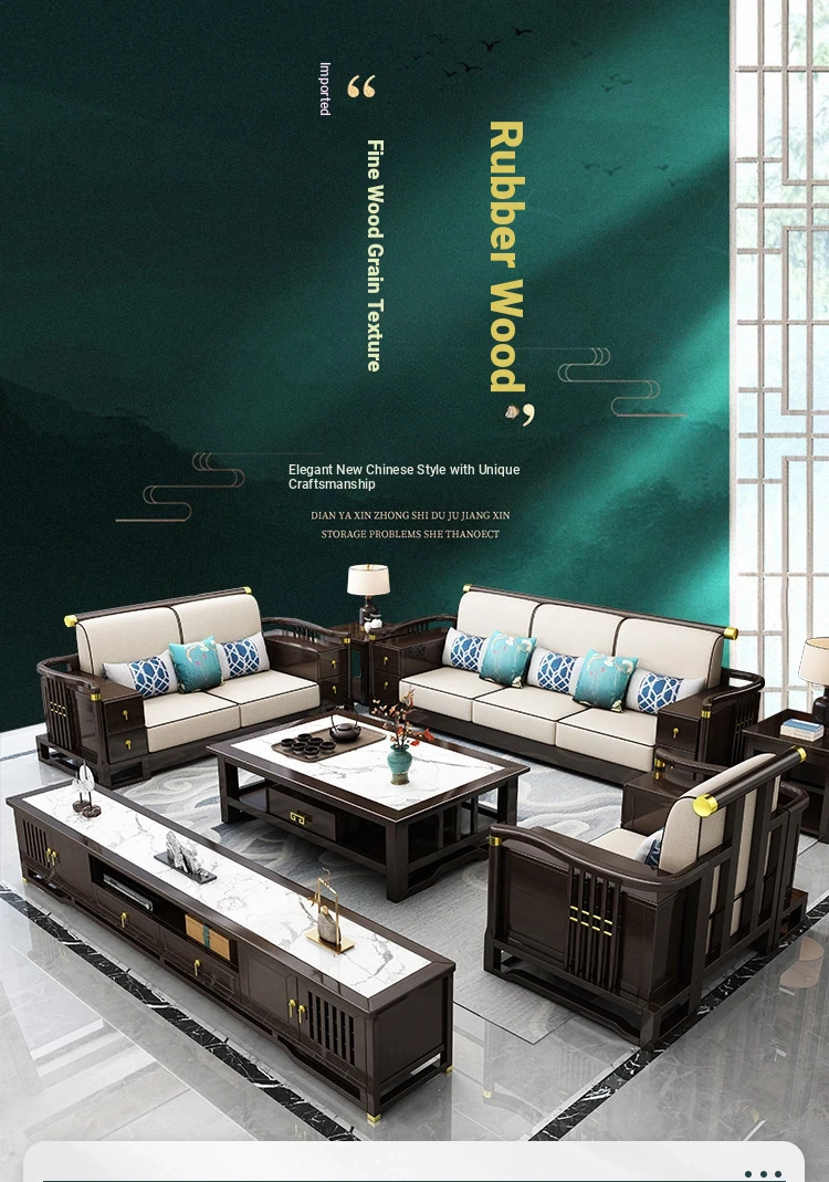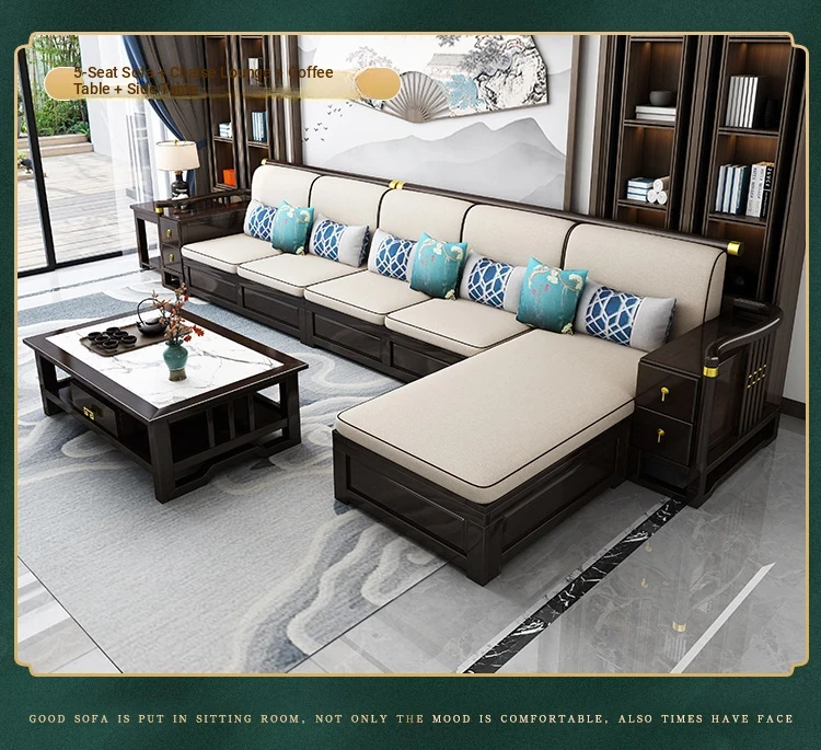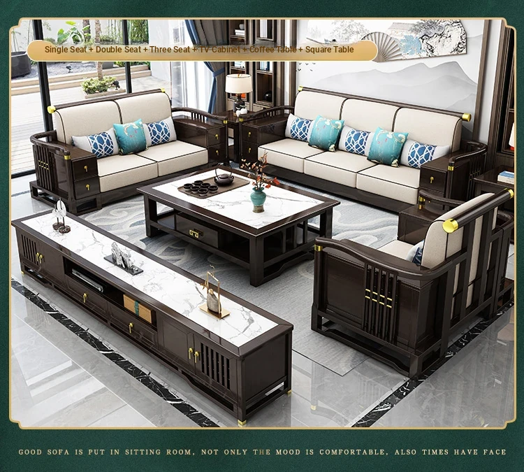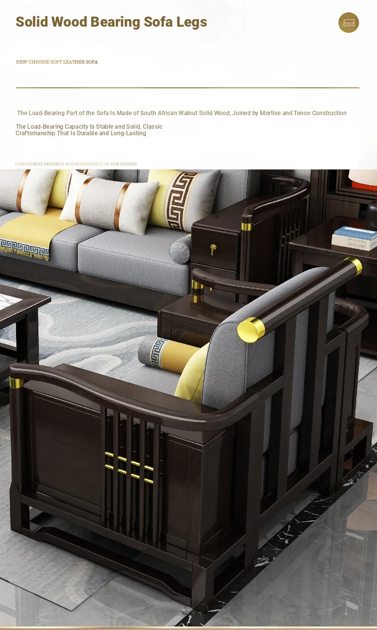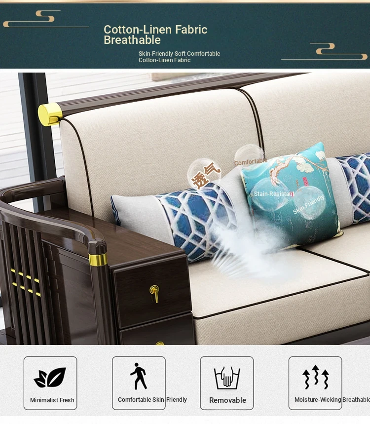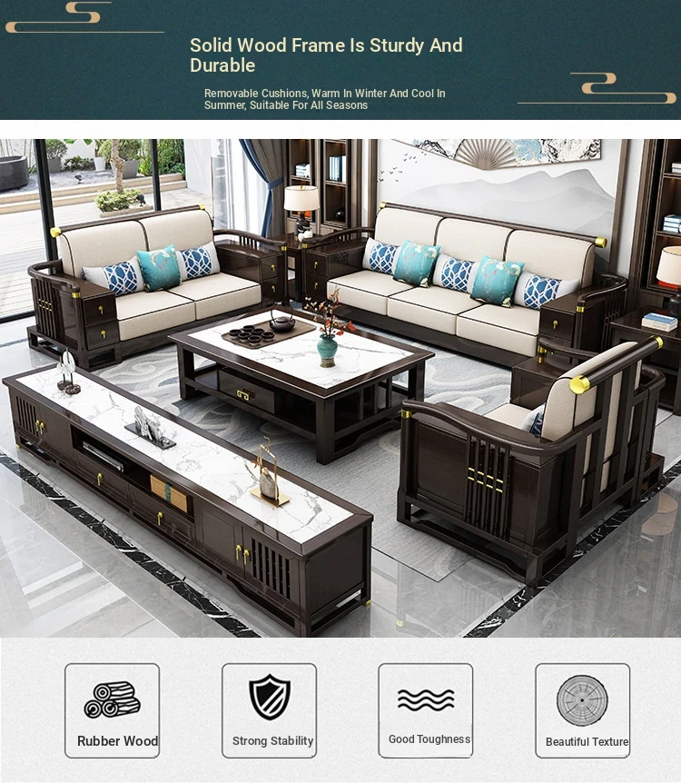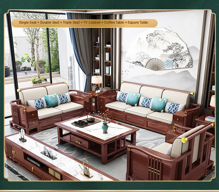 New Chinese Style Solid Wood Sofa Set LC-9906# - Elegant Minimalist Design for Living Rooms, Perfect for Small Spaces, Versatile for Both Winter and Summer Use