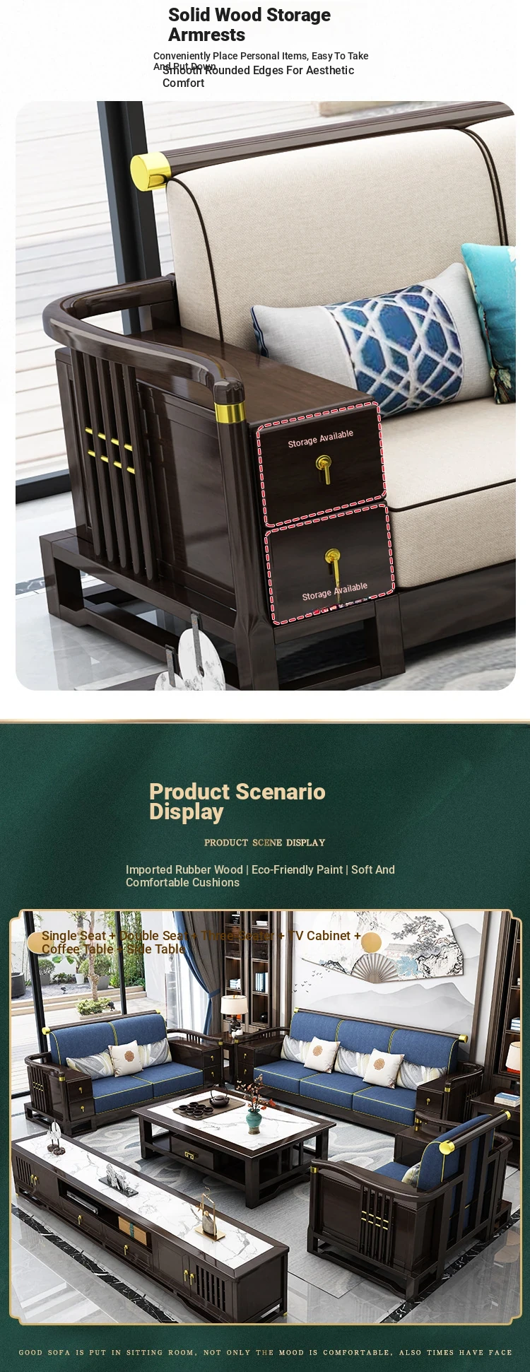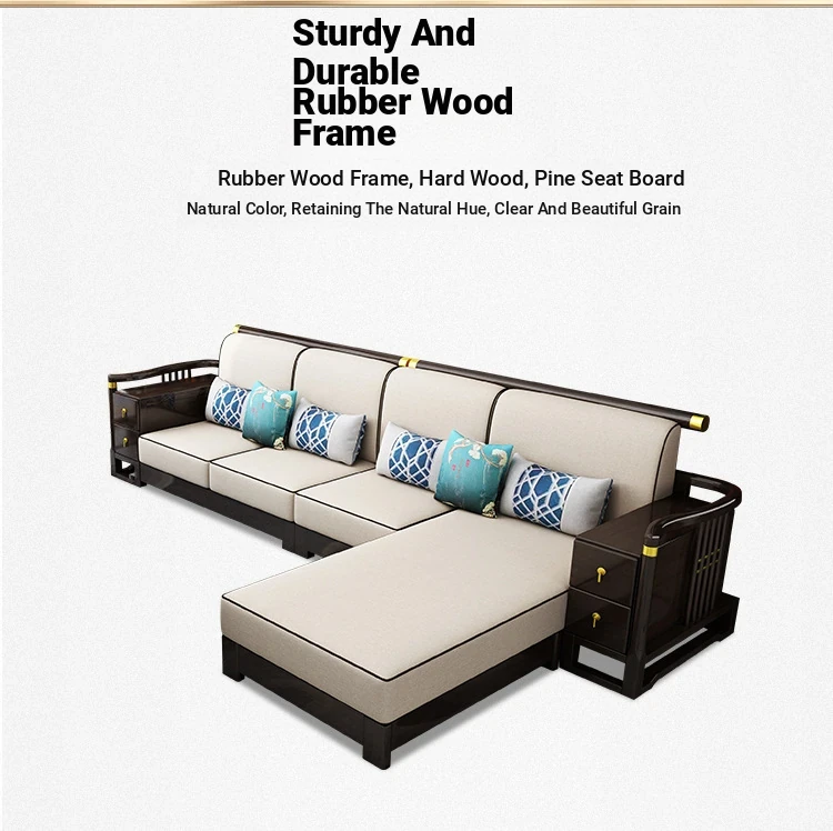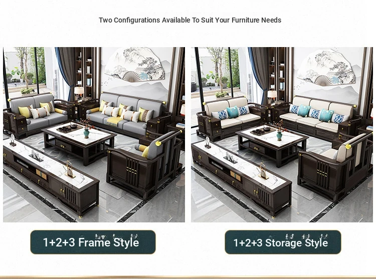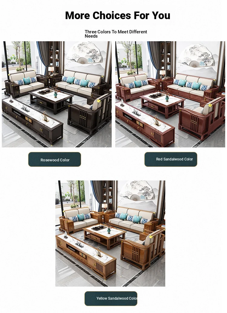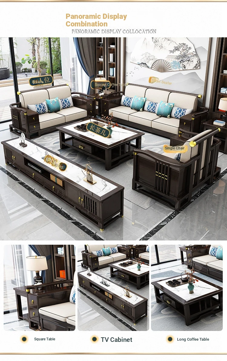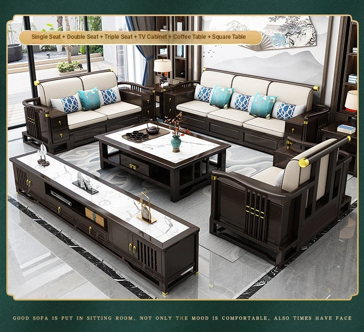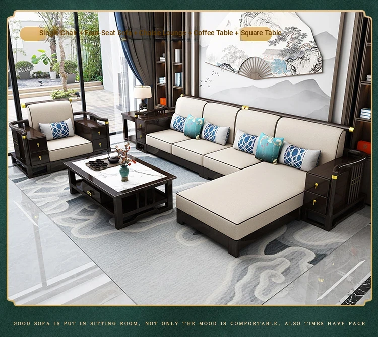 New Chinese Style Solid Wood Sofa Set LC-9906# - Elegant Minimalist Design for Living Rooms, Perfect for Small Spaces, Versatile for Both Winter and Summer Use