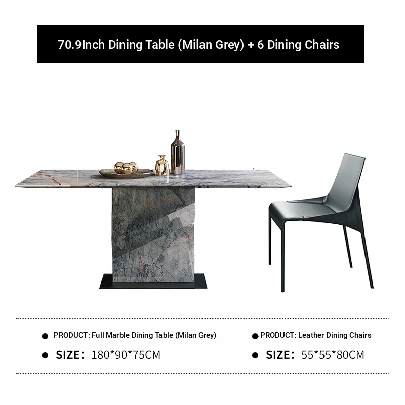 70.87in [full stone (Italian Milan Gray)] +6 dining chairs