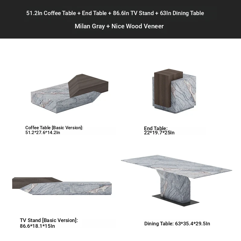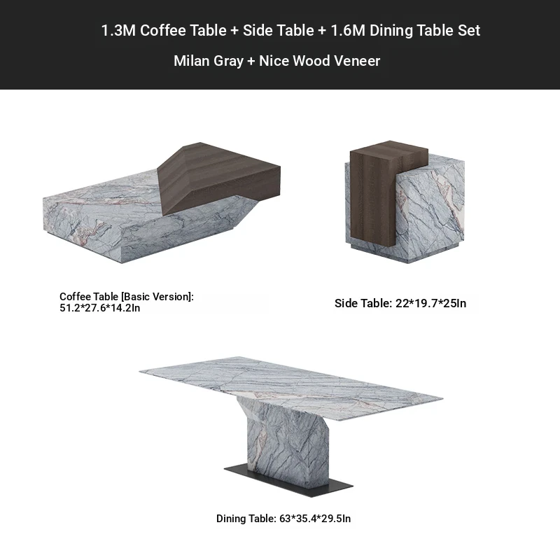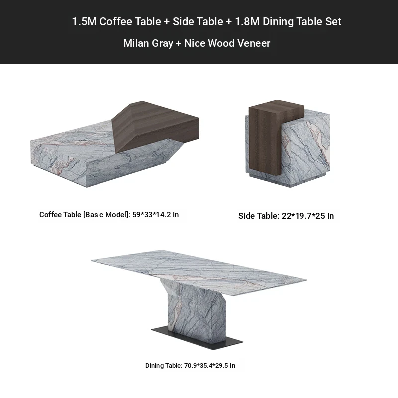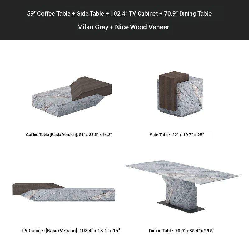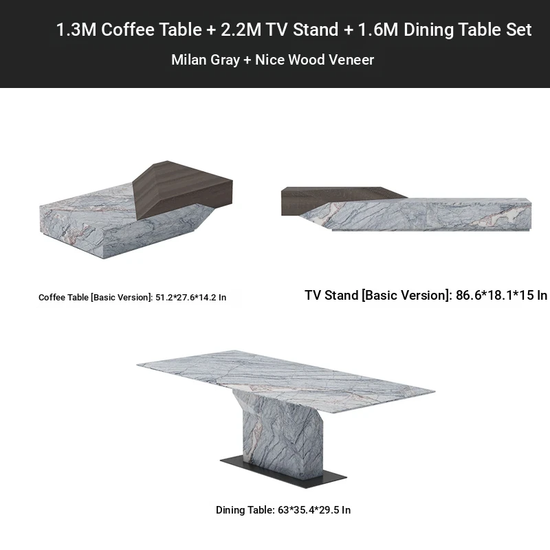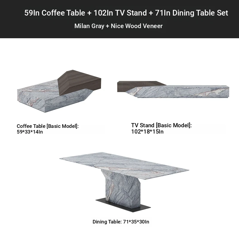 70.87in dining table +59.06in tea table +102.36in TV cabinet + side table [Italian Milan Gray]]