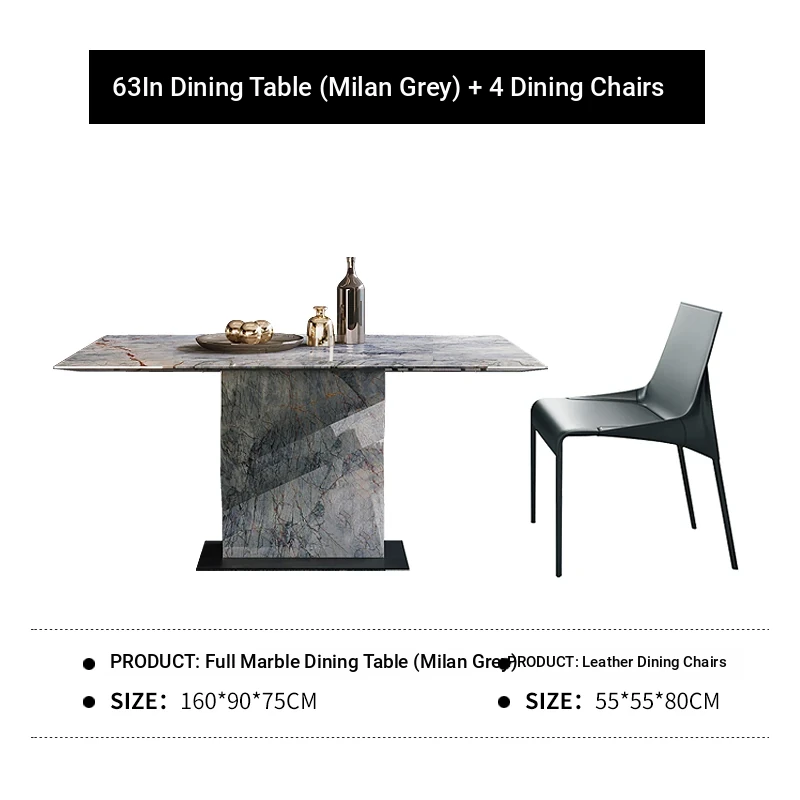 62.99in full stone (Italian Milan Gray)] +4 dining chairs