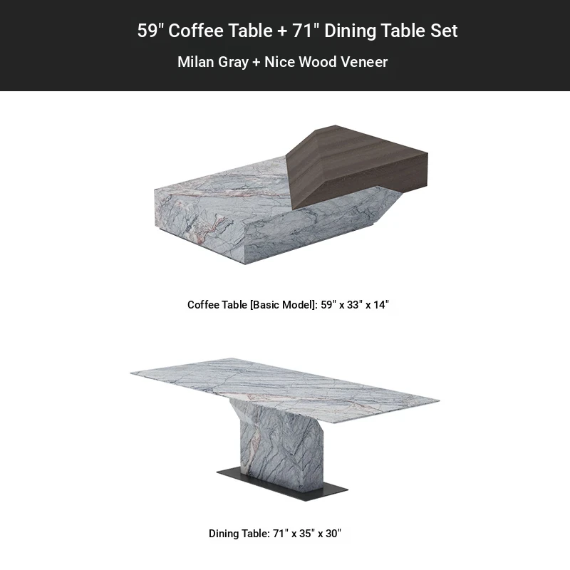 70.87in Dining Table +59.06in Tea Table +102.36in TV Cabinet [Italian Milan Grey]]