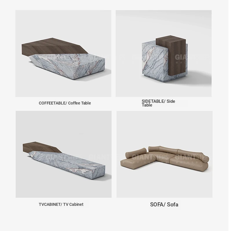 62.99in Dining Table +51.18in Tea Table +86.61in TV Cabinet + Side Table [Italian Milan Grey]]