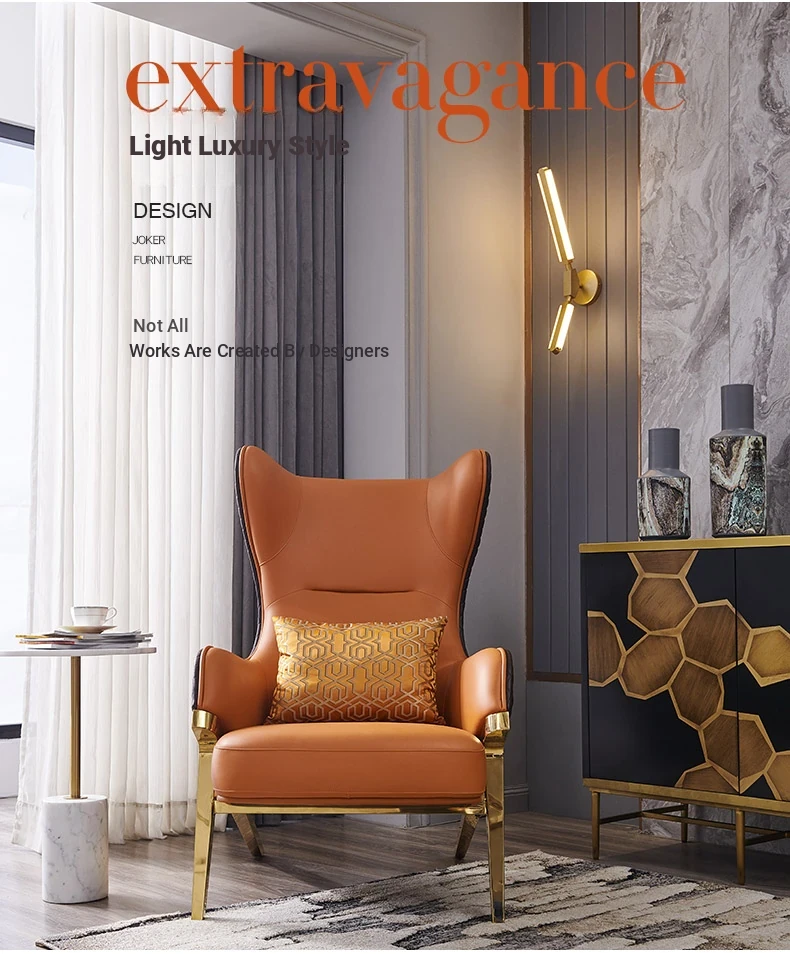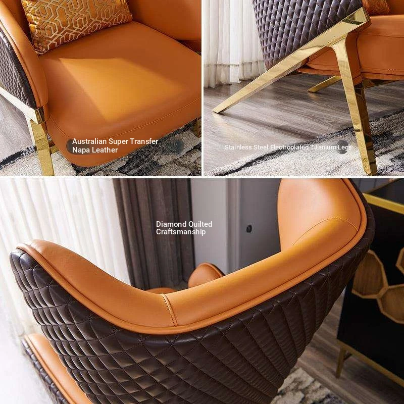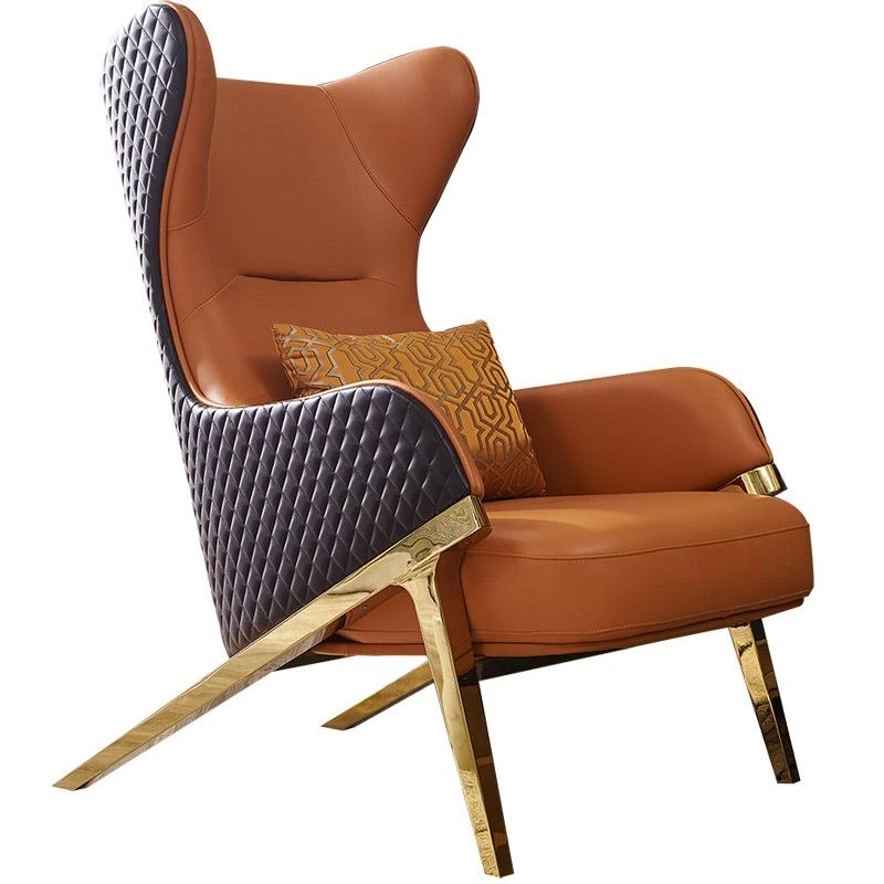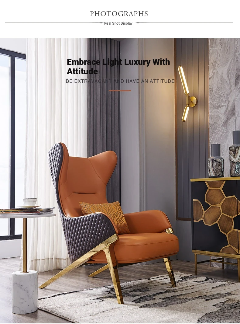 Nordic Post-Modern Minimalist Luxury Single Sofa Chair - Designer Leather Tiger Chair with Stainless Steel Frame for Stylish Living Room Relaxation