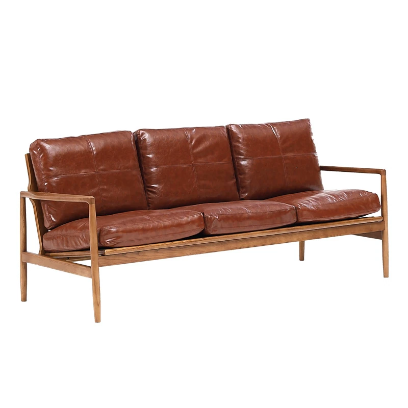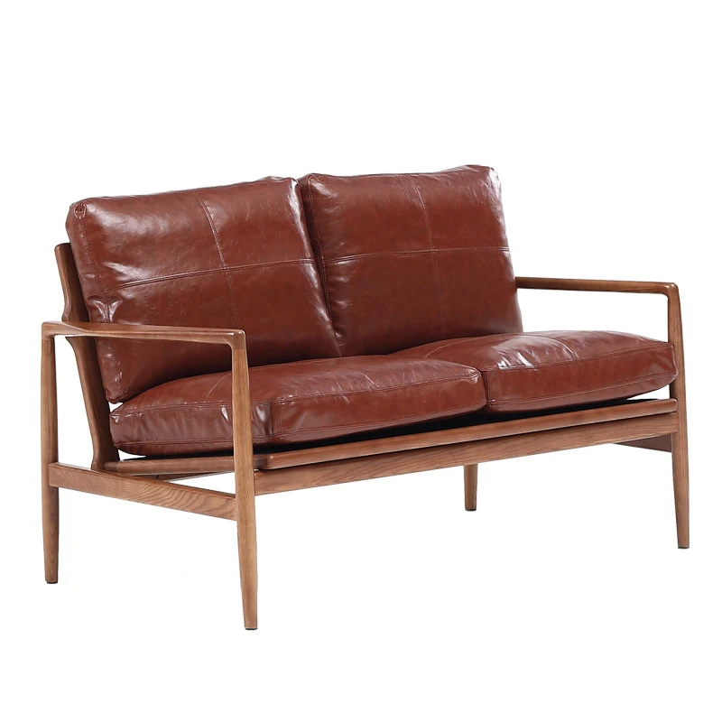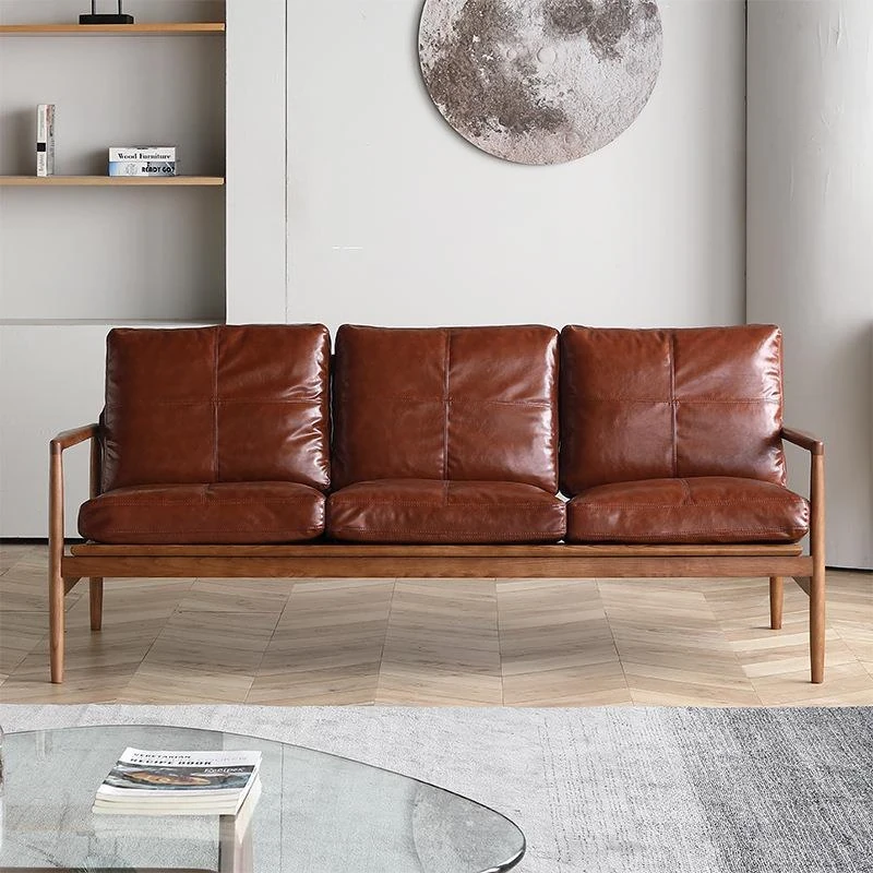 Nordic Solid Wood Genuine Leather Sofa - Italian Minimalist Living Room Set with Top Layer Cowhide, Down-Filled Armchair – Perfect for Modern Home Décor