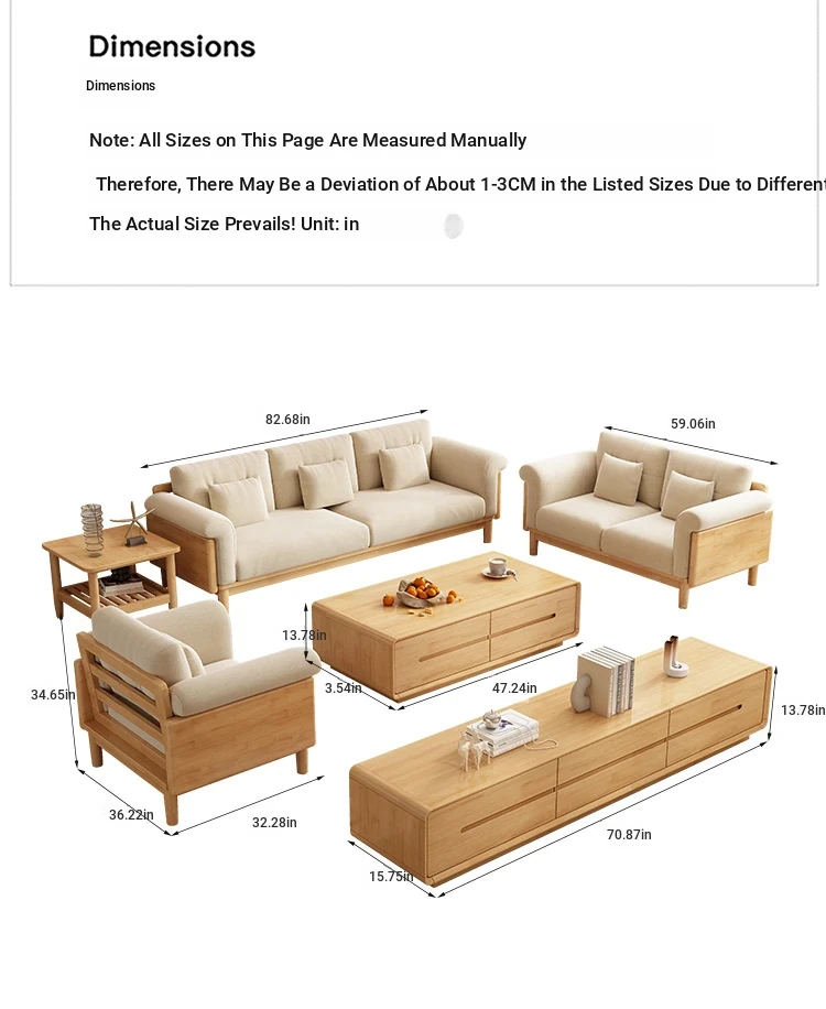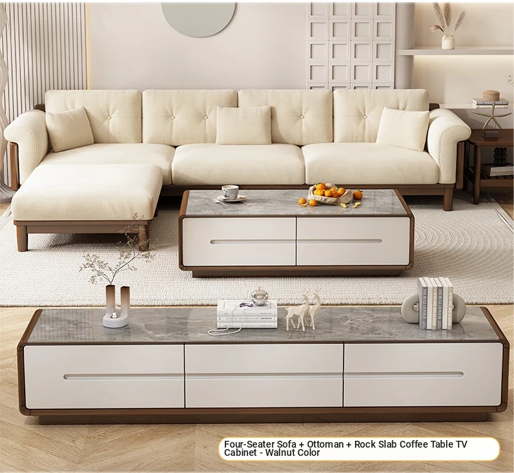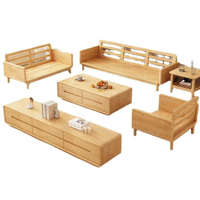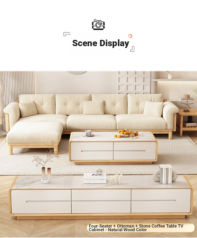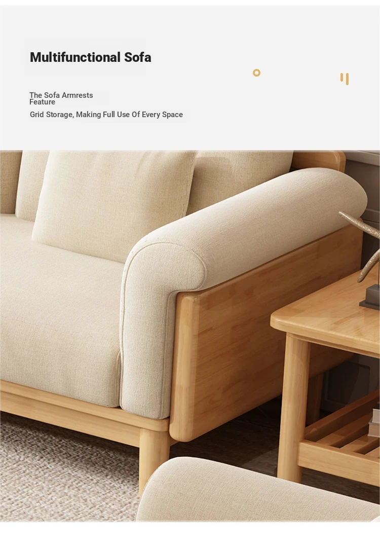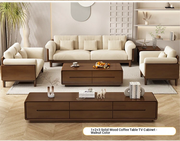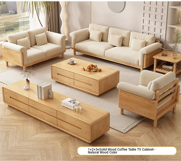 Nordic Solid Wood Sofa Set - Modern Minimalist Creamy Japanese Fabric Sofa for Small Living Rooms, Perfect Home Furniture Combination