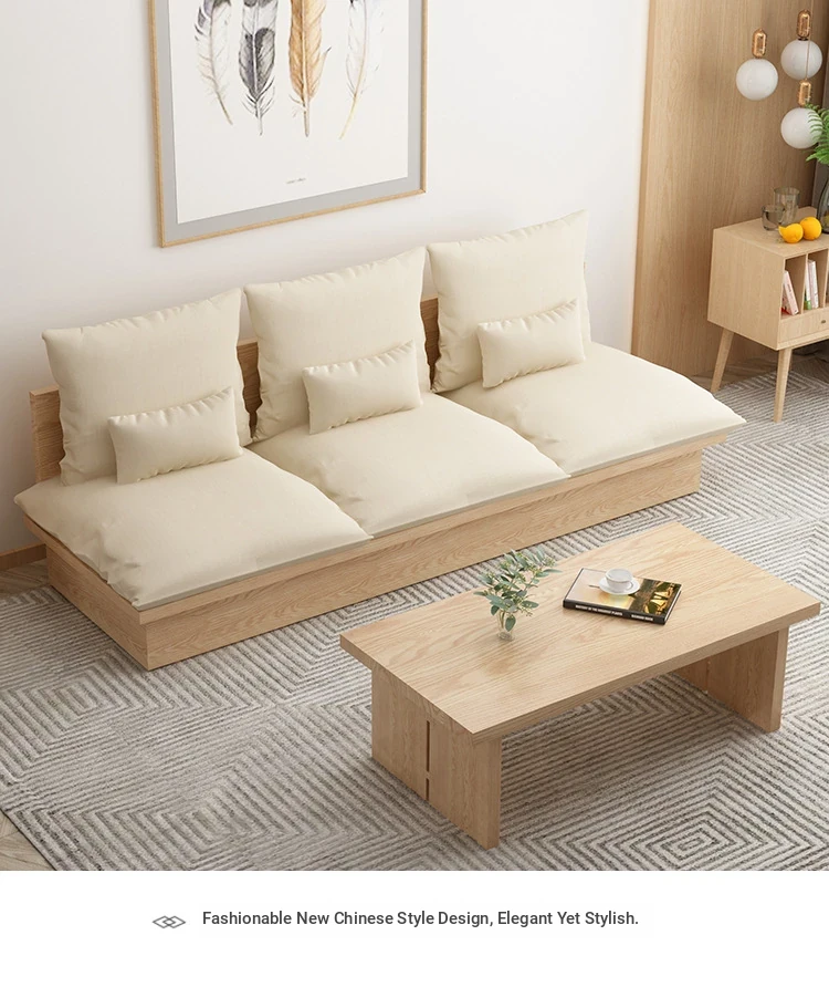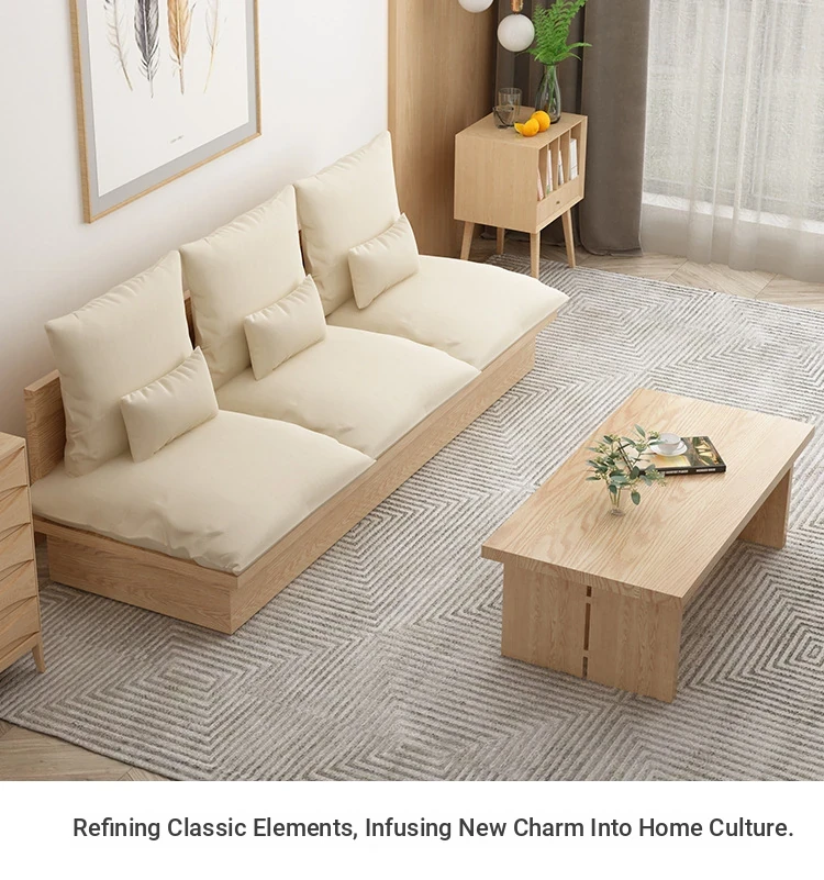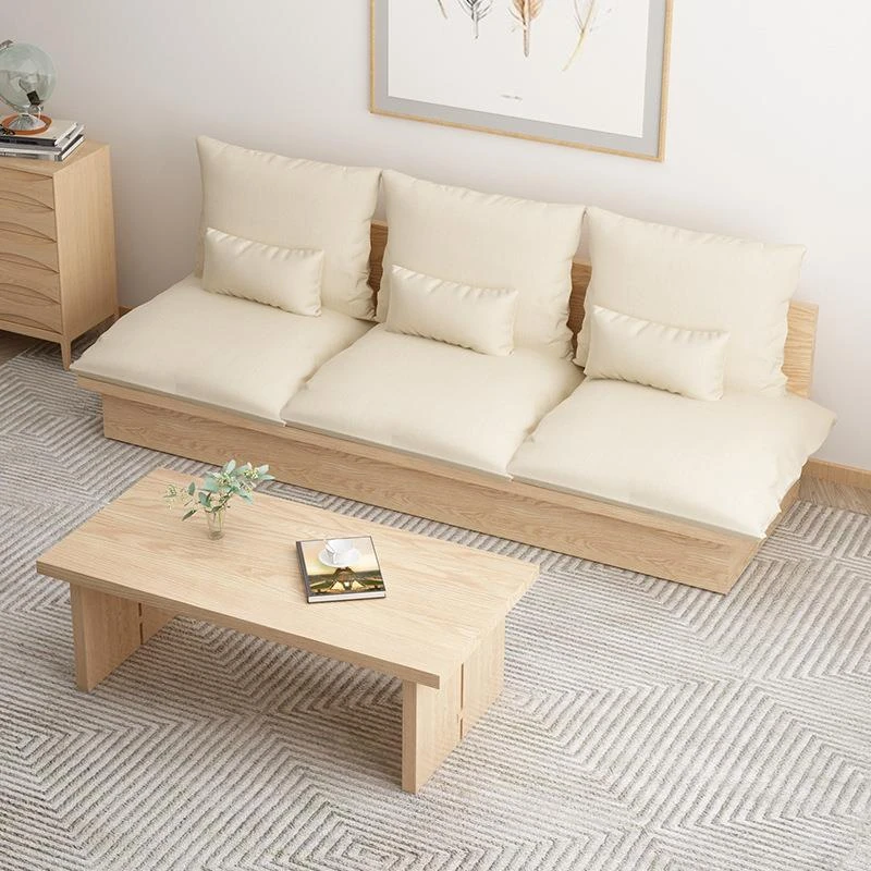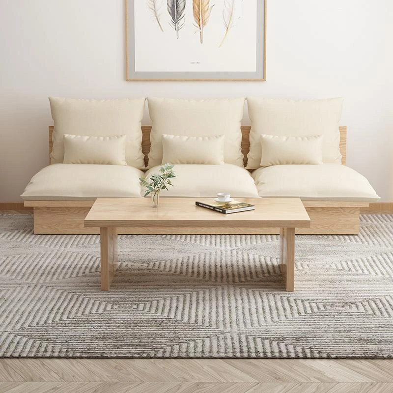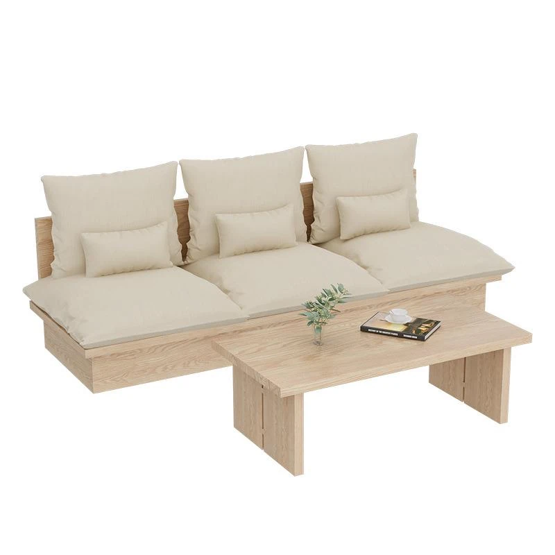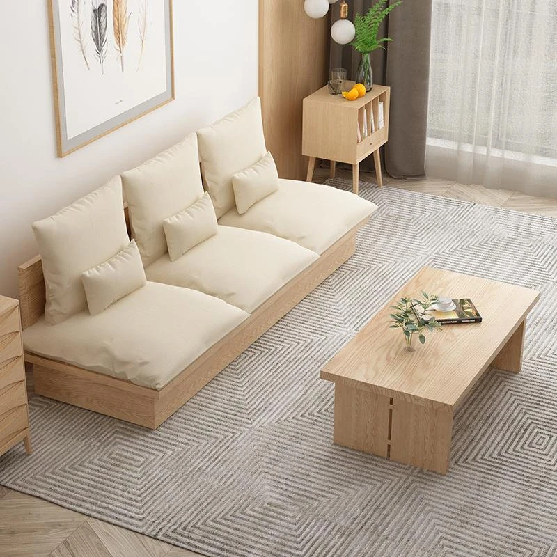 Nordic Solid Wood Sofa - Wabi-Sabi Style Living Room Fabric Sofa Set for Two & Three, Featuring Japanese Ash Wood with Coffee Table Combination