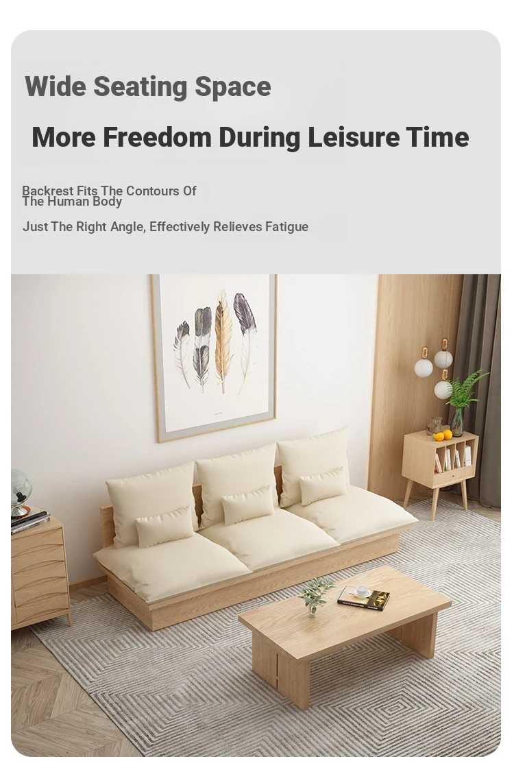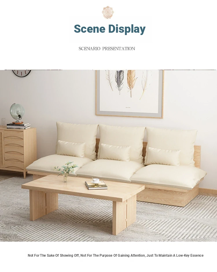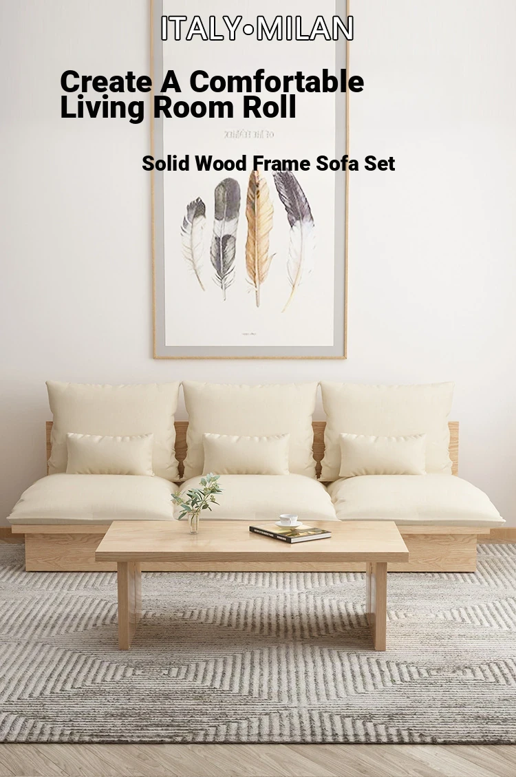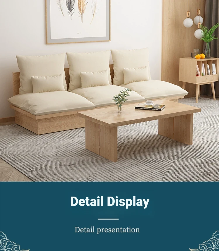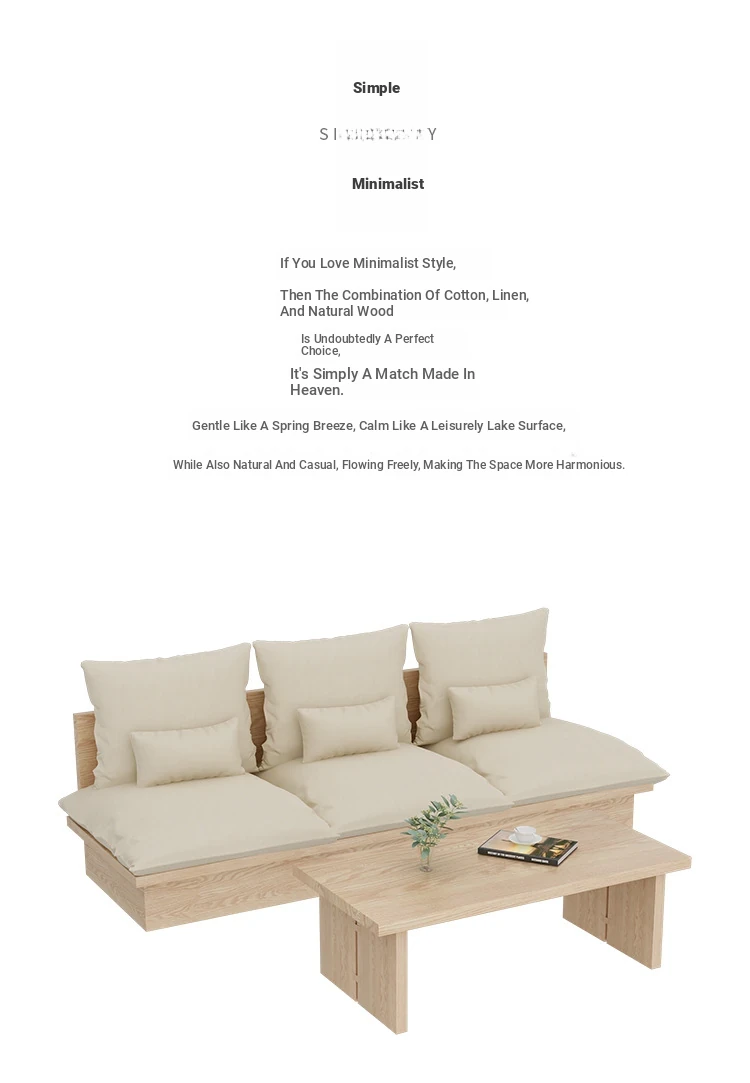 Nordic Solid Wood Sofa - Wabi-Sabi Style Living Room Fabric Sofa Set for Two & Three, Featuring Japanese Ash Wood with Coffee Table Combination