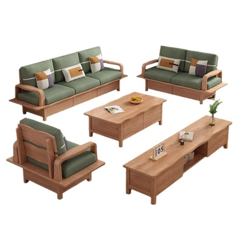 Nordic Solid Wood Sofa with Storage - White Wax Wood Corner Sofa with Drawers, Perfect for Winter and Summer Use in Large Living Rooms, Featuring a Stunning Natural Wood Finish