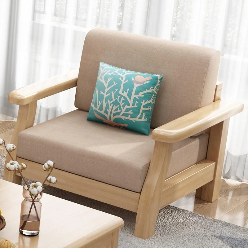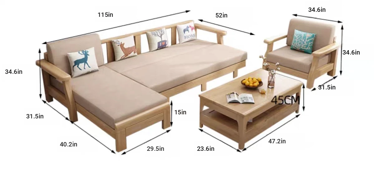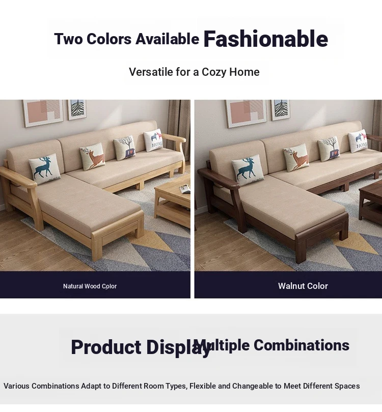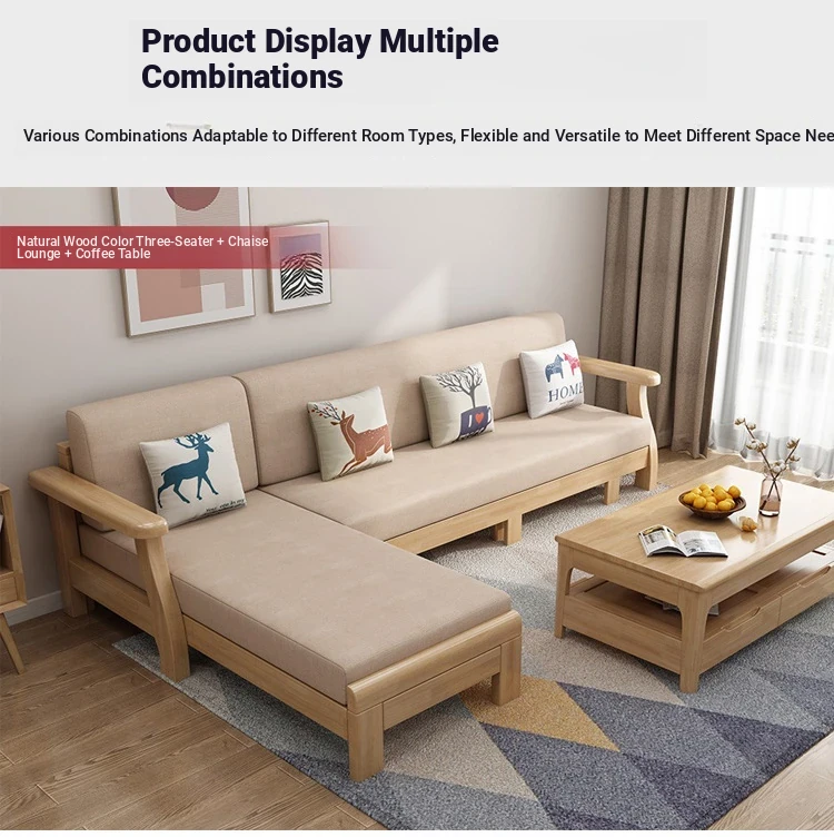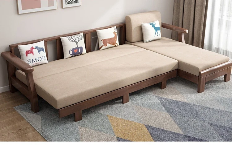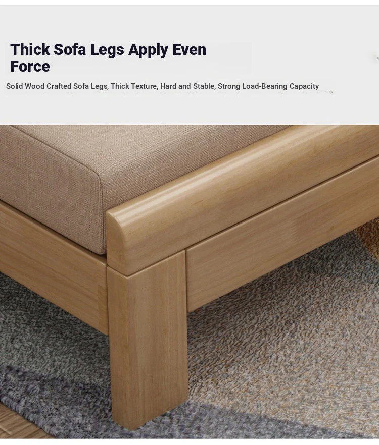 Nordic Style Living Room Sofa - Wooden and Fabric Fusion Japanese Double Chaise Lounge Set for Small Spaces - Solid Wood Pull-Out Bed Furniture