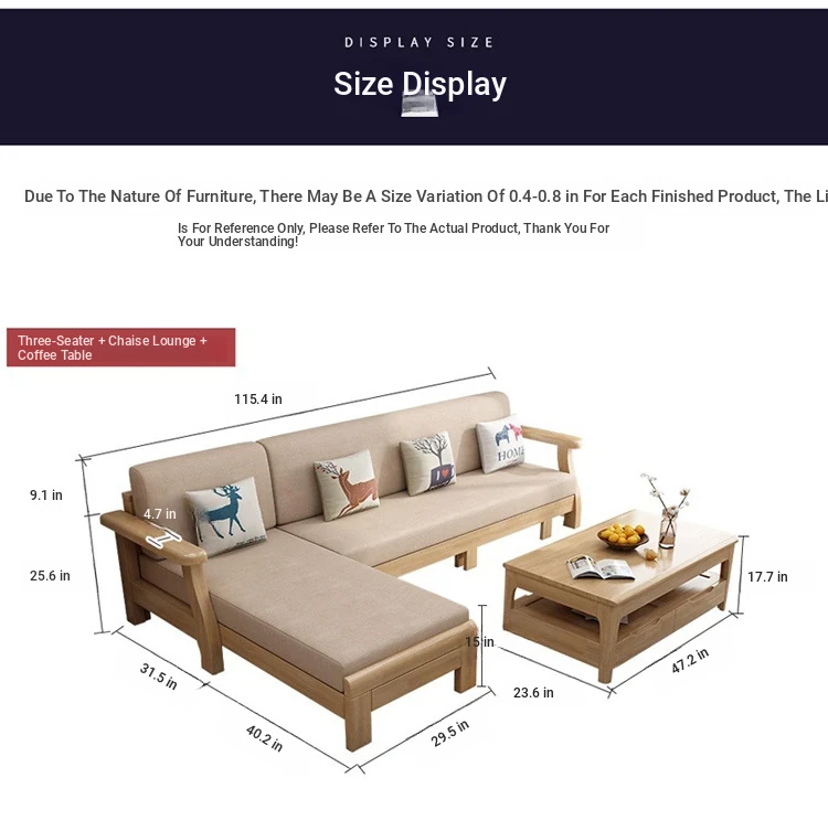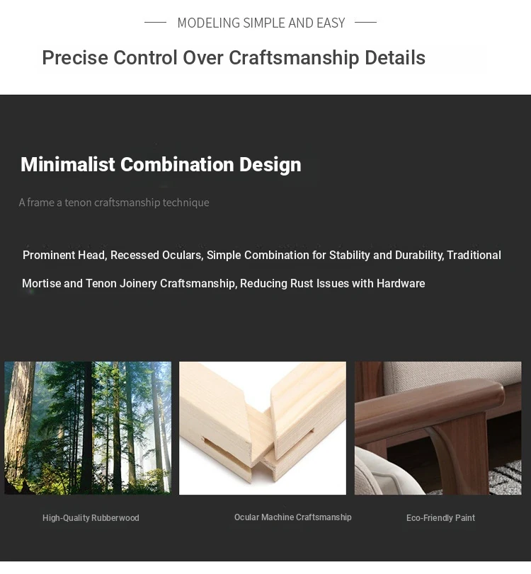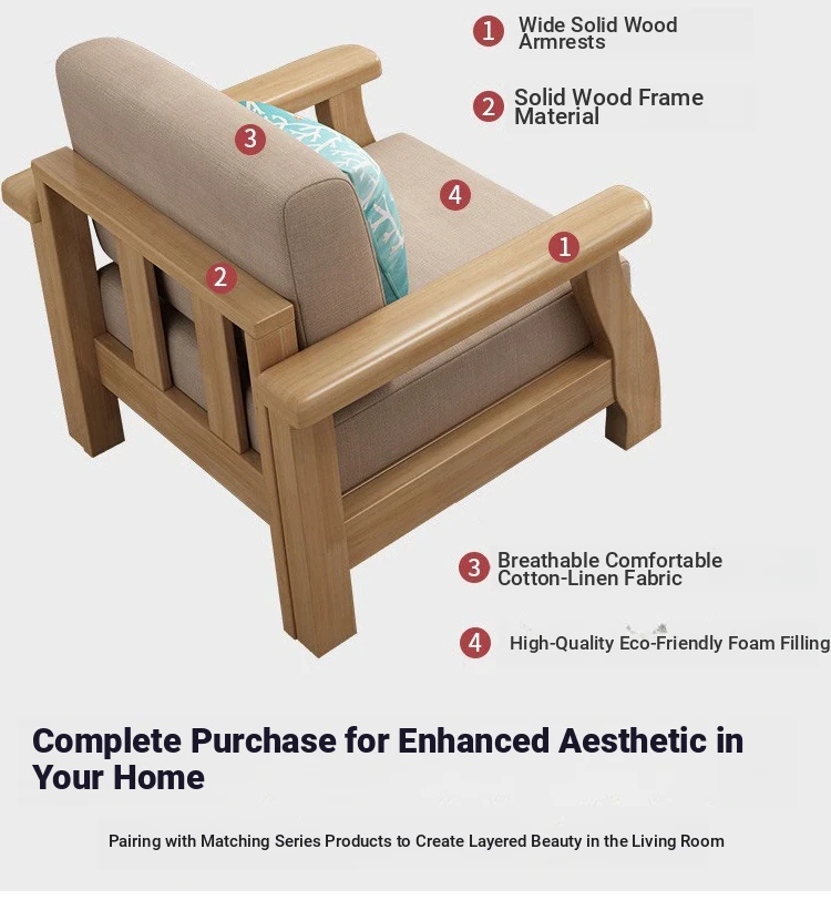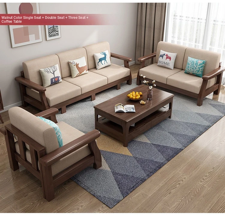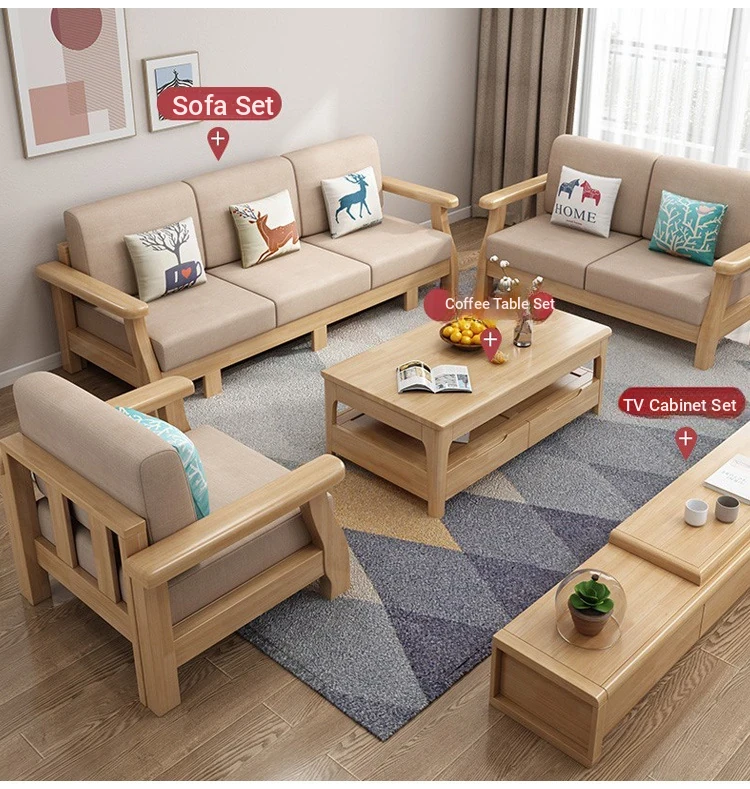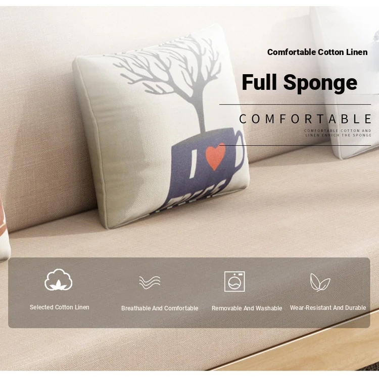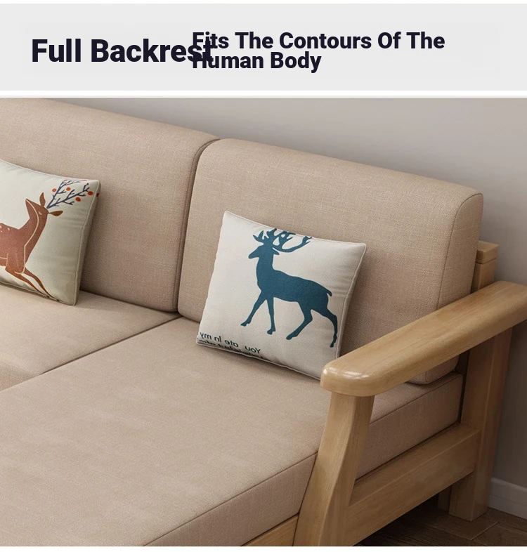 Nordic Style Living Room Sofa - Wooden and Fabric Fusion Japanese Double Chaise Lounge Set for Small Spaces - Solid Wood Pull-Out Bed Furniture