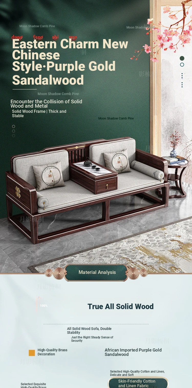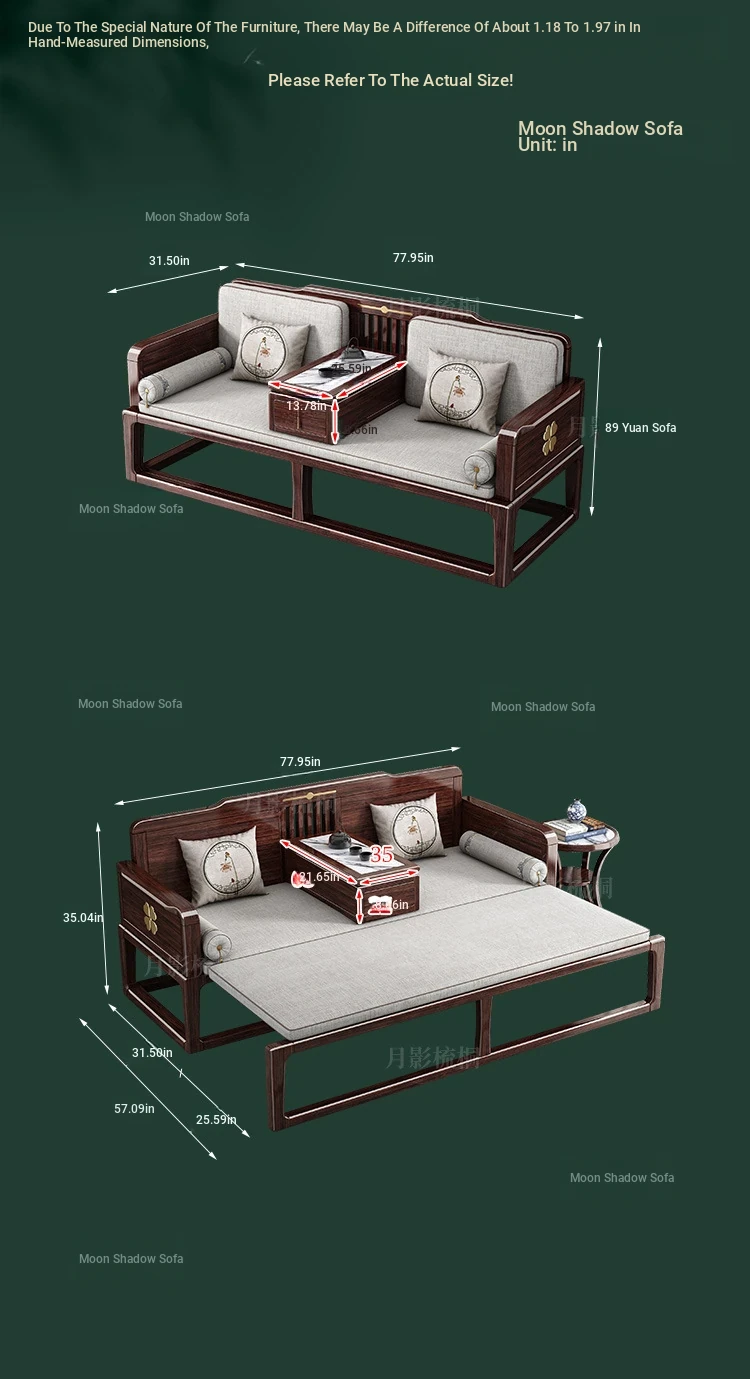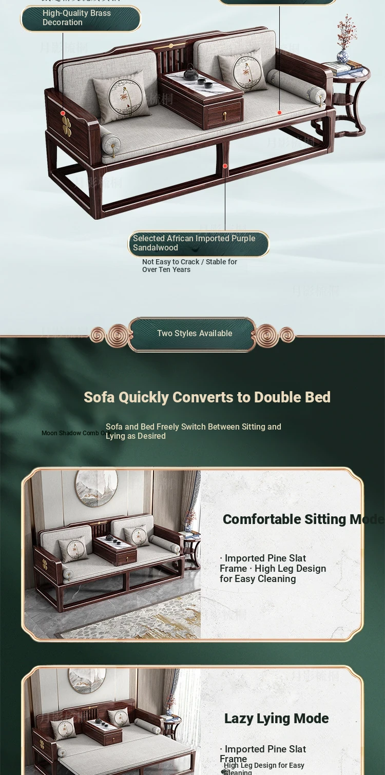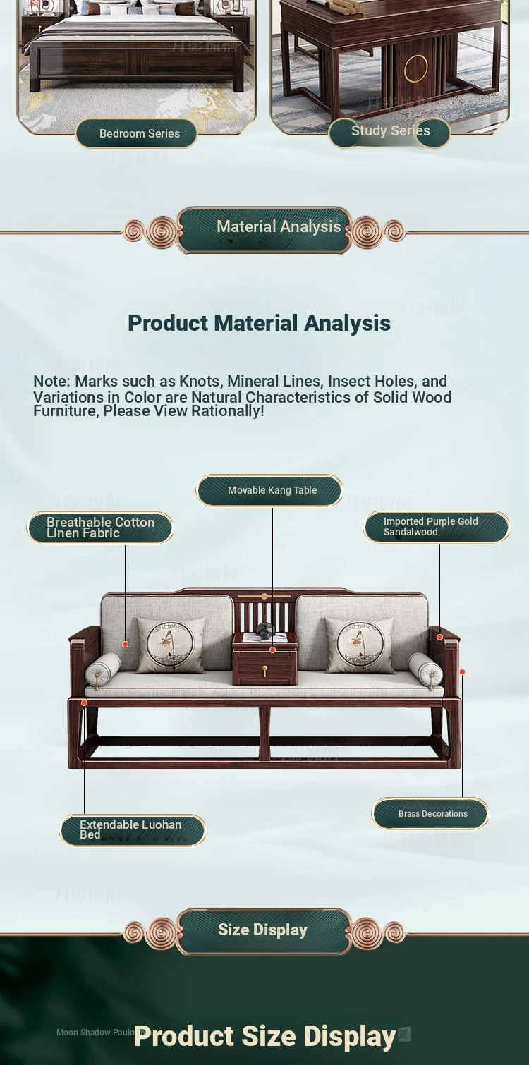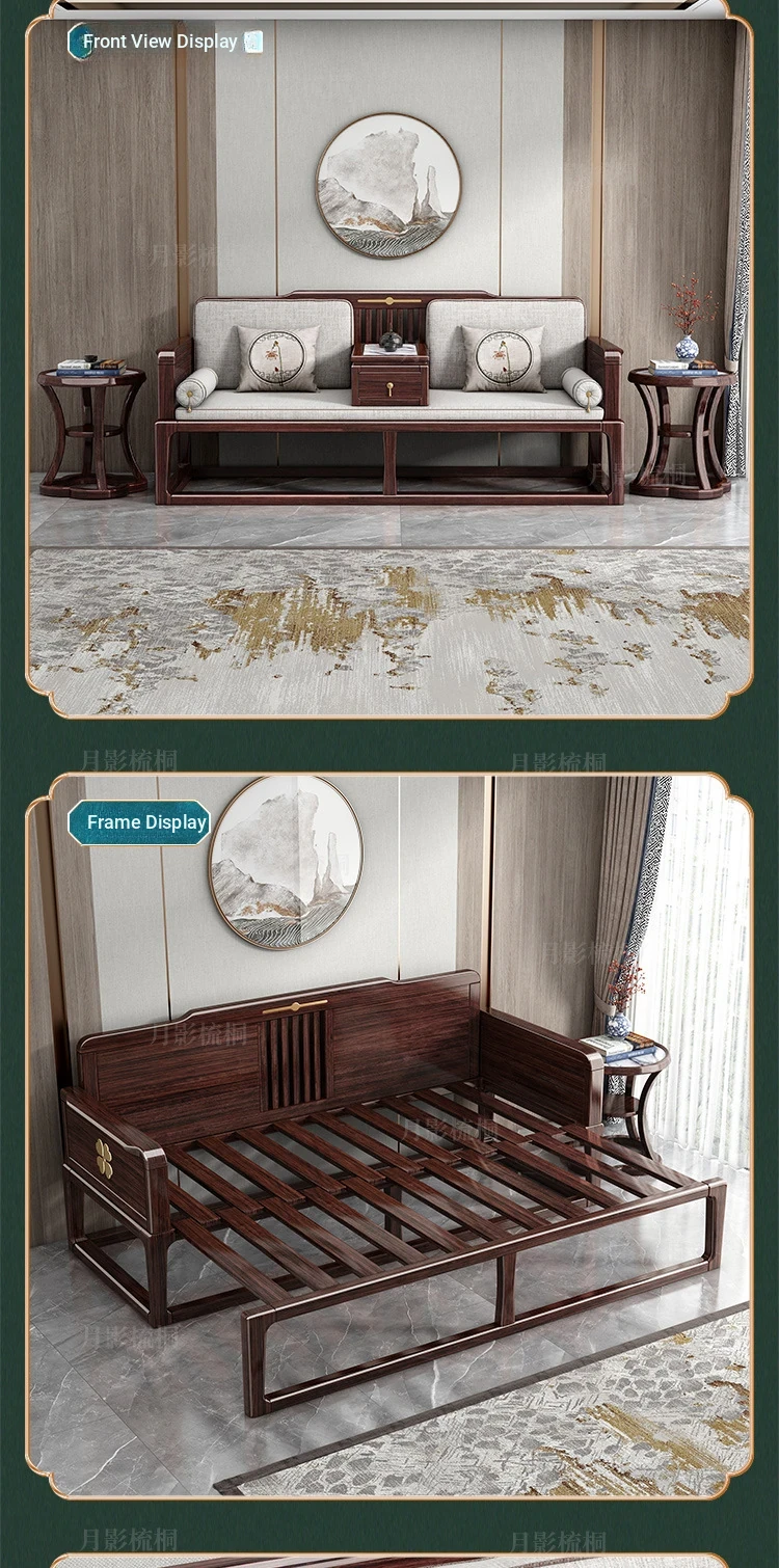 Premium Asian-Style Solid Wood Luohan Bed in Purple Gold Sandalwood – Space-Saving, Multi-Functional Sofa Bed for Small Homes with Zen Aesthetic, Expandable and Easily Adjustable