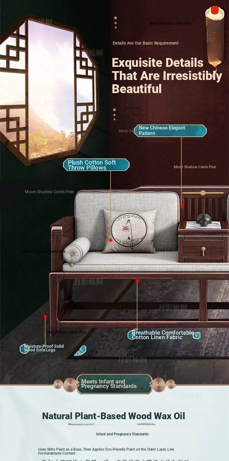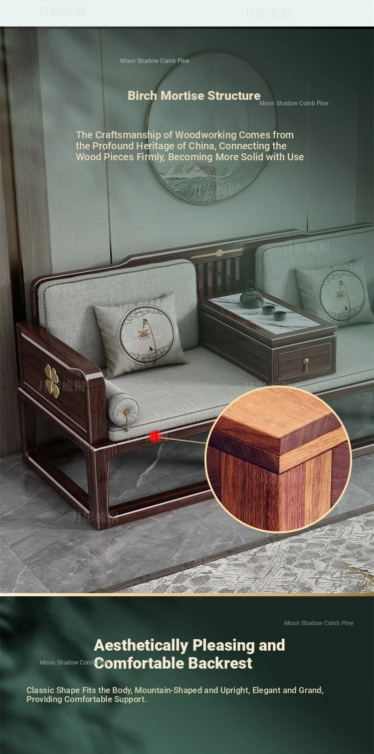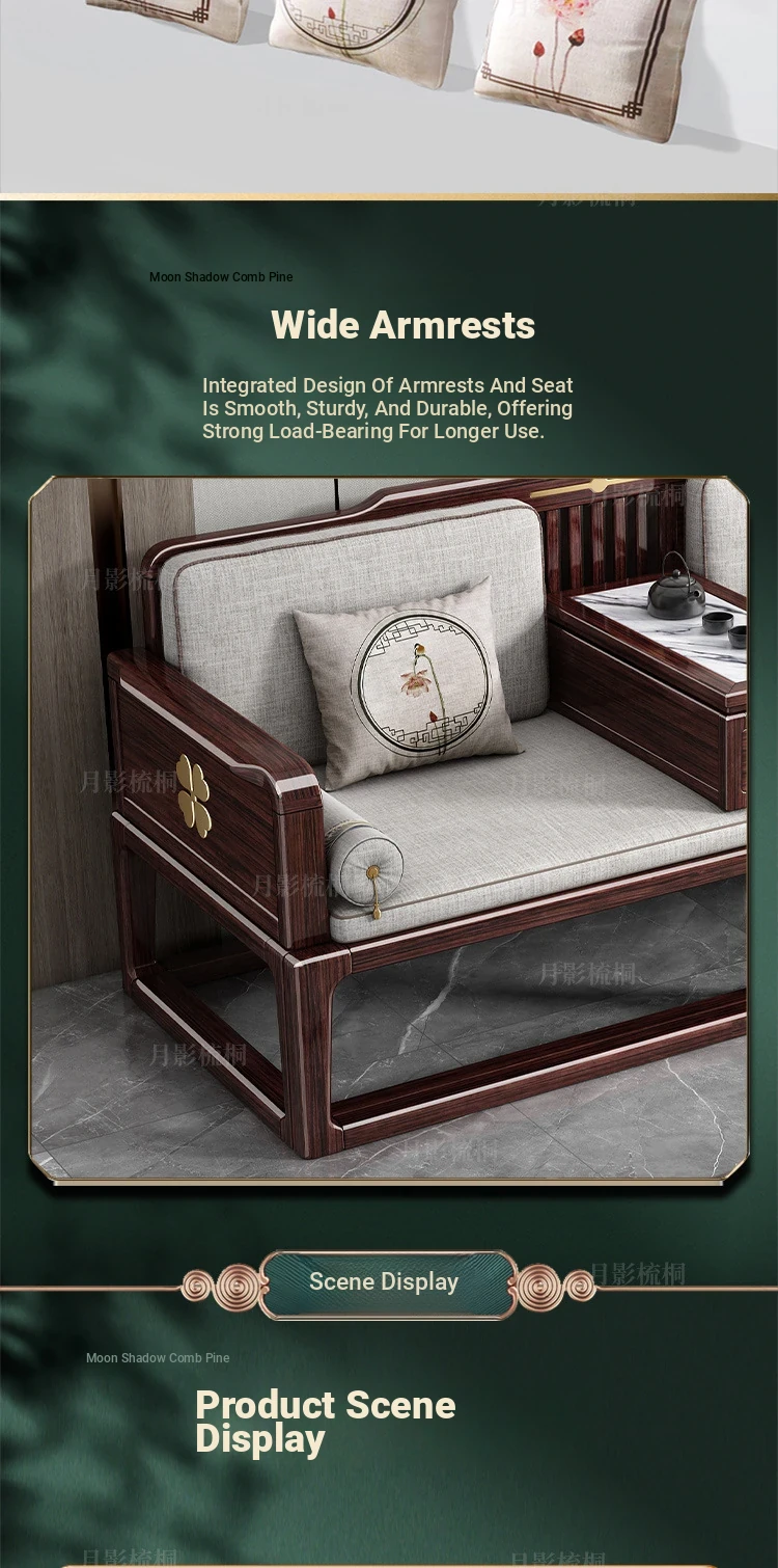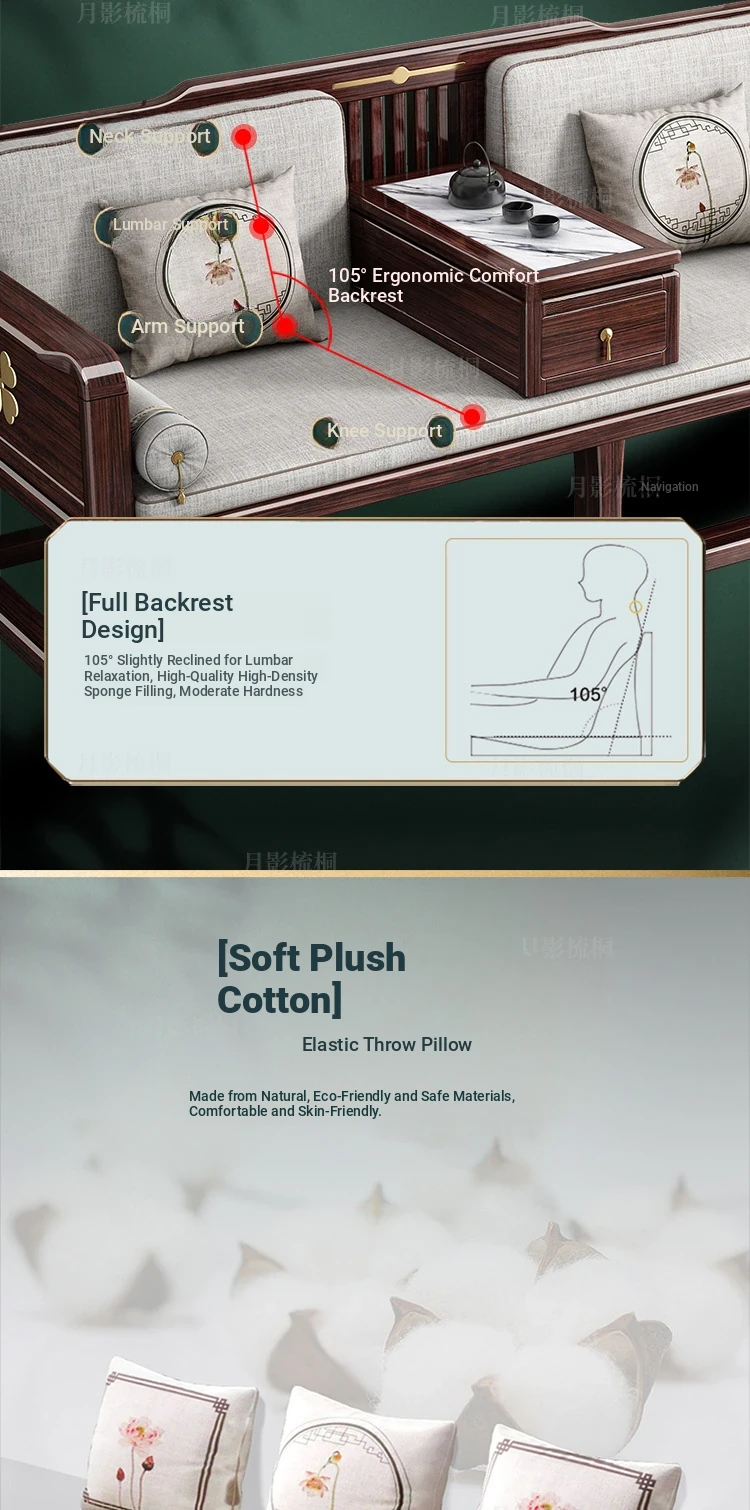 Premium Asian-Style Solid Wood Luohan Bed in Purple Gold Sandalwood – Space-Saving, Multi-Functional Sofa Bed for Small Homes with Zen Aesthetic, Expandable and Easily Adjustable