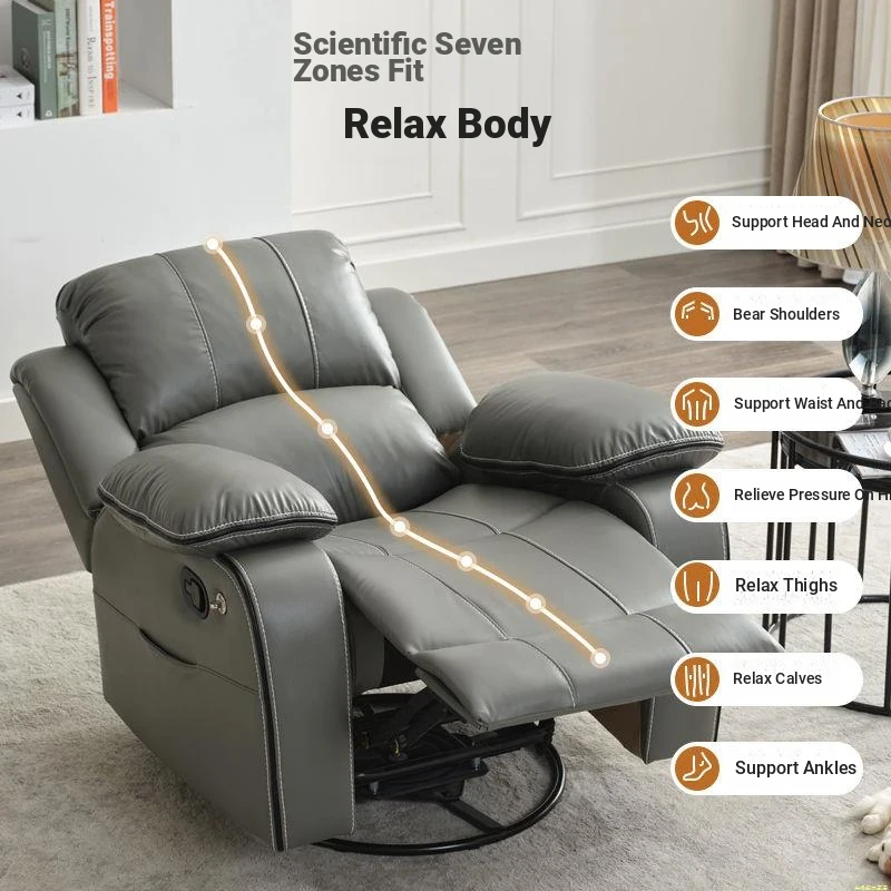 Premium Eco-Friendly Genuine Leather Reclining Sofa - Multi-Functional Electric Lounge Chair for Office and Home, Perfect for Napping or Relaxing in Living Room or Bedroom, Single Seat Design