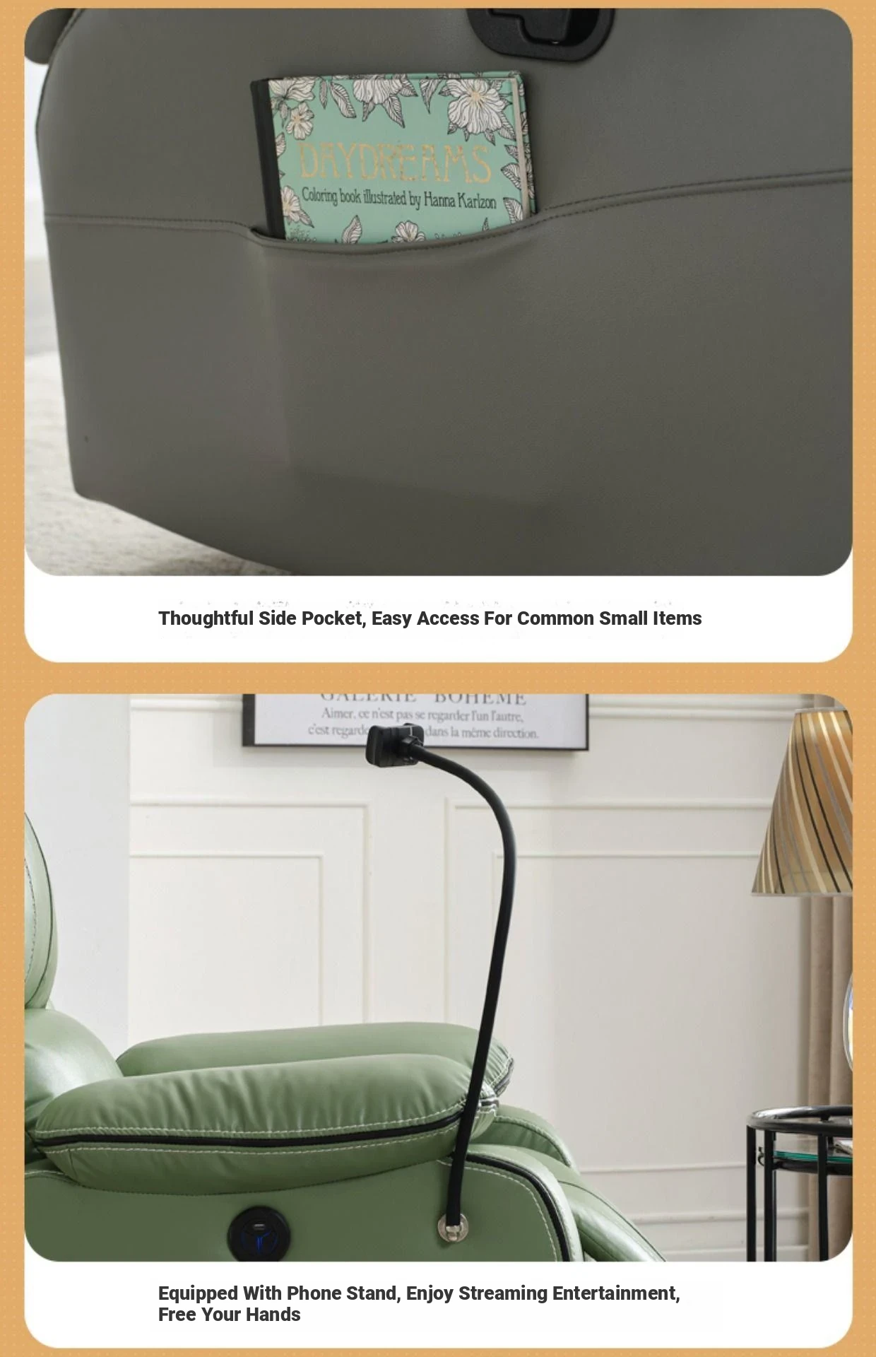 Orange Eco Leather Black Edge Double Side Bag Bracket