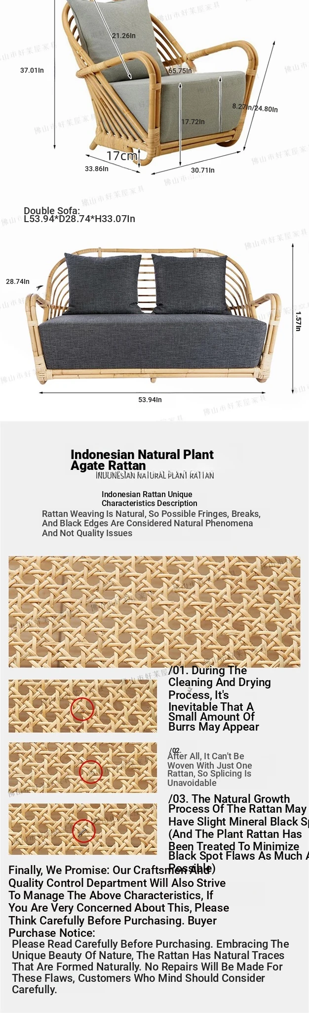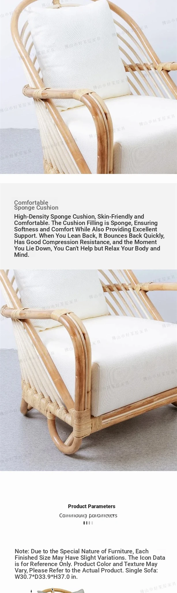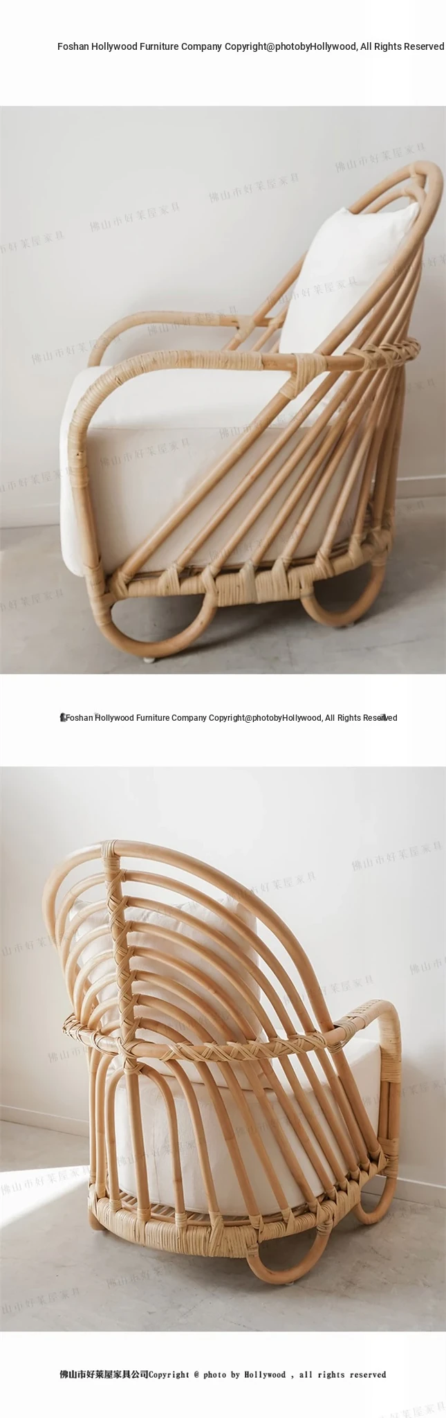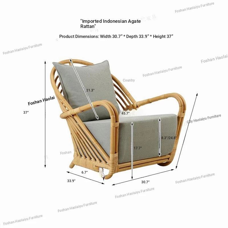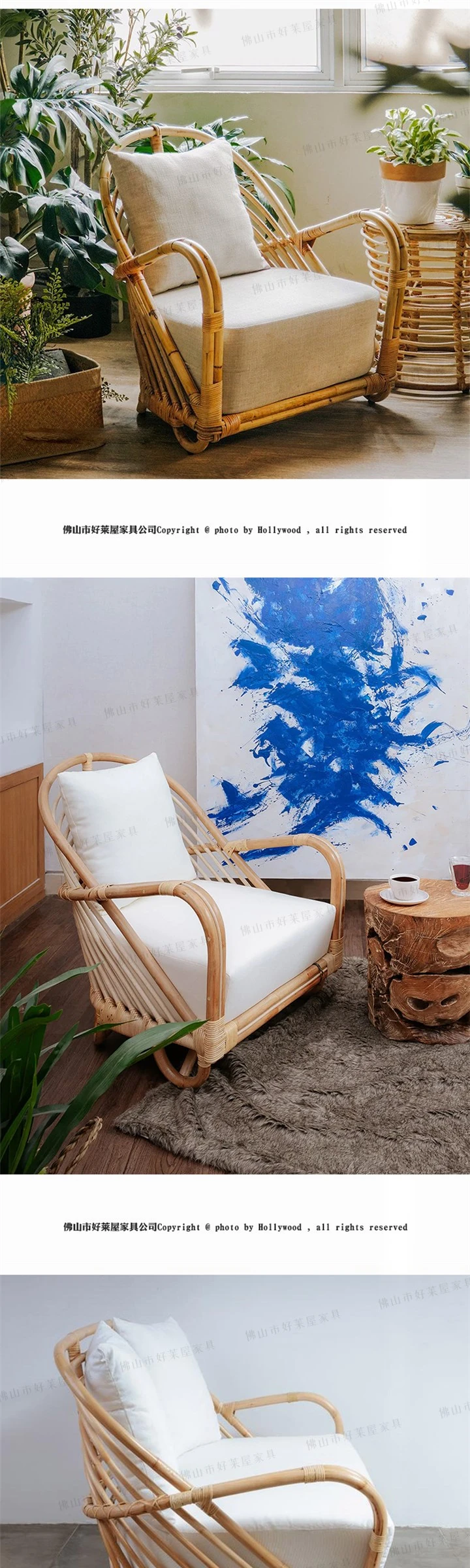 Rattan Armchair - Cozy Single Sofa for Home, Perfect for Balconies and Tea Rooms, Featuring Natural Woven Design, Ideal for Relaxation in Guesthouses and Lounges
