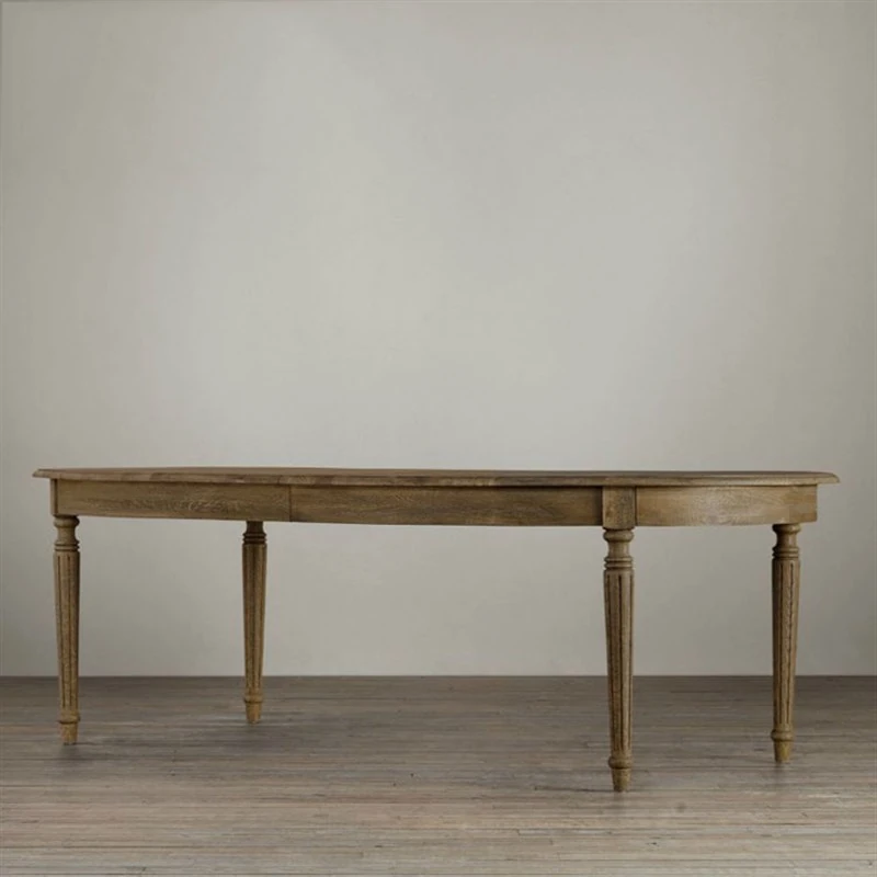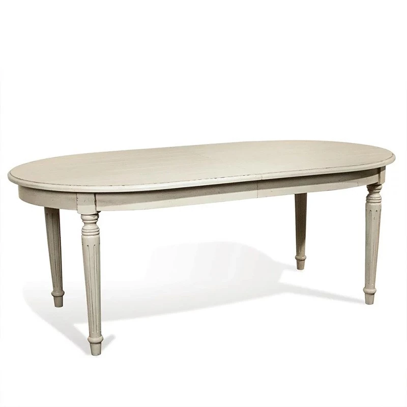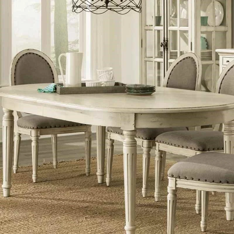 Rustic American Solid Wood Oval Dining Table Set - Vintage French Style White Antique Dining Room Set for Small Spaces, Includes One Table and Six Chairs