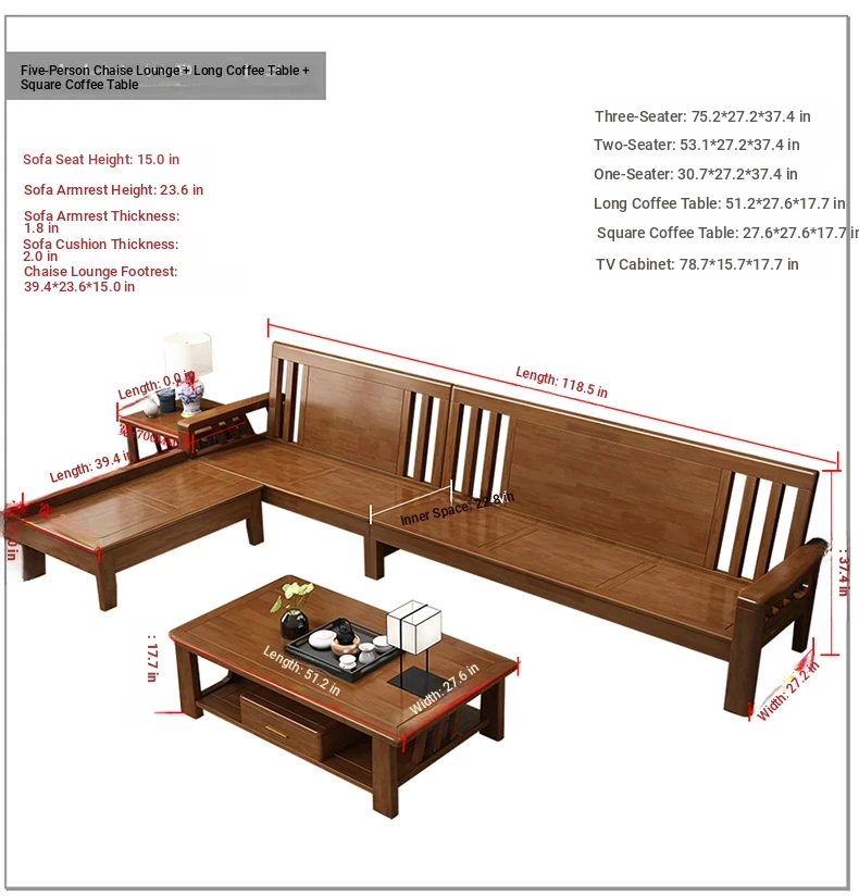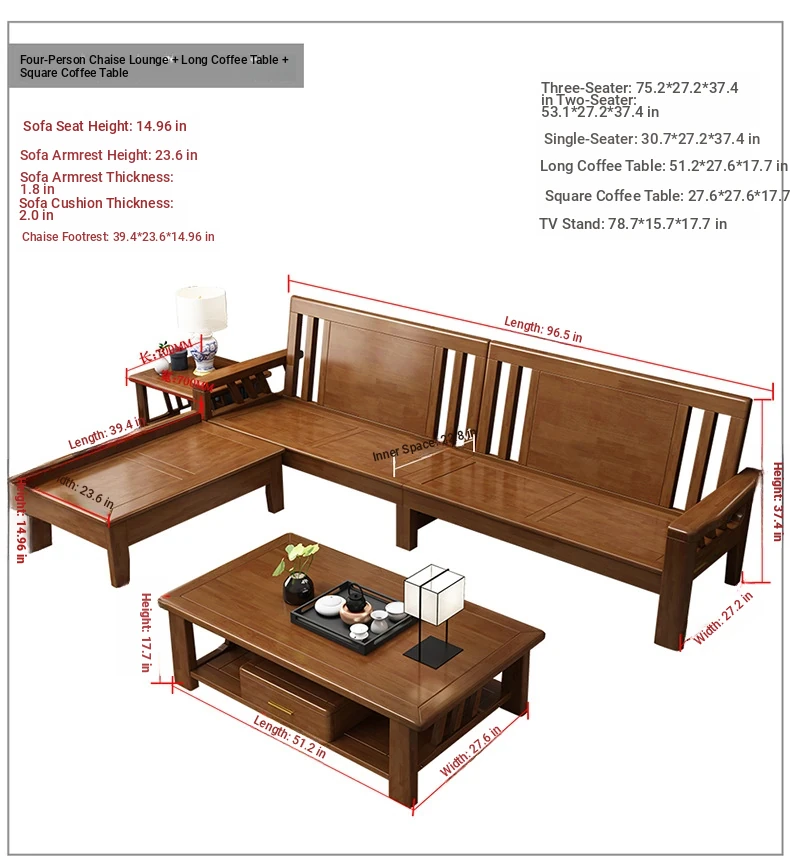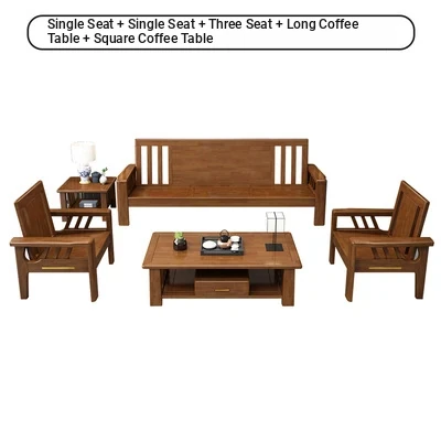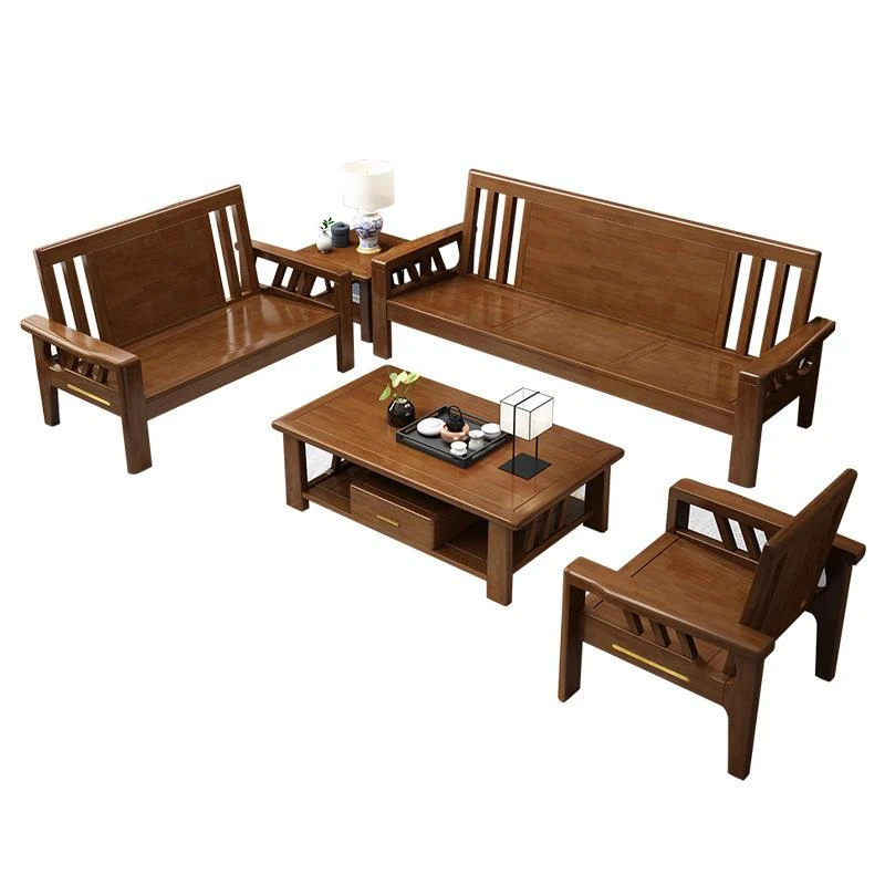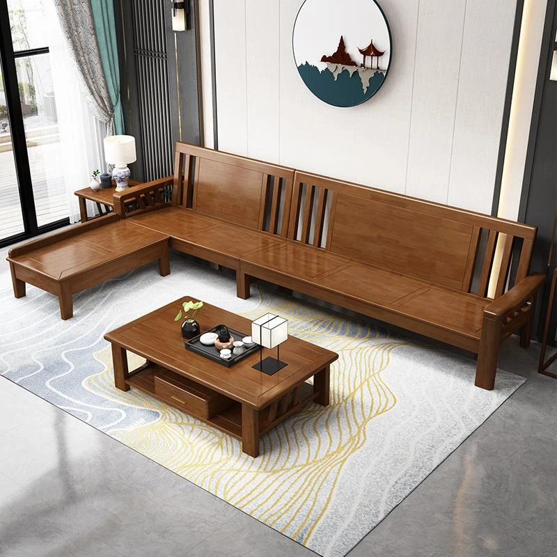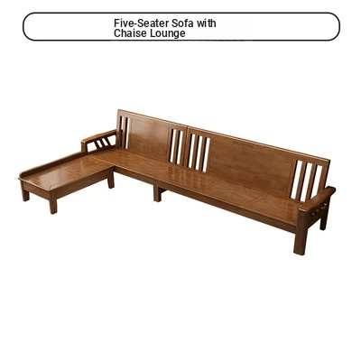 Solid Wood Sofa - Modern Chinese Style L-Shaped Chaise Lounge for Small Living Rooms, Economical Furniture Set, Perfect for Cozy Spaces