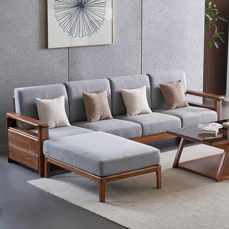 Solid Wood Walnut Sofa Set - Versatile Chinese Style Living Room Furniture for Small to Medium Spaces, Winter & Summer Use, Includes Storage Coffee Table for Home Living Room