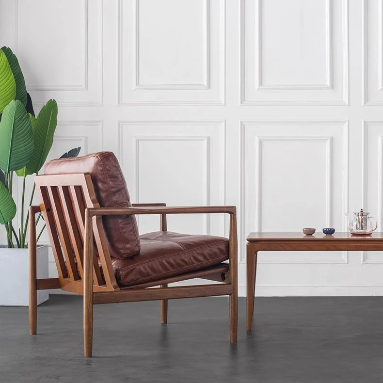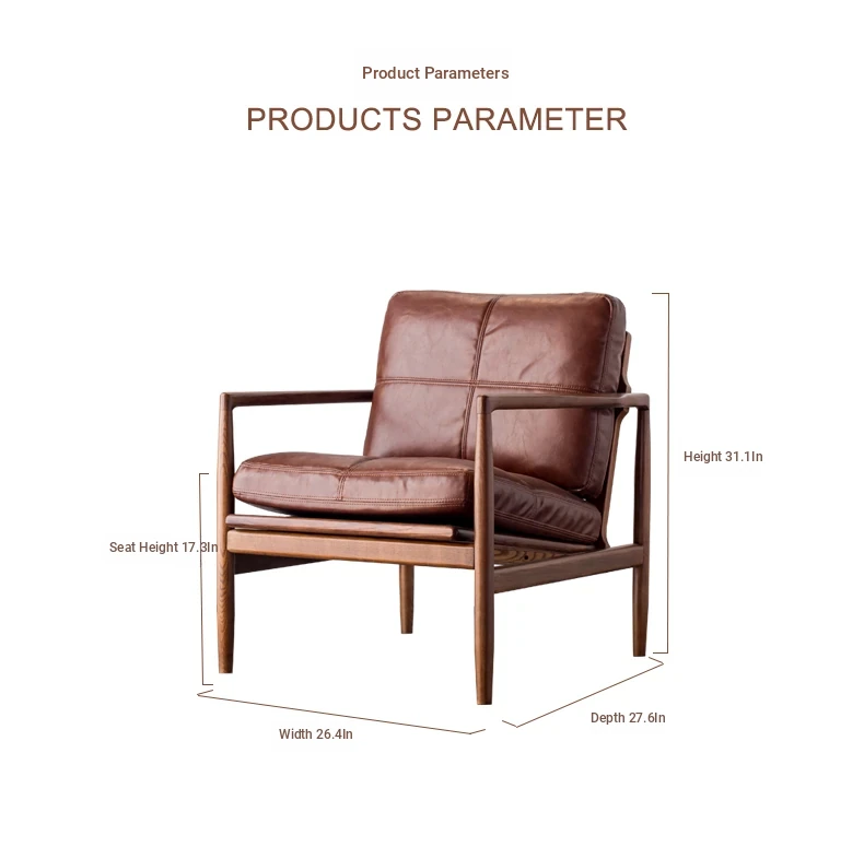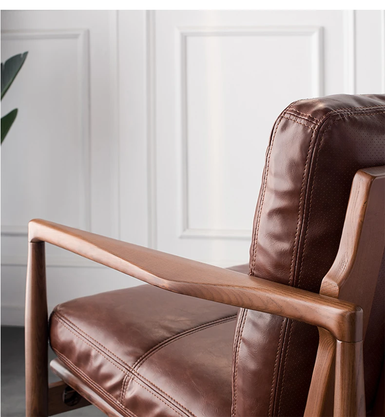 "Syncer Hank White Wax Wood Single Sofa - Nordic Top Grain Oil Wax Genuine Leather Down Sofa Chair with Full Polishing"