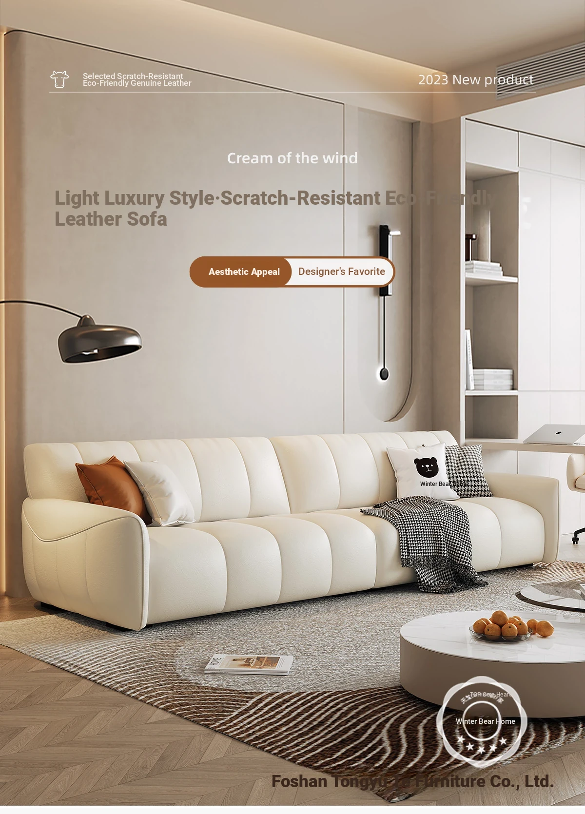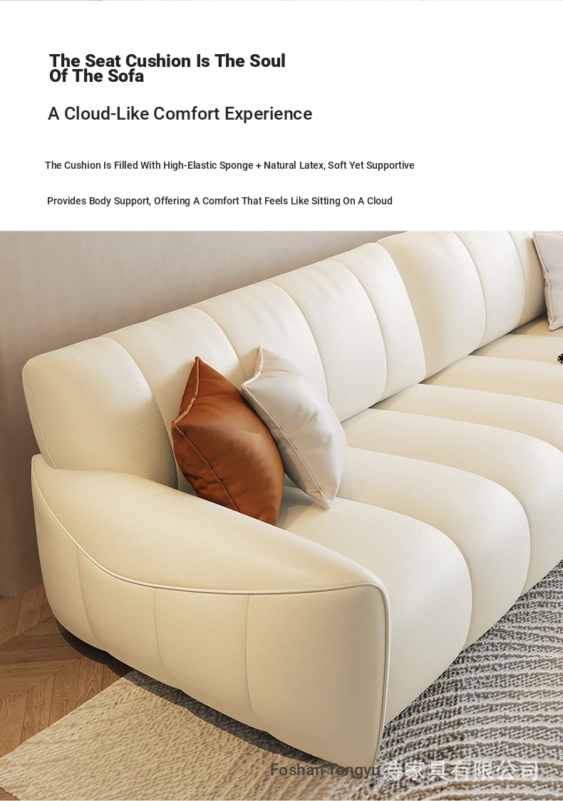 Tongyu Luxury Modern Piano Key Sofa - Minimalist Cream-Style Leather Couch for Small Living Rooms, Perfect for Chic Interiors.
