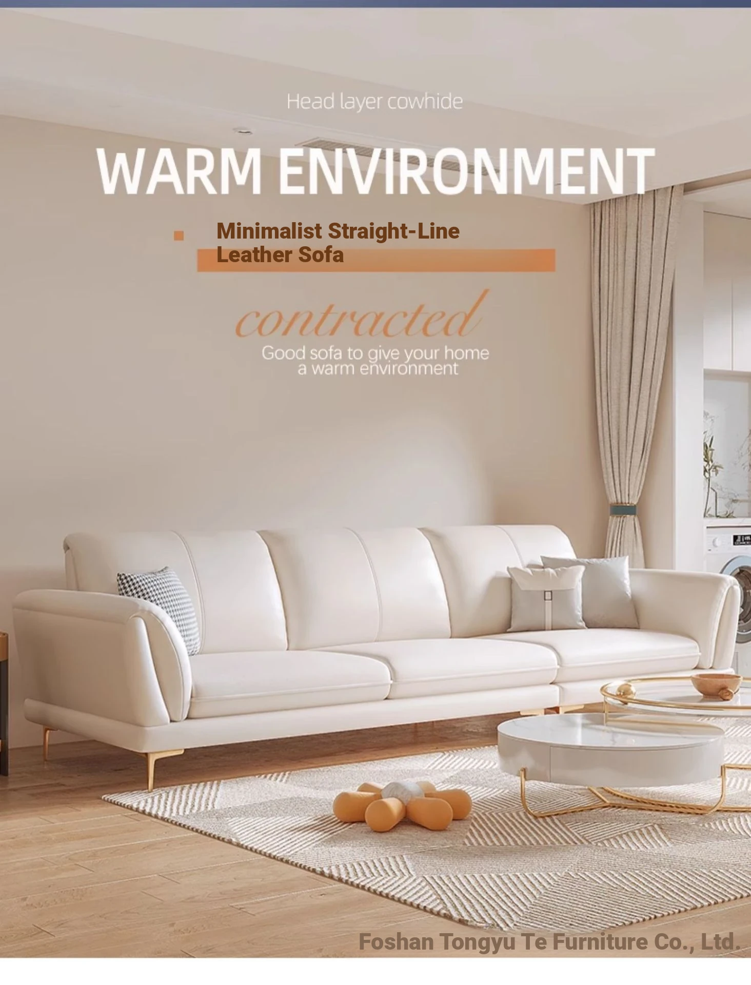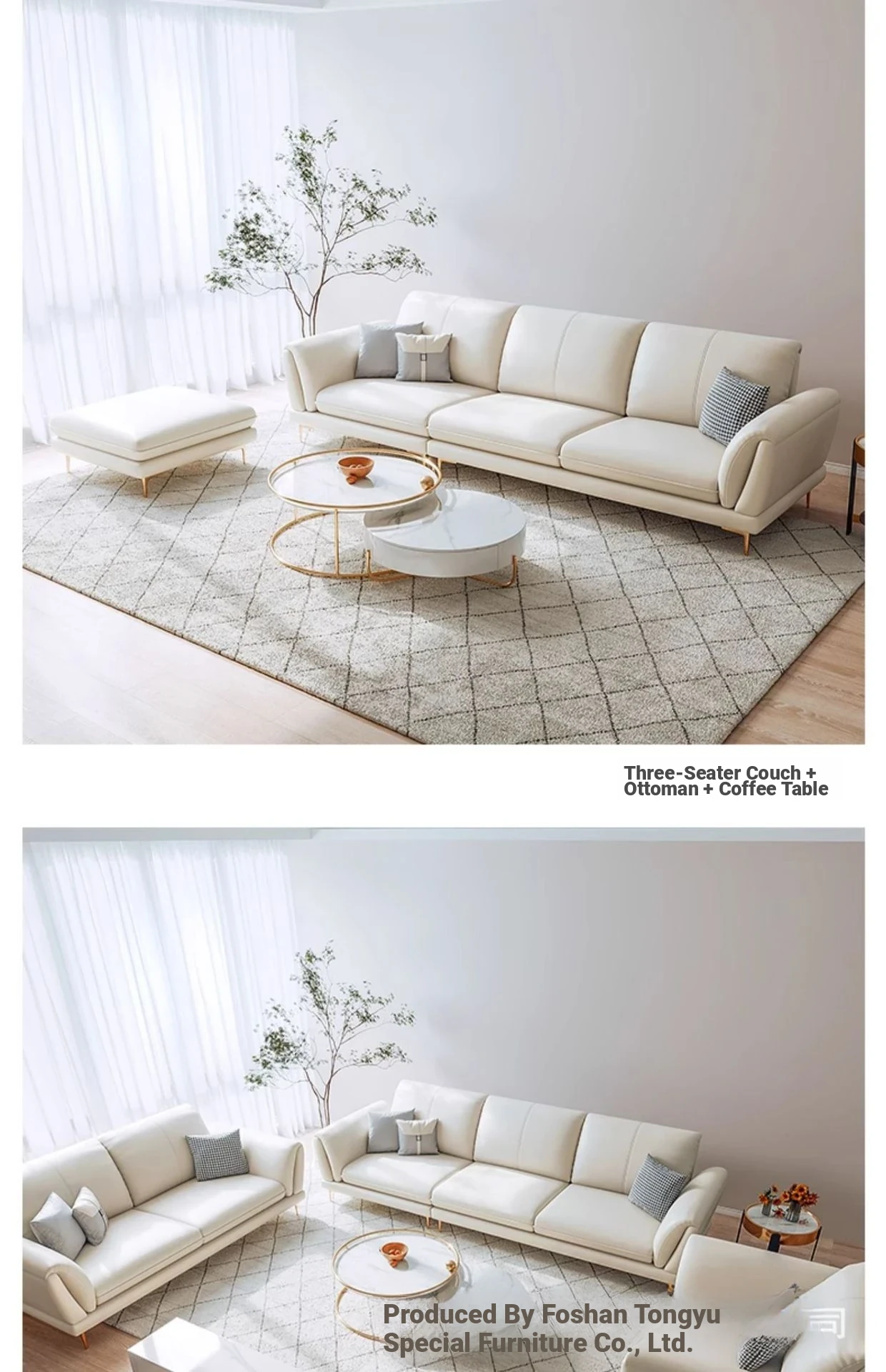 Tongyu Special - Nordic Minimalist Modern Light Luxury Cream-Style White Genuine Leather Sofa for Small Living Rooms - Perfect for Trendy Spaces, Comfort & Style Combined!