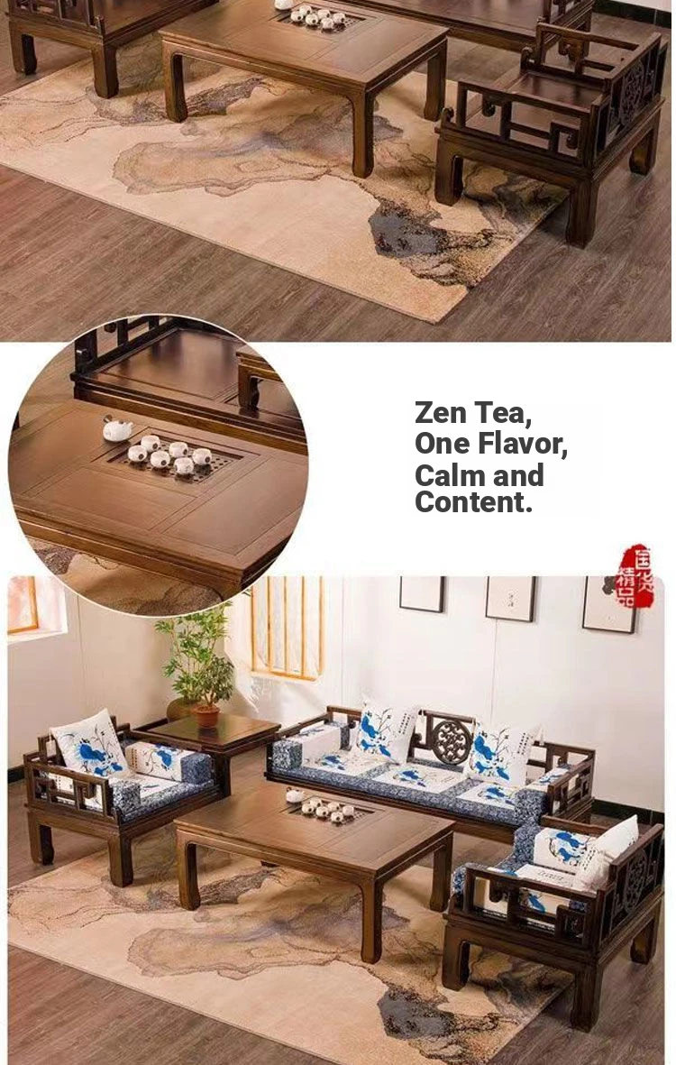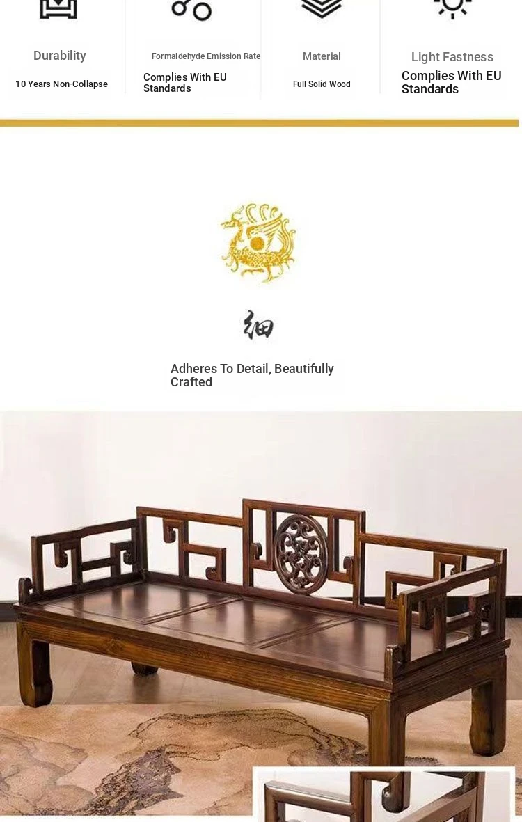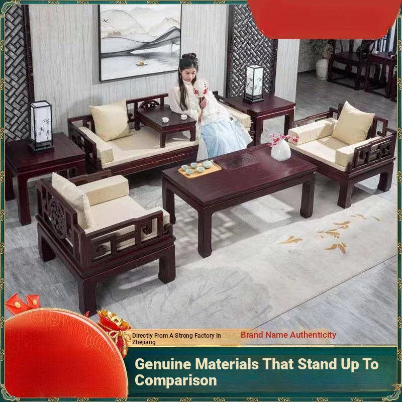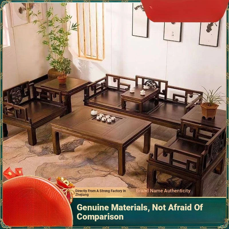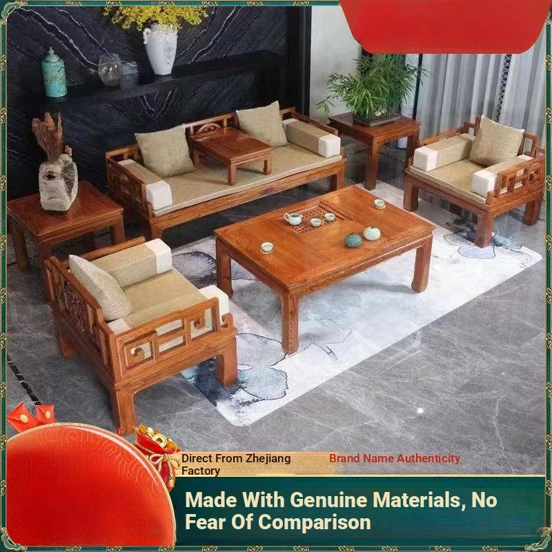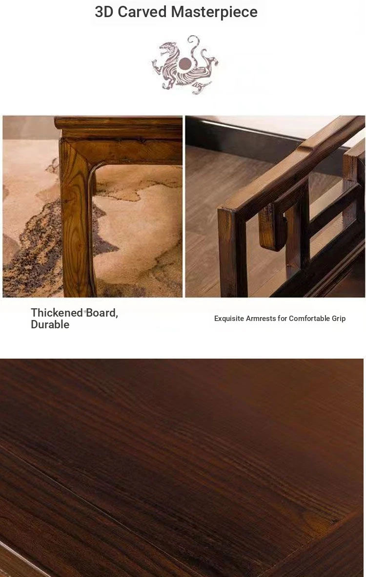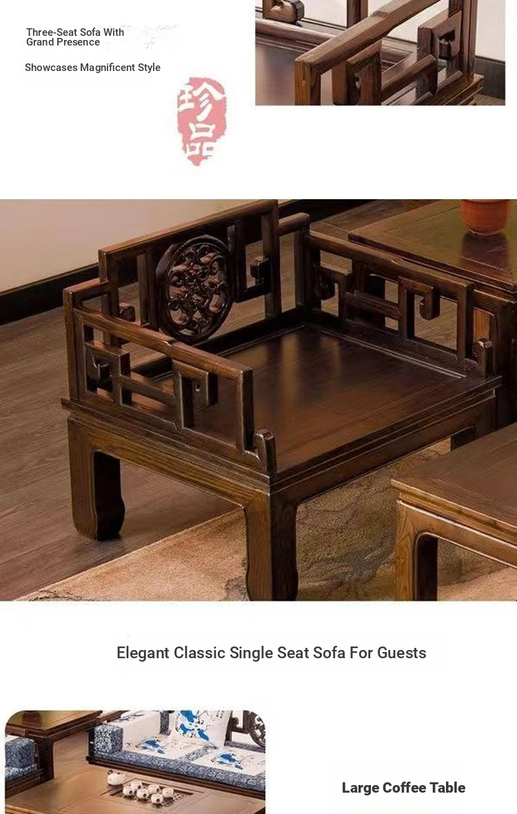Traditional Solid Wood Sofa Set for Living Room - Full Solid Elm Wood, Classic Chinese Style, Elegant and Durable, Perfect for Your Home Décor.