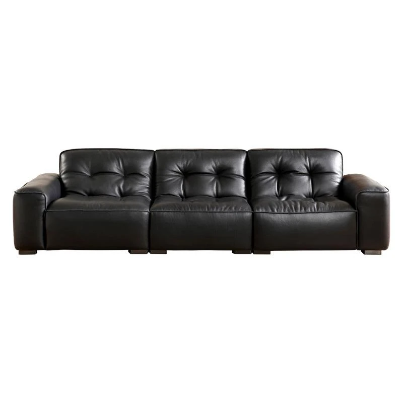 Vintage Black Gold Full Leather Sofa - Designer Retro Genuine Top Grain Leather Black Light Luxury Living Room Couch
